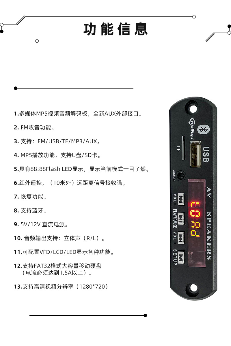 1080p HD MP4 비디오 mp5 디코더 보드 AV 인터페이스 RMVB/APE 디코더 SD/HD 비디오 재생