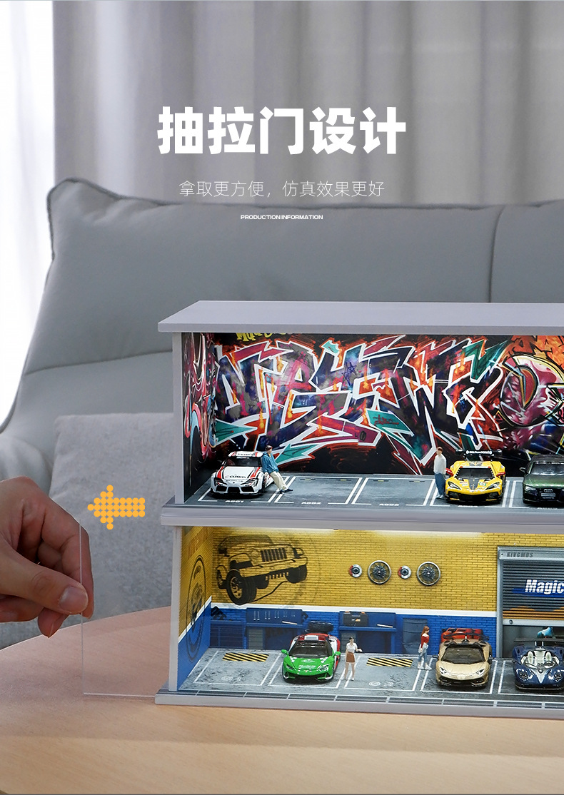 1:64 시뮬레이션 주차장 모델 미니어처 장면 주차 차고 PVC 조립 자동차 모델 전시 랙 가벼운 주차 공간스토어 가기