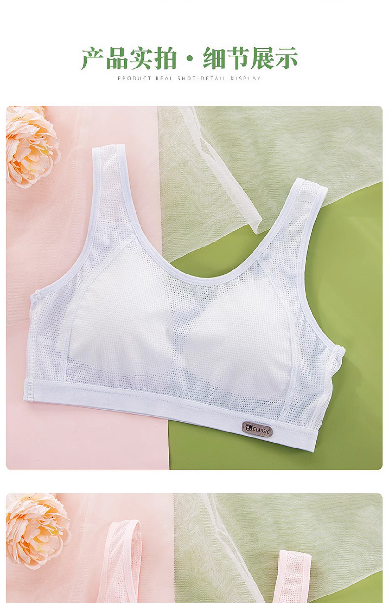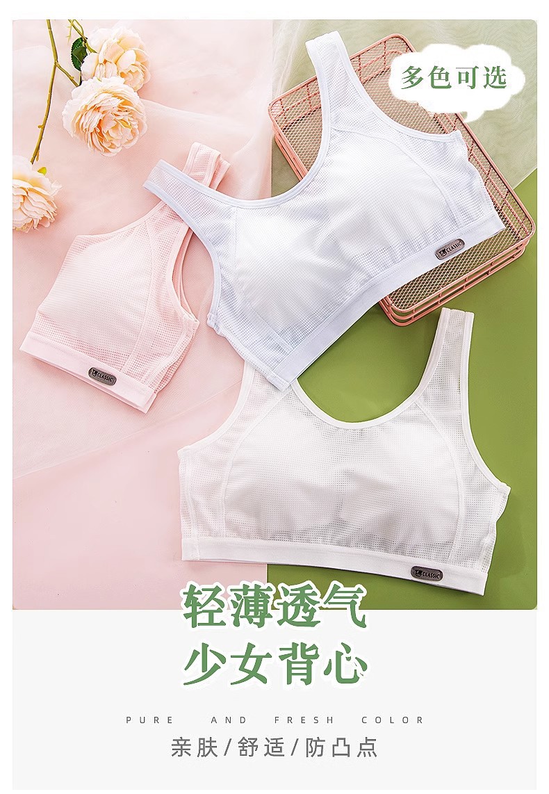 메쉬 통기성 여아 속옷 사춘기 여름 얇은 충격 방지 조끼 중학생 큰 어린이 브래지어