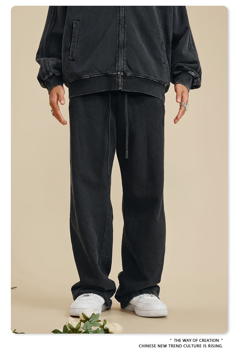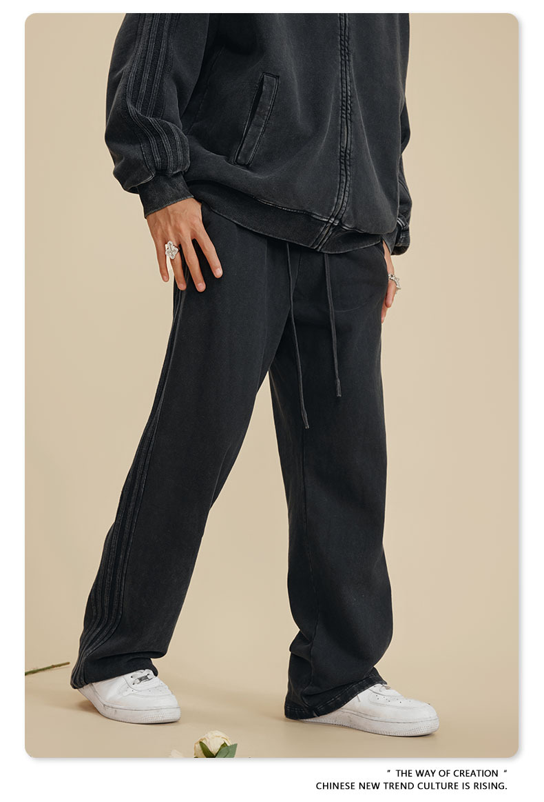 BE 남성복 2025 봄, 가을 헤비급 450G 워싱 청소년 바지 미국 트렌디 브랜드 루즈 스트레이트 스포츠 바지