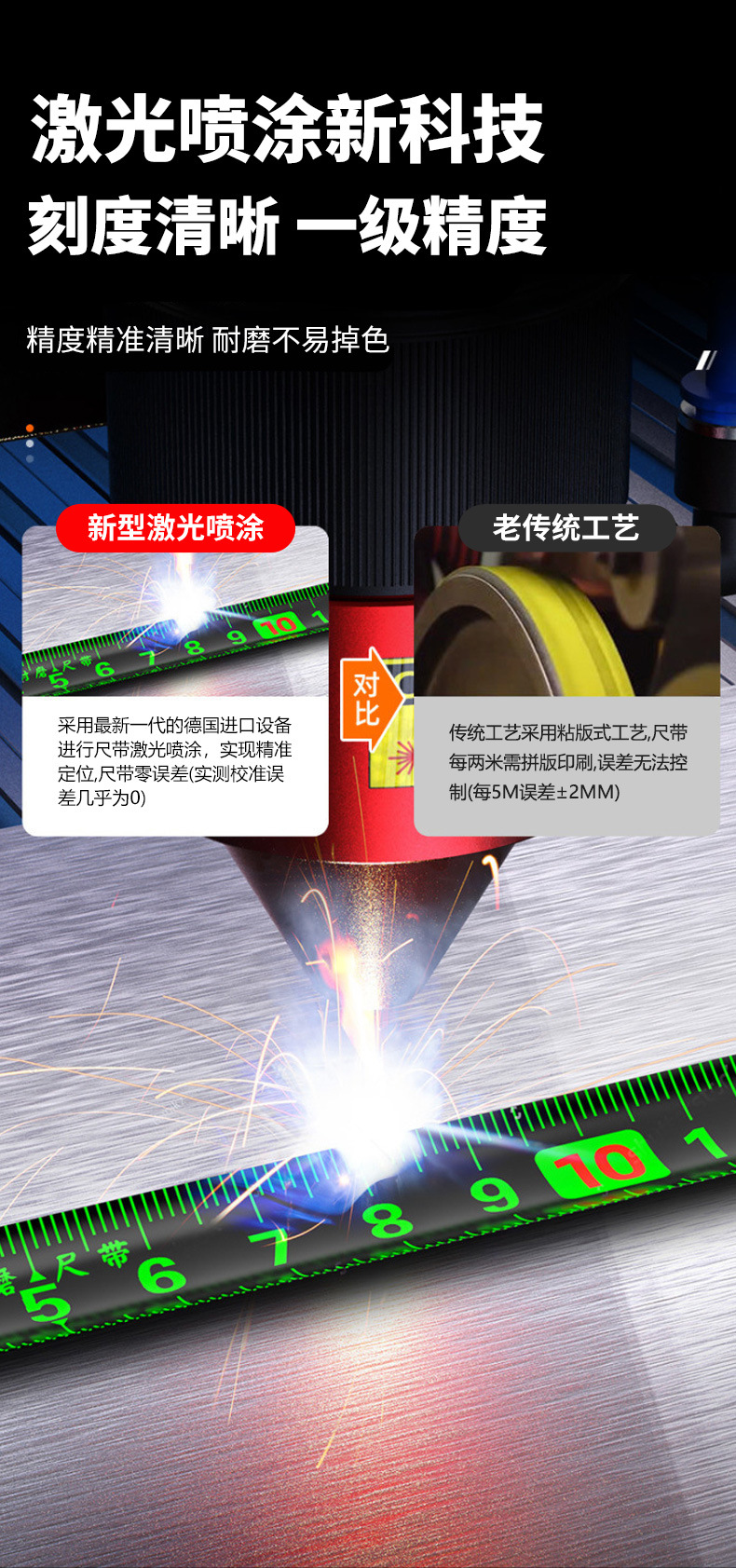 고정밀 형광 블랙 골드 줄자 5m 낙하 방지 및 확대 10m 내마모성 미터 줄자 무광택 강철 줄자 맞춤 제작스토어 가기
