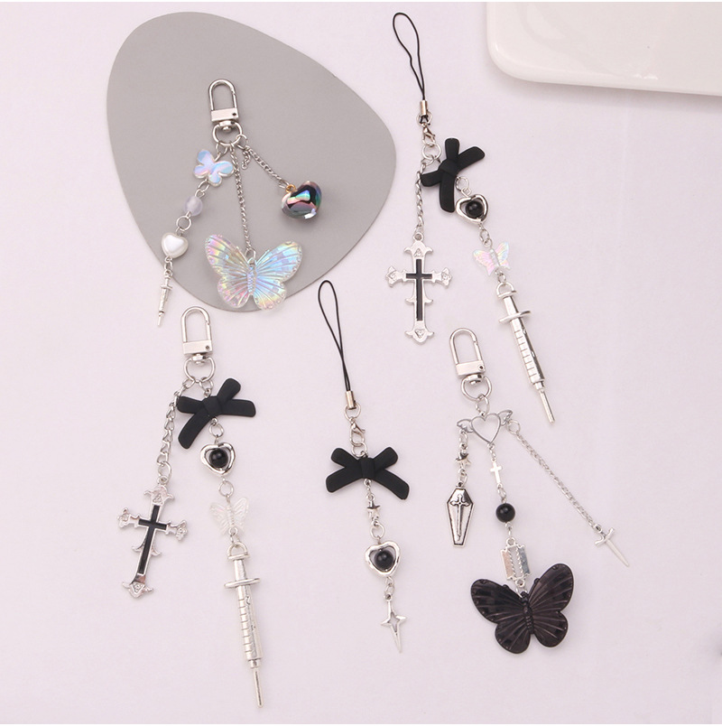 새로운 달콤한 멋진 스타일 크로스 주사기 키 체인 펜던트 맞춤형 크리 에이 티브 보우 교수형 체인 헤드폰 세트 가방 장식