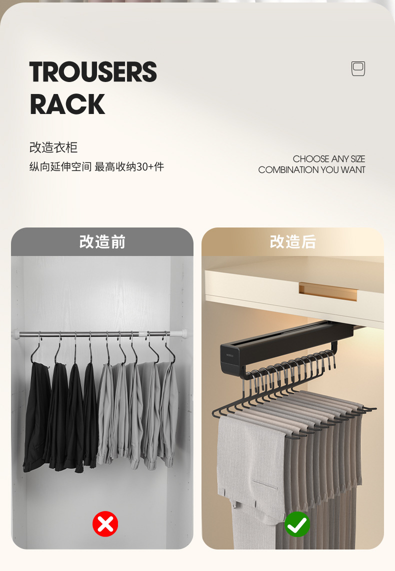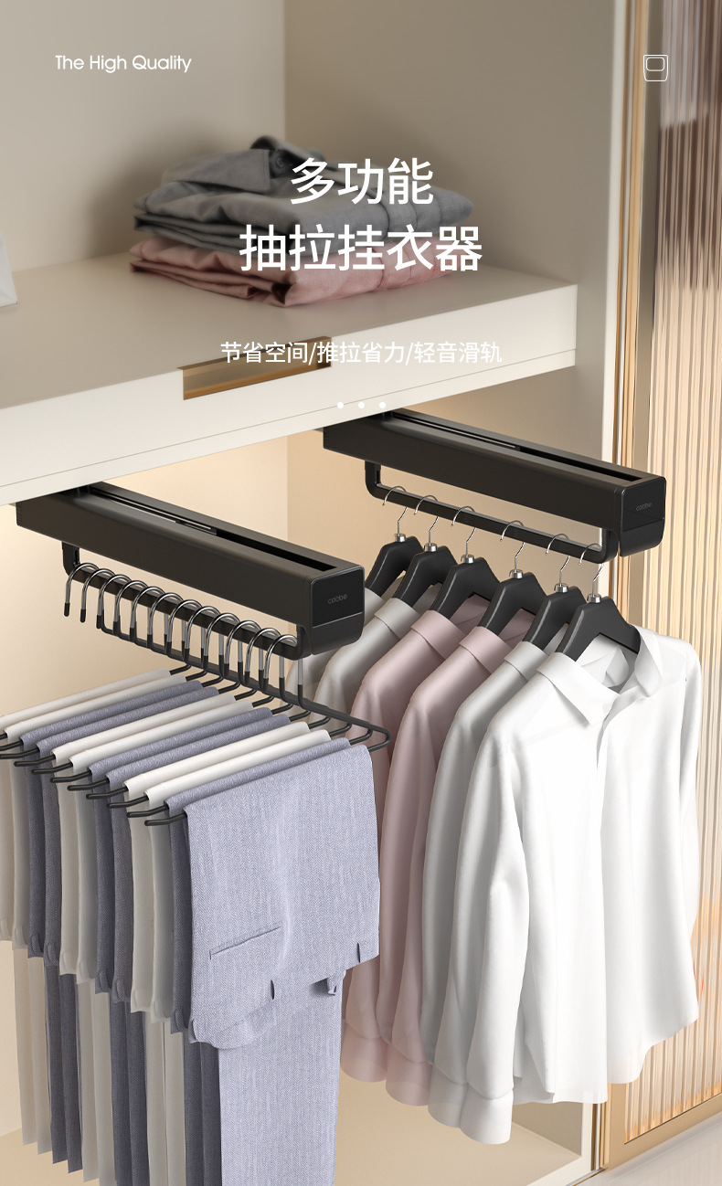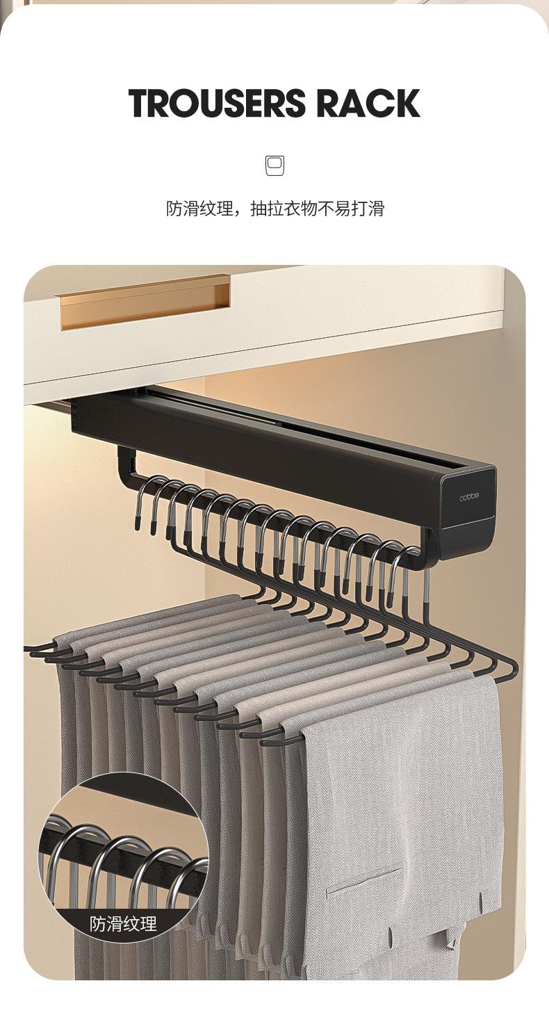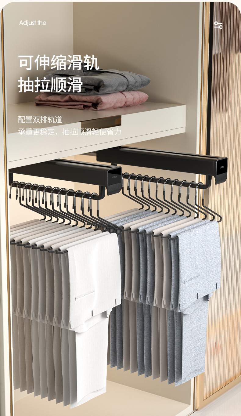 캐브 텔레스코픽 바지 랙 옷장 내장 교수형 바지 트랙 풀 아웃 바지 탑 마운트 슬라이드 레일 스토리지 하드웨어 액세서리스토어 가기