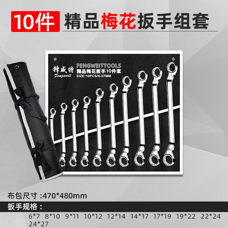 매화 개방 이중 목적 렌치 세트 매화 개방 거울 6-32mm 하이 하드 방청 둔한 헤드 렌치 천 가방 세트스토어 가기