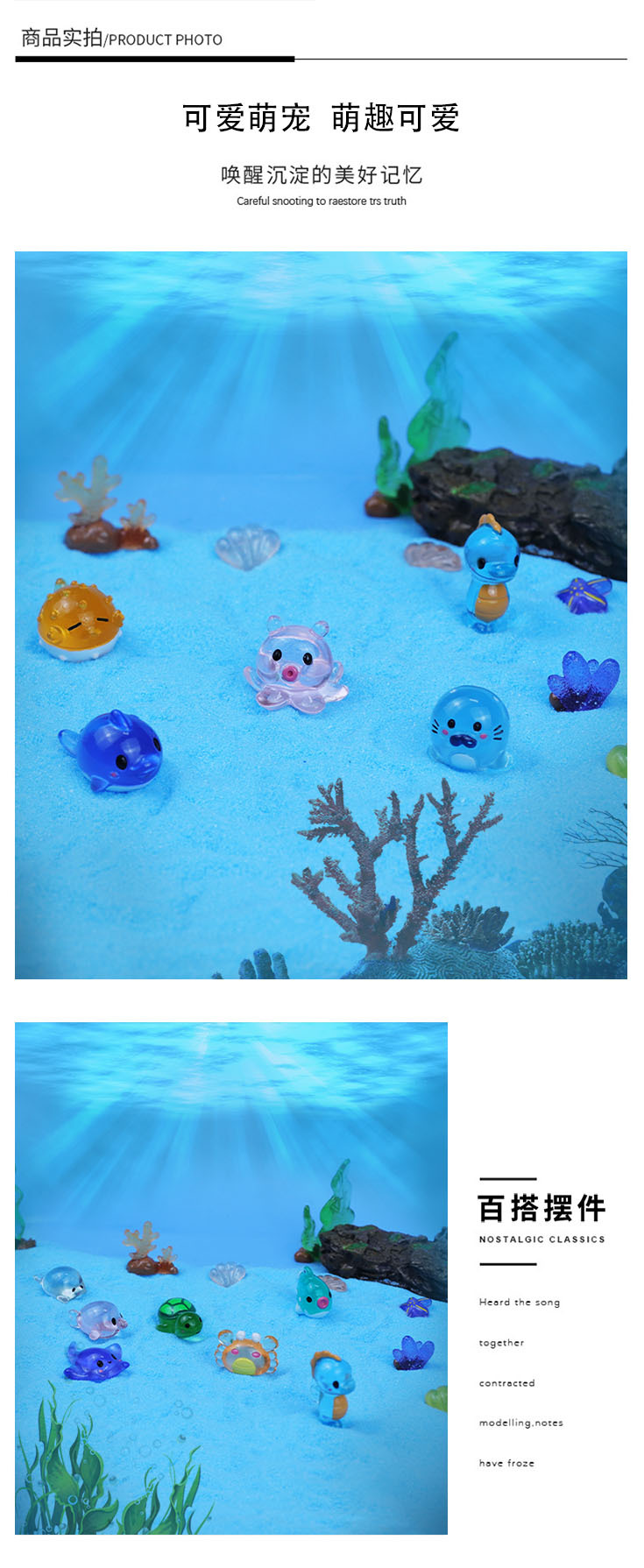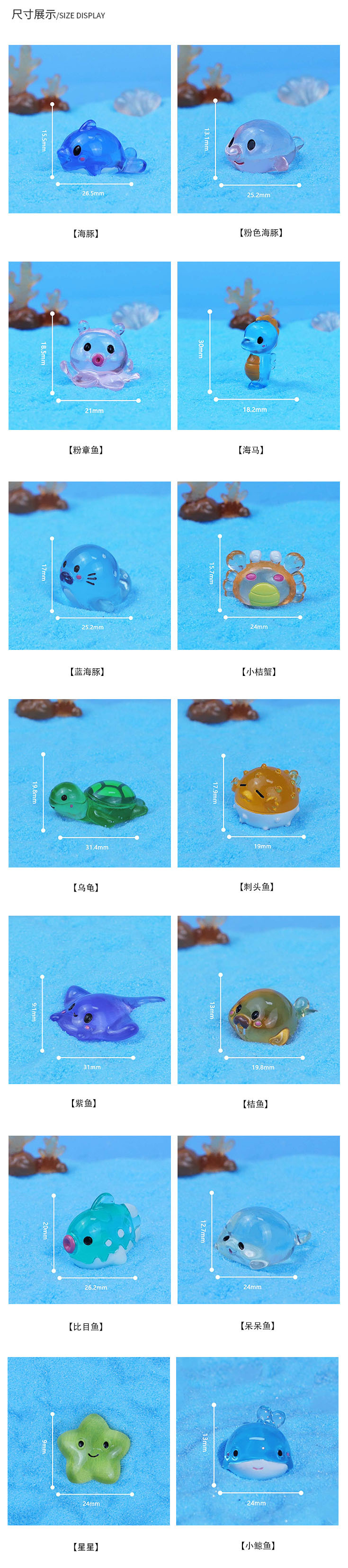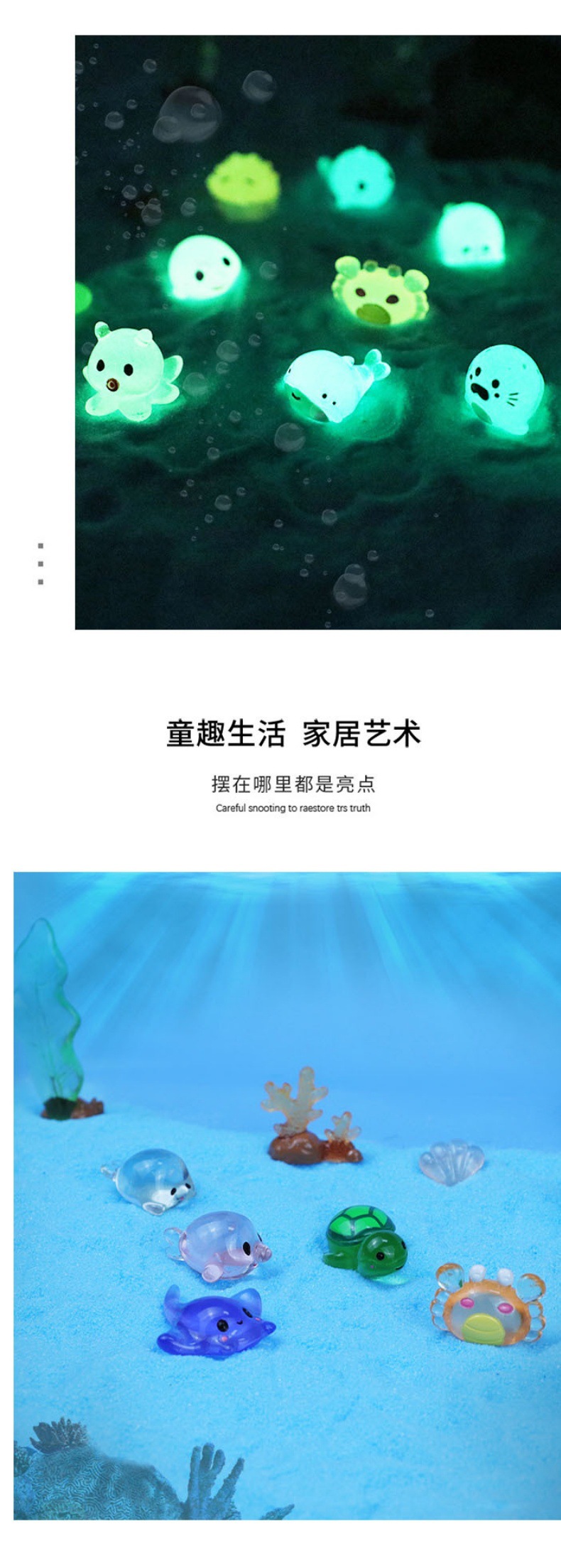 마이크로 풍경 빛나는 해양 동물 장식품 미니 해양 어항 조경 장식 홈 가구 수지 공예스토어 가기