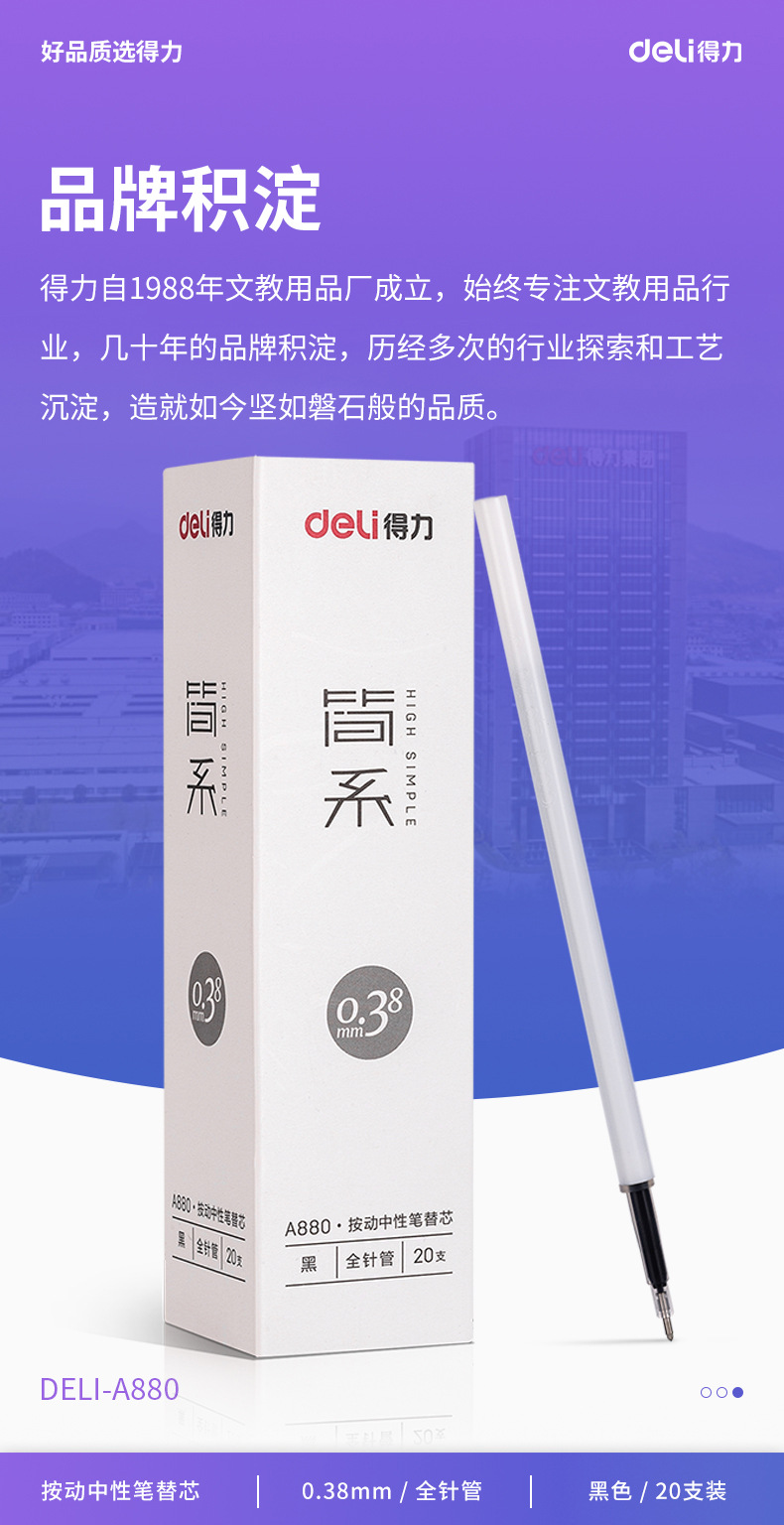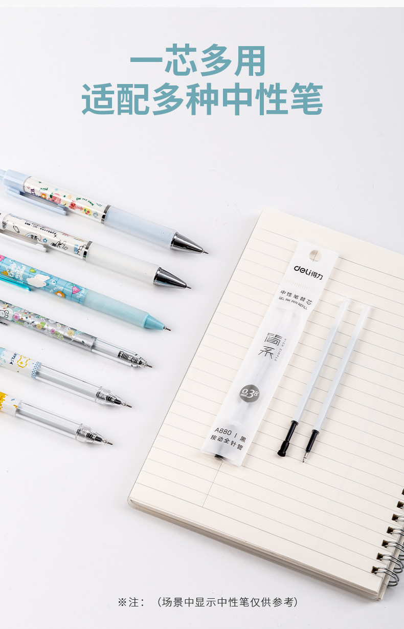 델리 A880 제인 부서 프레스 중립 리필 0.38mm 학생 시험 리필 전체 바늘 사인 펜 도매