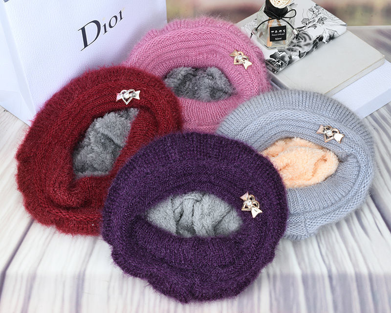 秋冬季新款加绒加厚帽子围巾一体女护耳毛线针织帽保暖护颈风雪帽¥6