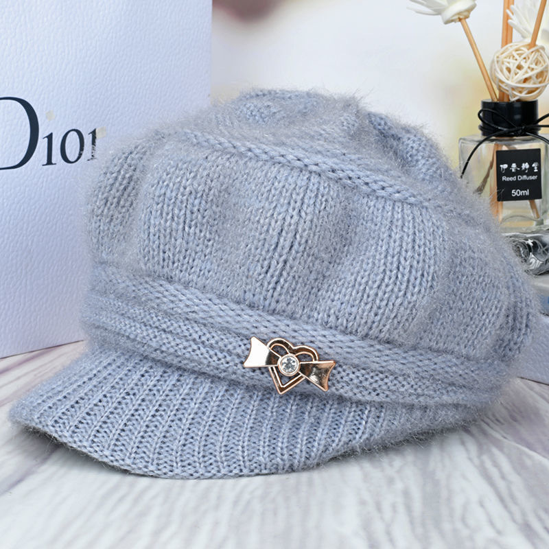 帽子女冬季空顶加厚护耳保暖鸭舌帽韩版百搭户外针织毛线帽显脸小