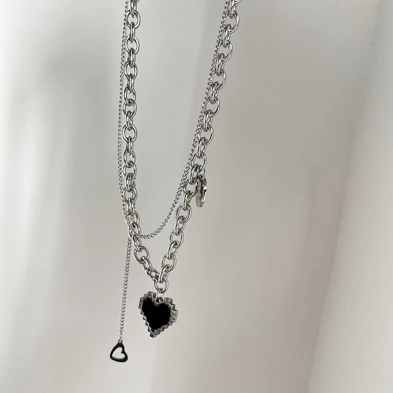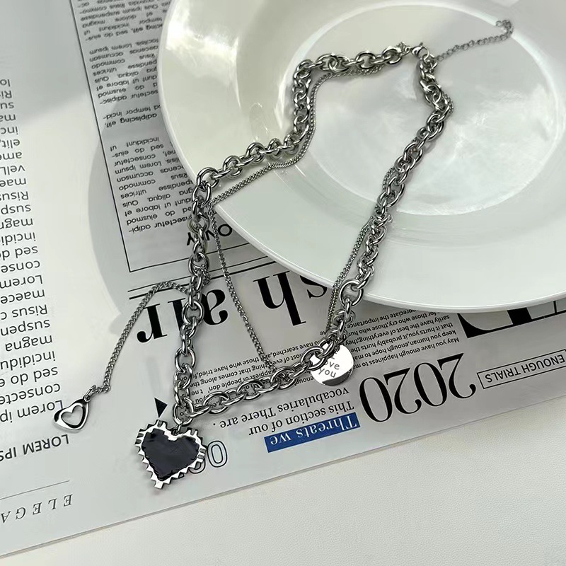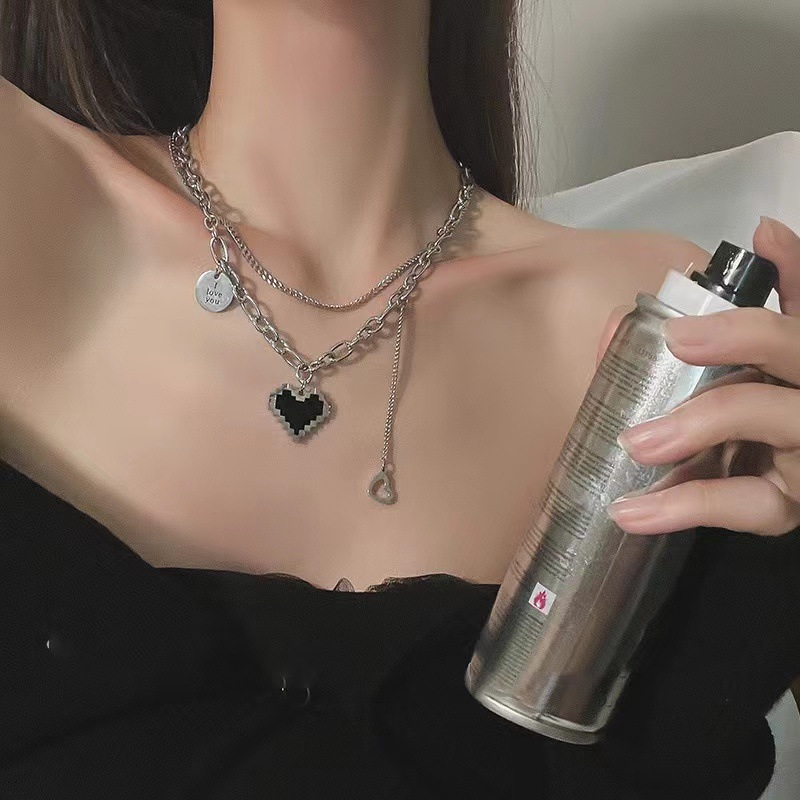 [티타늄 스틸] 쌓인 사랑 목걸이 여성용 라이트 럭셔리 틈새 넥 체인 2023 새로운 폭발성 쇄골 체인 액세서리