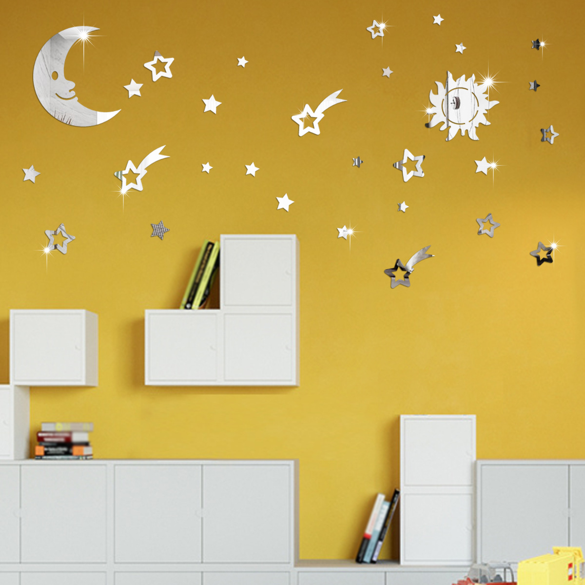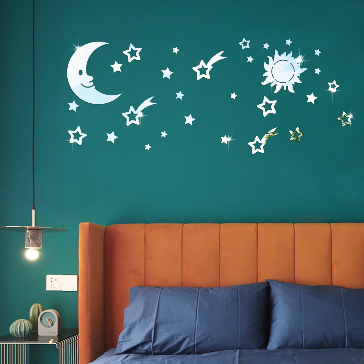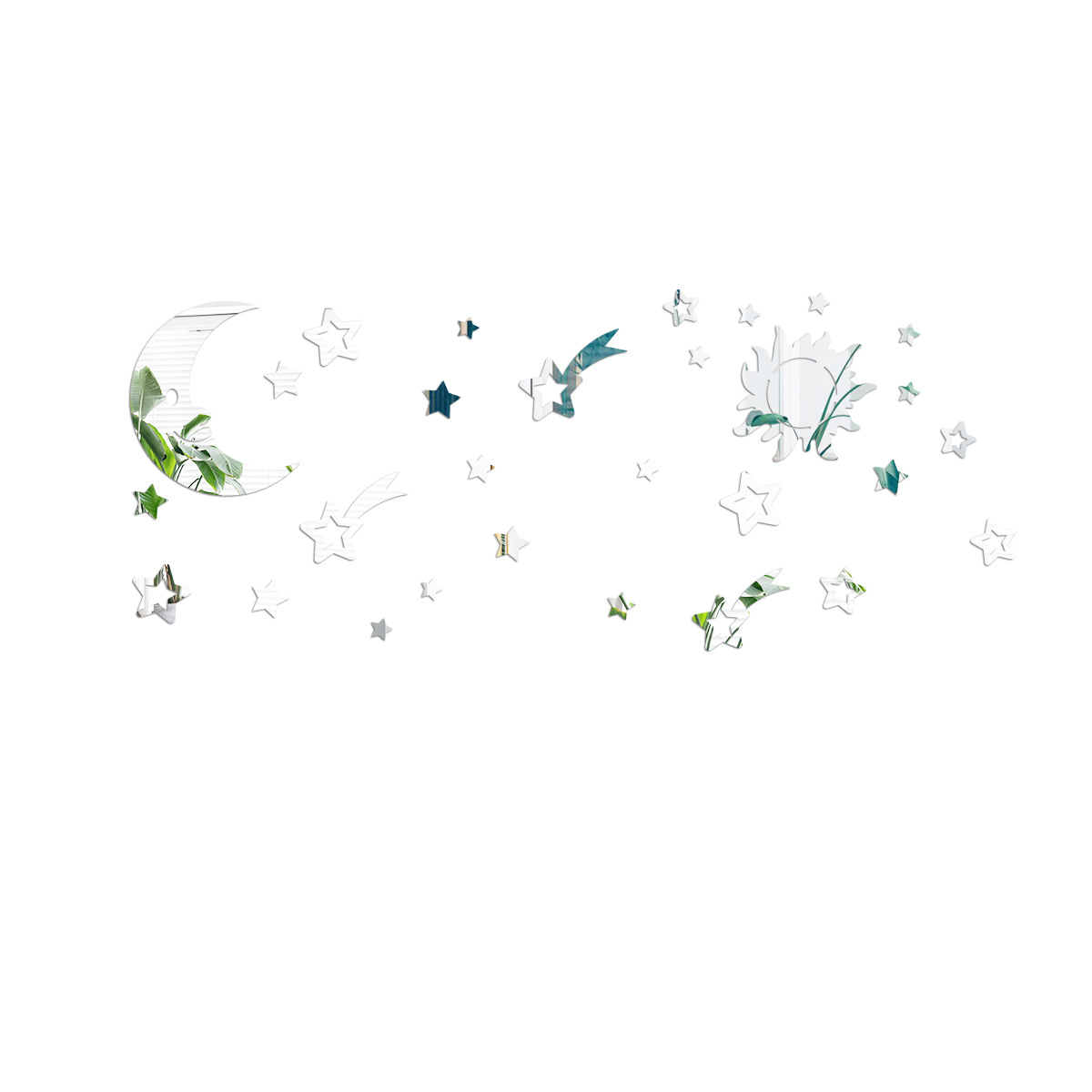 JM3204 크로스 보더 문 스테레오 미러 아크릴 창조적 인 벽 스티커 거실 침실 방 장식 자체 접착 스티커