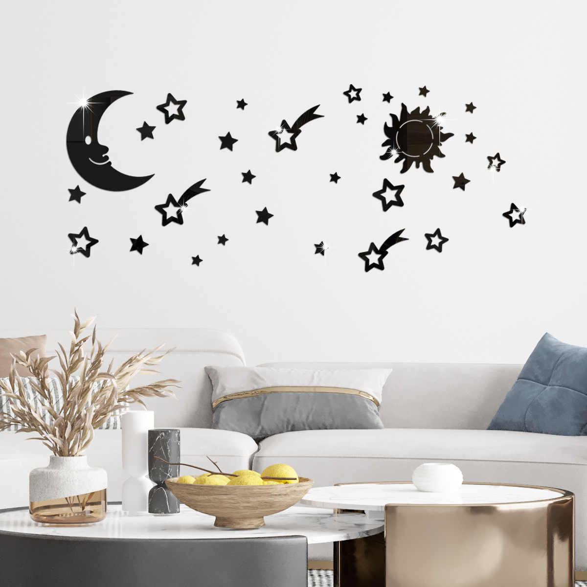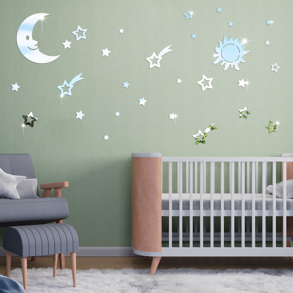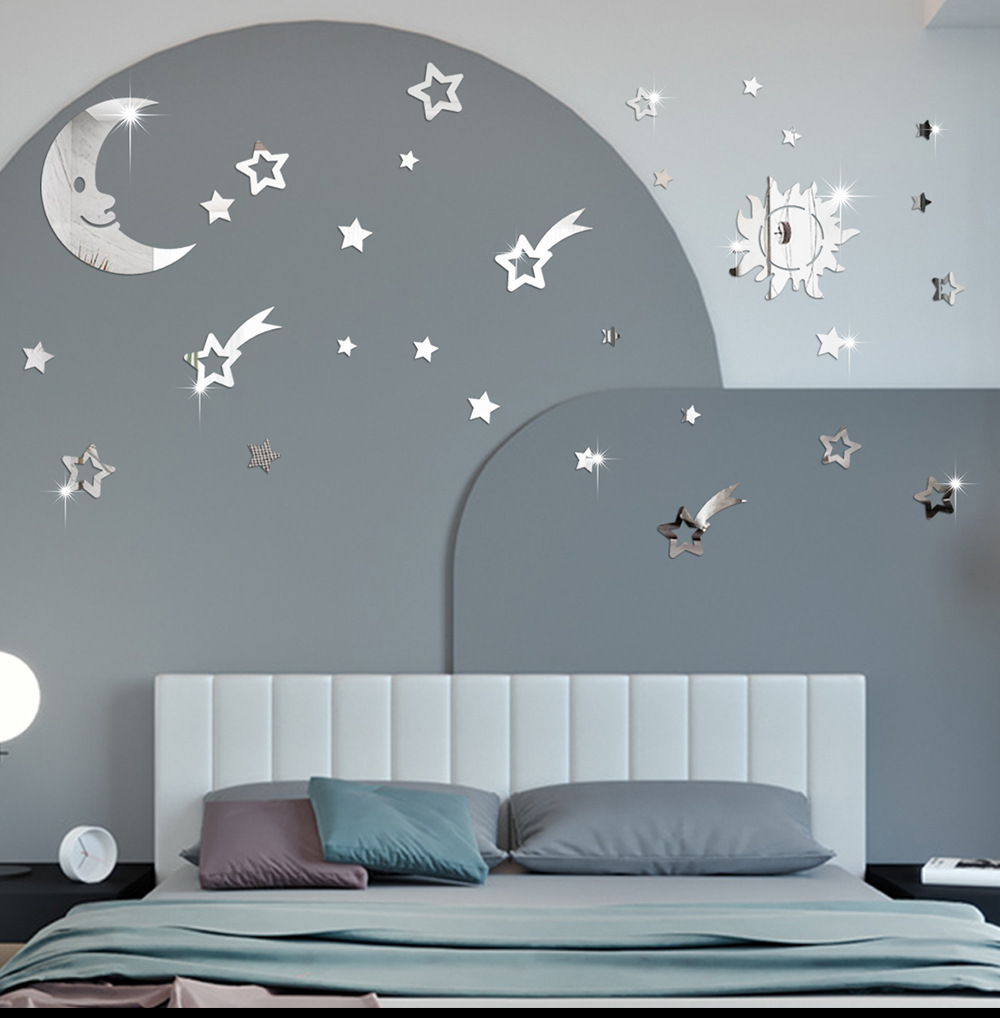 JM3204 크로스 보더 문 스테레오 미러 아크릴 창조적 인 벽 스티커 거실 침실 방 장식 자체 접착 스티커