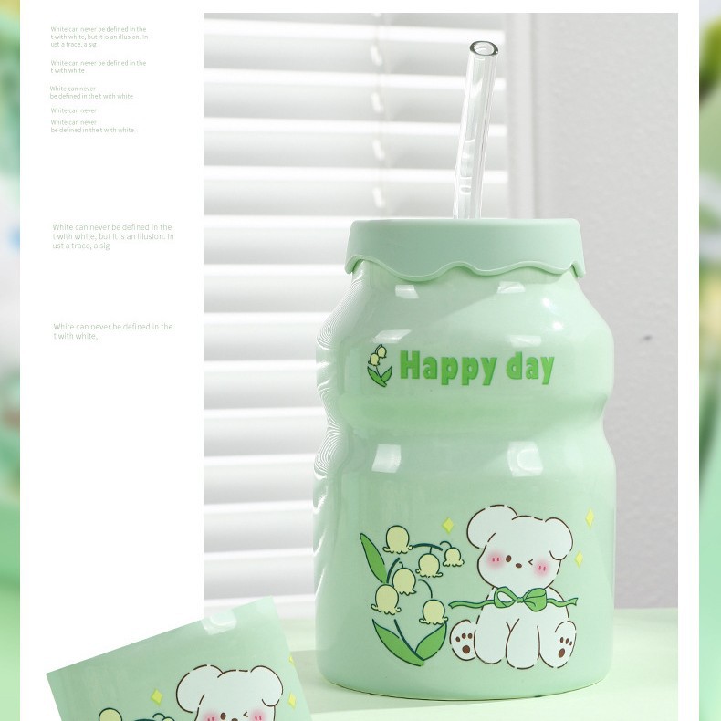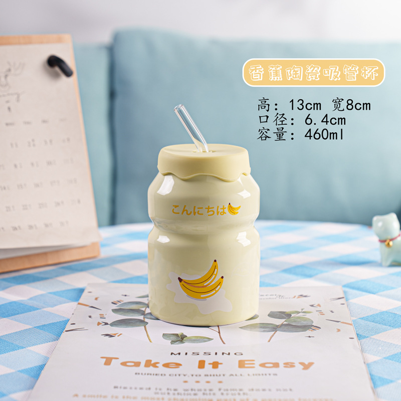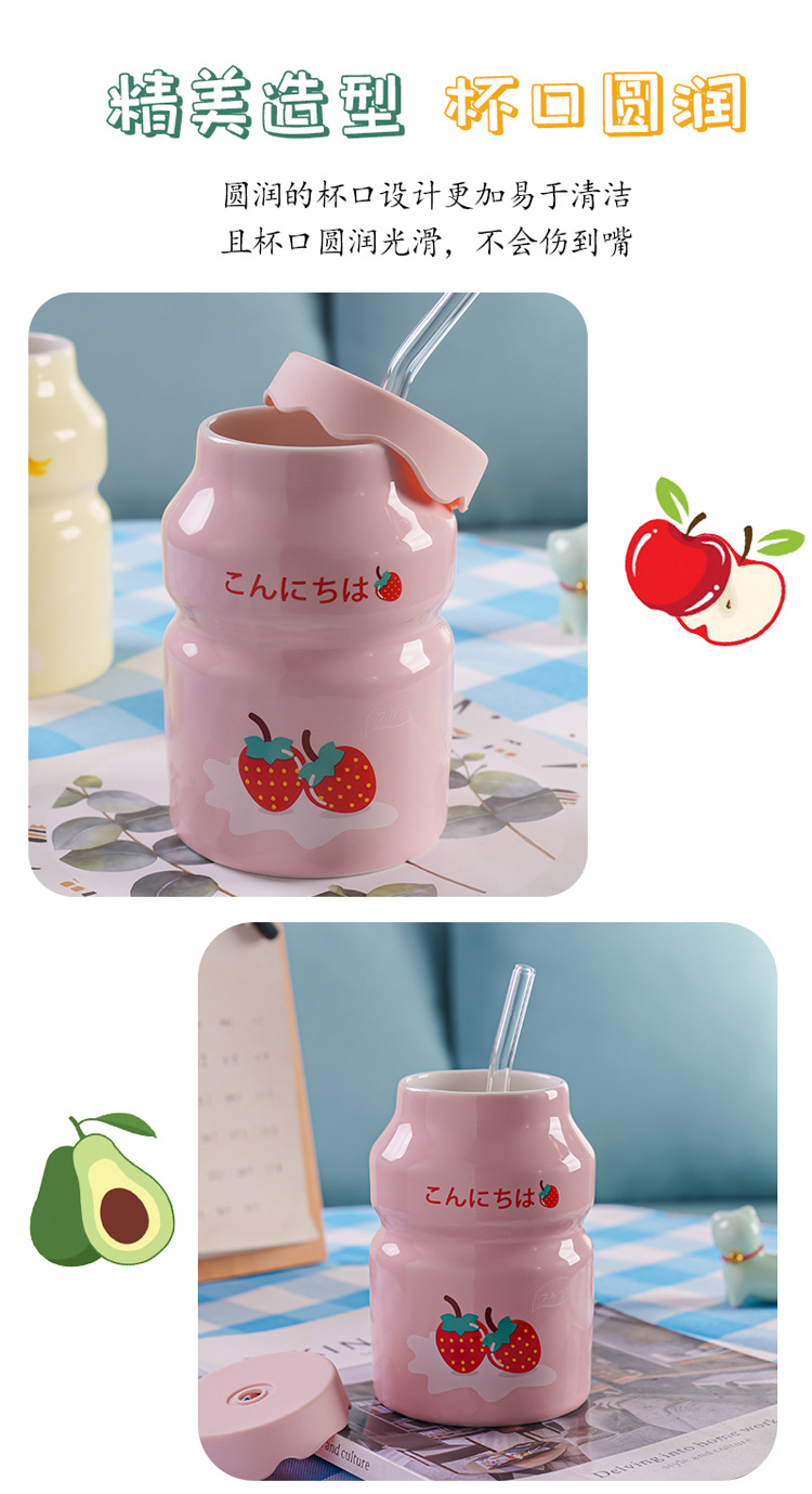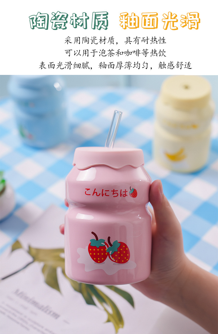 Kulomi Yugui 개 헬로 키티 흡입 컵 세라믹 높은 색 가치 과일 물 컵 가정용 식용 물 컵 선물스토어 가기