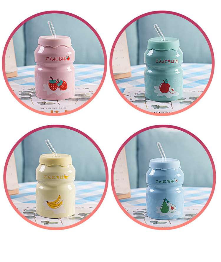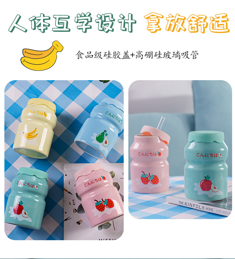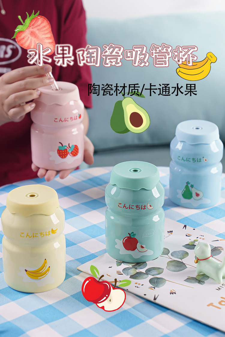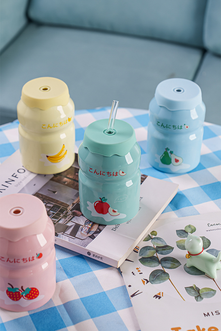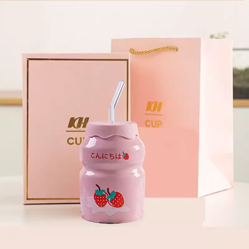 Kulomi Yugui 개 헬로 키티 흡입 컵 세라믹 높은 색 가치 과일 물 컵 가정용 식용 물 컵 선물