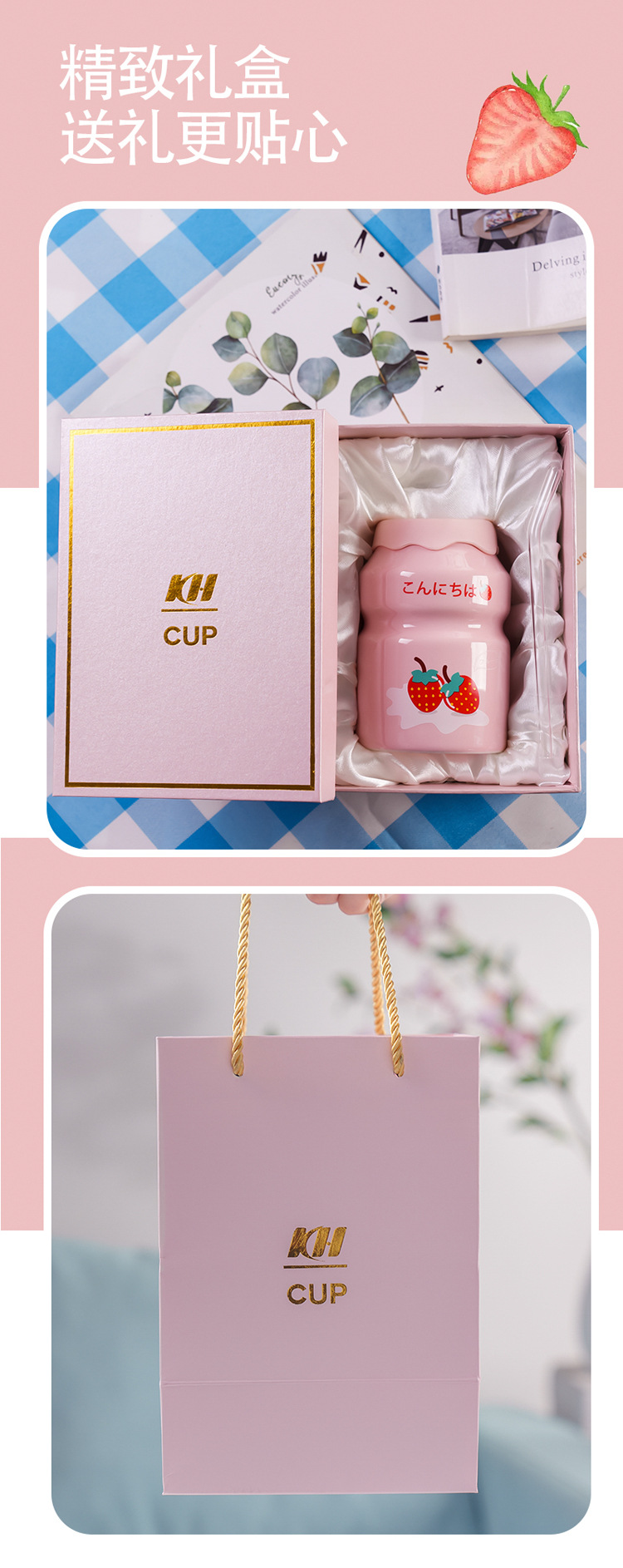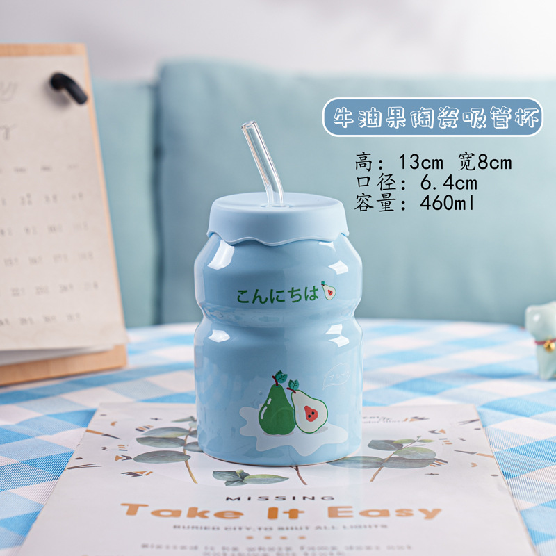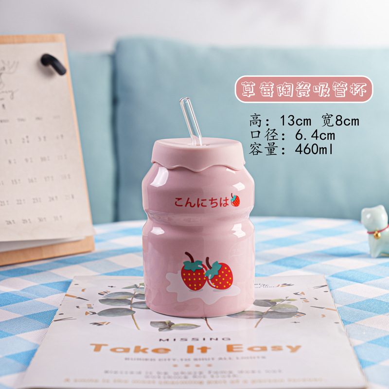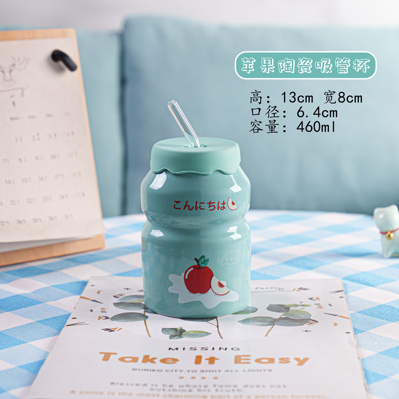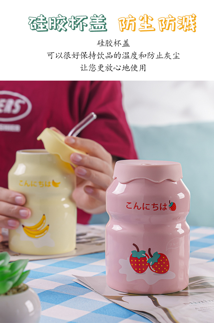 Kulomi Yugui 개 헬로 키티 흡입 컵 세라믹 높은 색 가치 과일 물 컵 가정용 식용 물 컵 선물