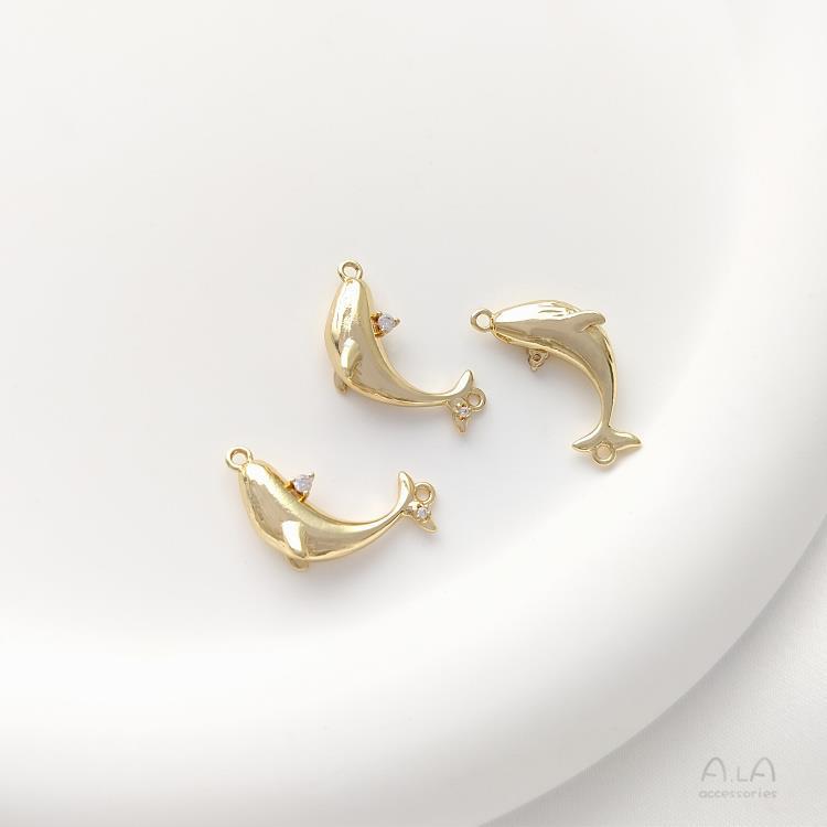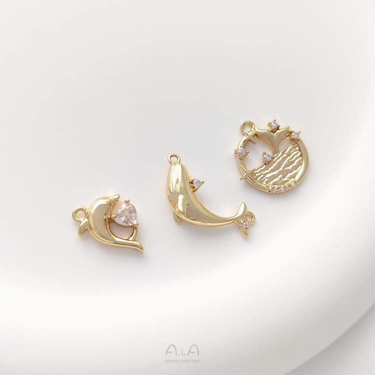 색상 유지 14K 골드 상감 지르콘 고래 돌고래 피쉬테일 펜던트 해양 생물 펜던트 팔찌 귀걸이 펜던트스토어 가기
