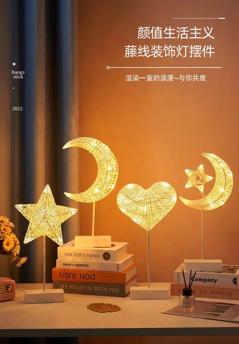 크로스보더 LED 등나무 오각별 테이블 램프 크리스마스 실내 침실 장식 분위기 조명 배터리 박스 철제 야간등스토어 가기