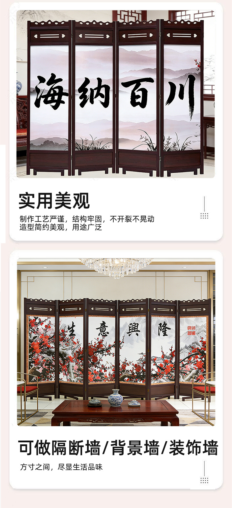 재고 새로운 중국 스타일 스크린 파티션 거실 나무 침실 접이식 화면 모바일 입구 문 사무실 대피소