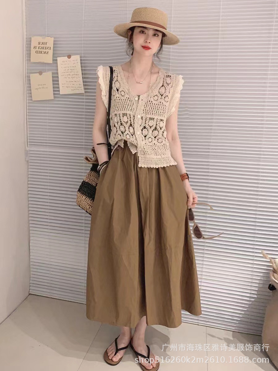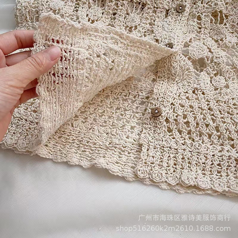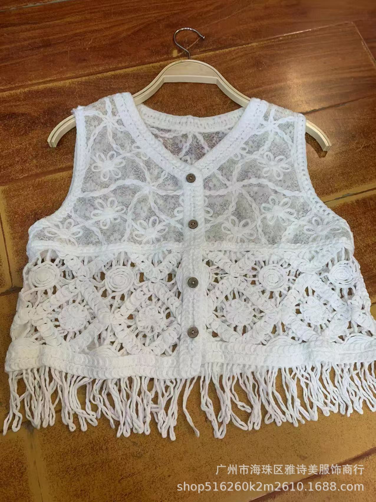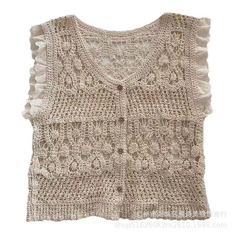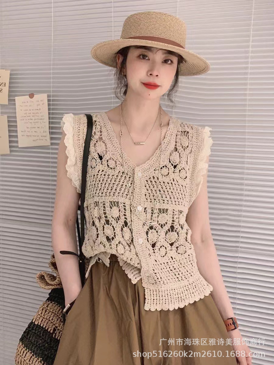 한국 스타일 틈새 우아한 V-넥 중공 조끼 여성용 여름 달콤한 비행 슬리브 모든 매치 느슨한 짧은 탑스토어 가기
