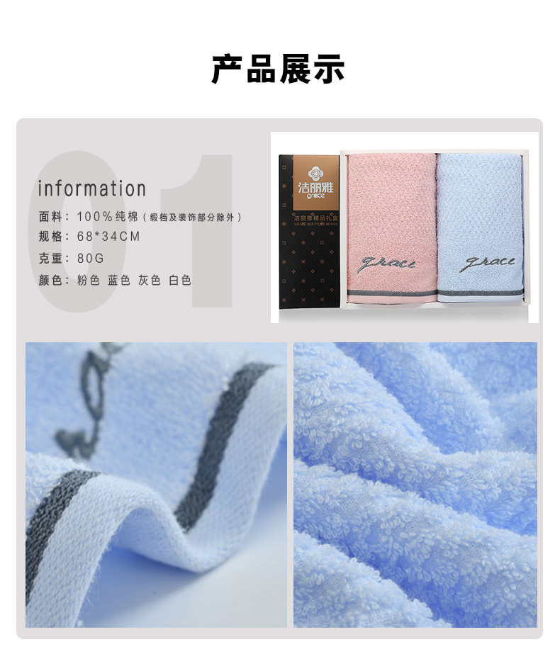 Jialiya 정품 순면 수건 선물 상자 2팩 결혼식 생일 답례 선물 기념품 수건 세트는 자수 가능