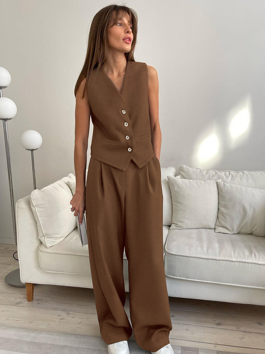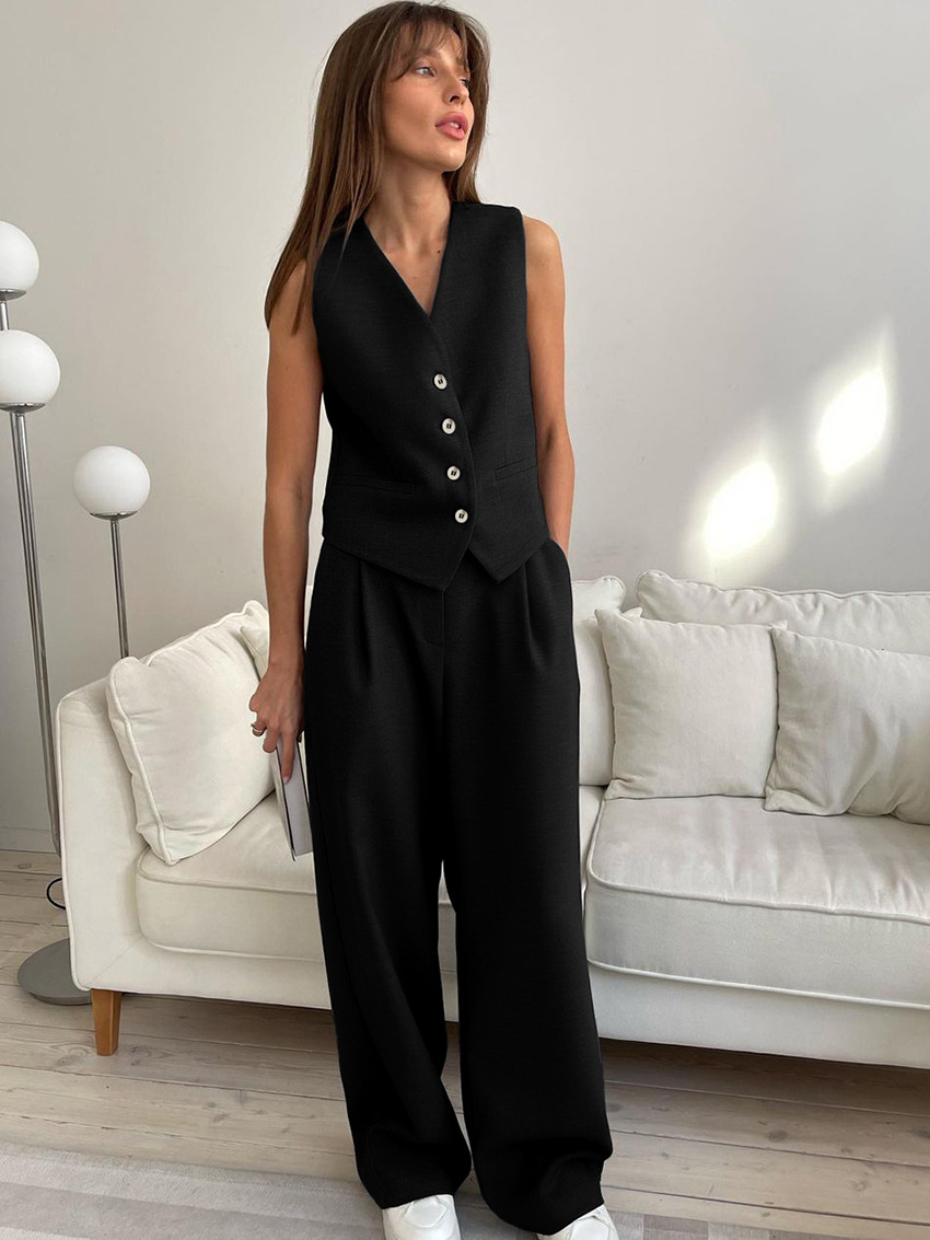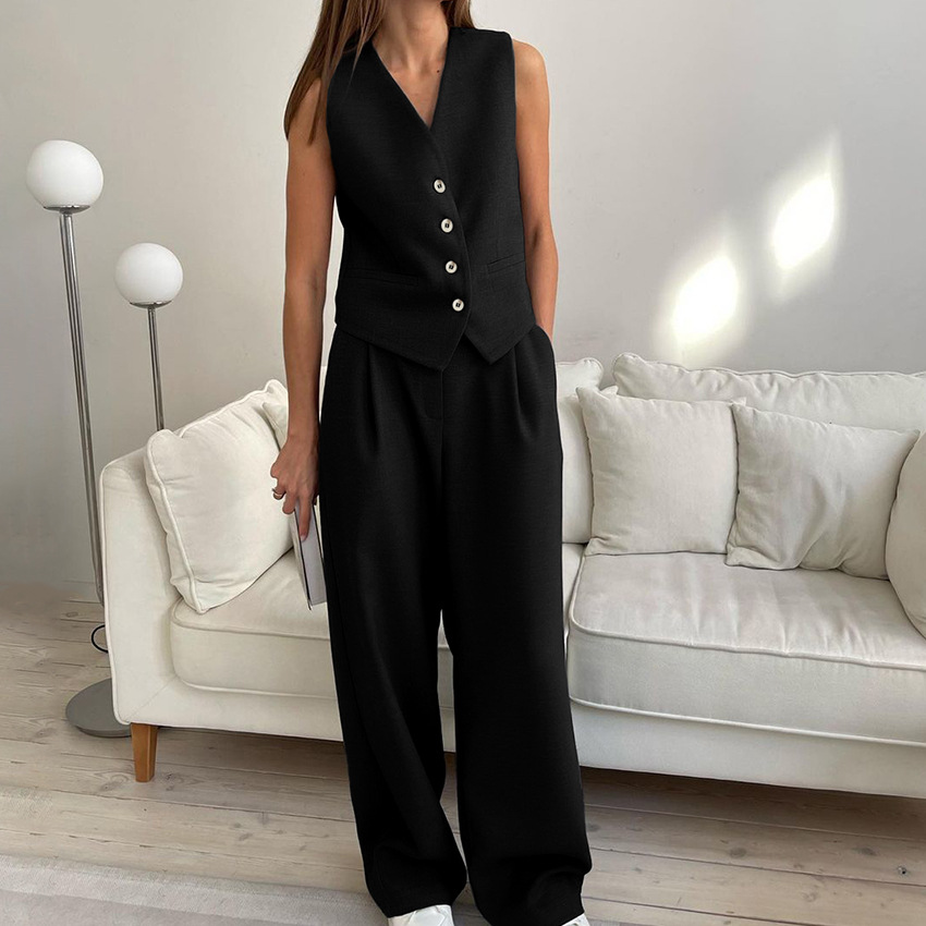 여름 신작 조끼 정장 바지 정장 2025 패션 유럽과 미국의 국경 간 통근 여성 의류 심플하고 고급스러운 느낌