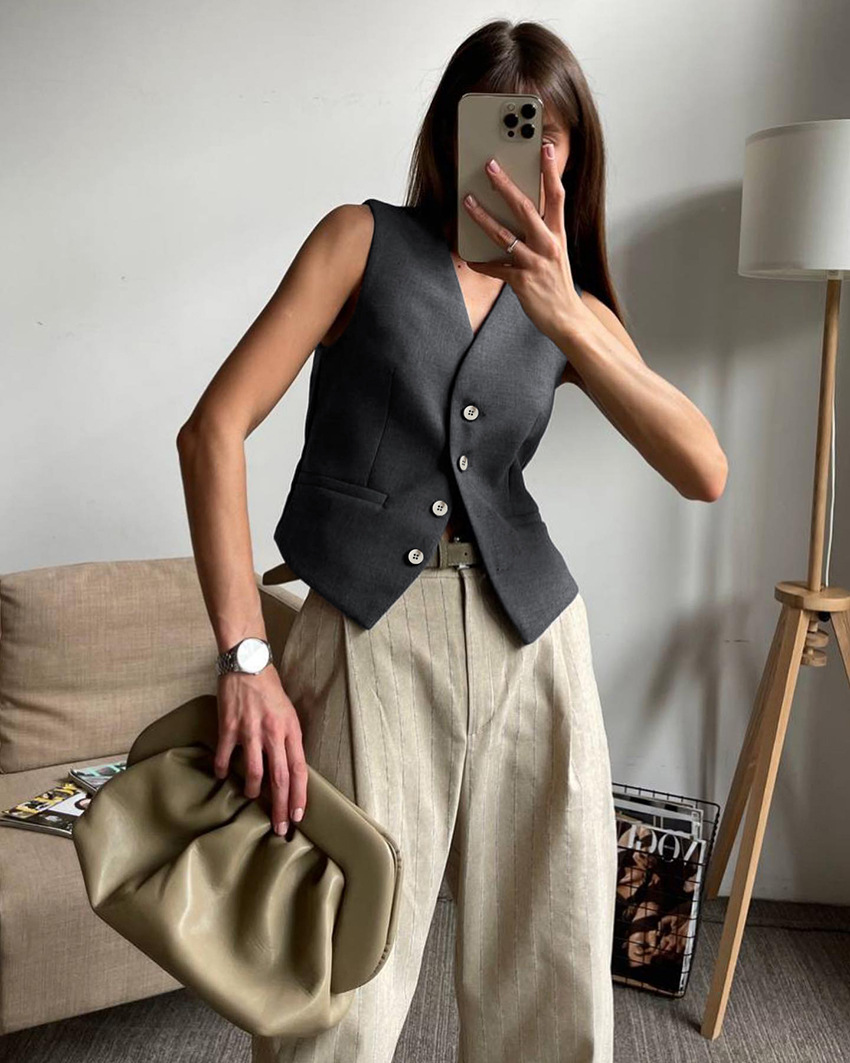 여름 신작 조끼 정장 바지 정장 2025 패션 유럽과 미국의 국경 간 통근 여성 의류 심플하고 고급스러운 느낌스토어 가기