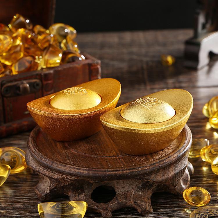 시뮬레이션 금괴 회전 데스크탑 공예 행운의 보물 양동이 장식품 감압 골드 바 손가락 끝 자이로 선물스토어 가기
