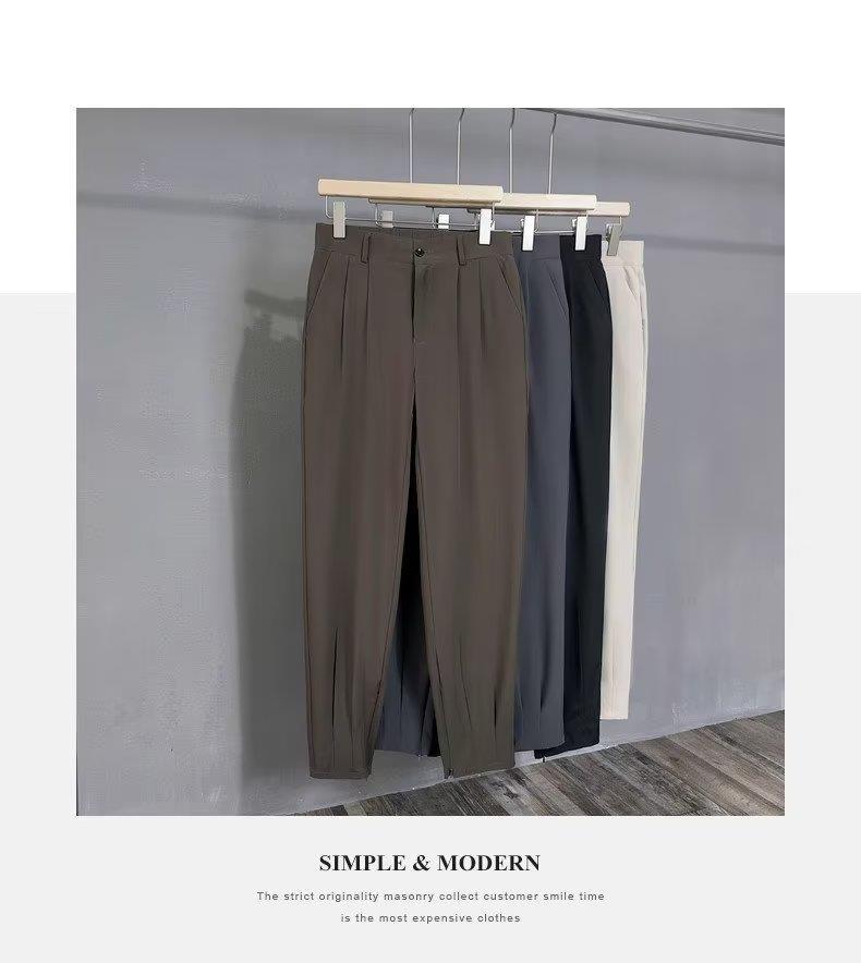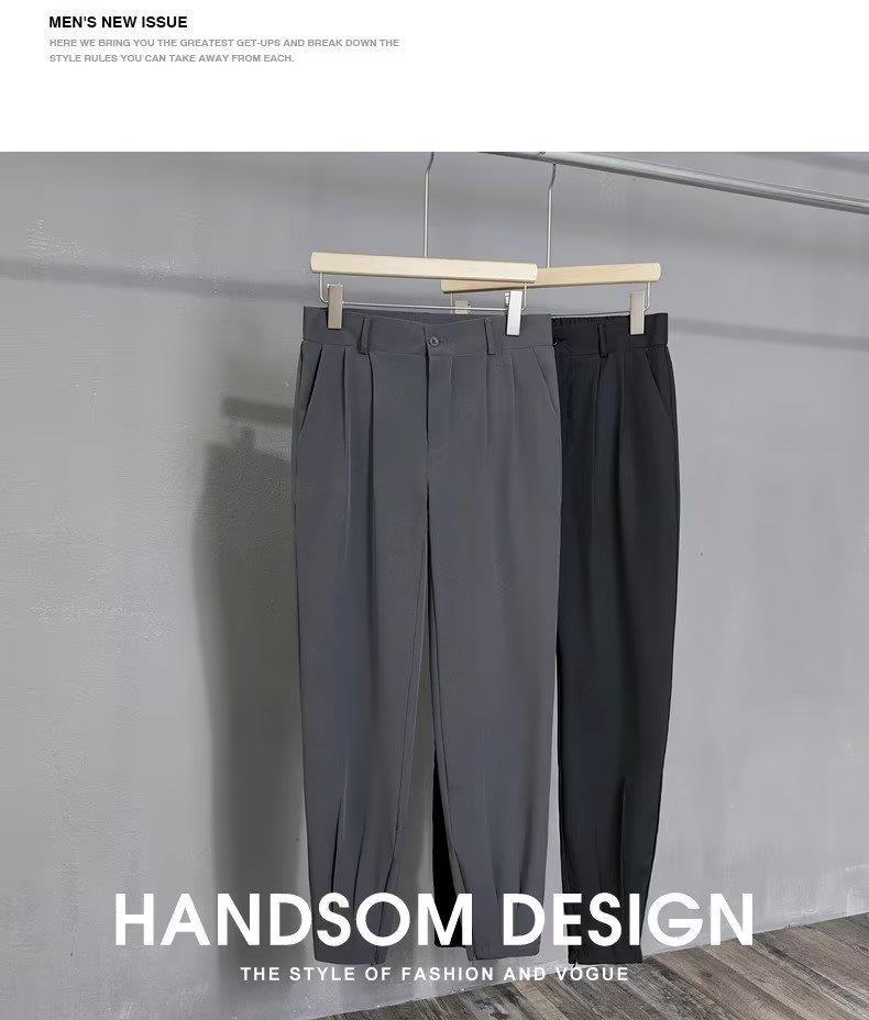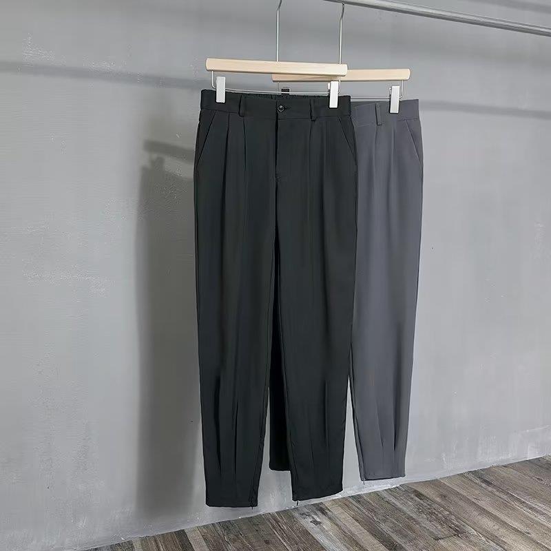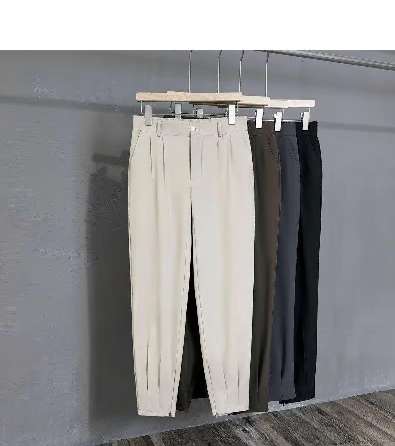 발목 바지 남성용 여름 얇은 펜던트 고급 아이스 실크 캐주얼 바지 슬림핏 스키니 발 지퍼 발목 길이 바지스토어 가기