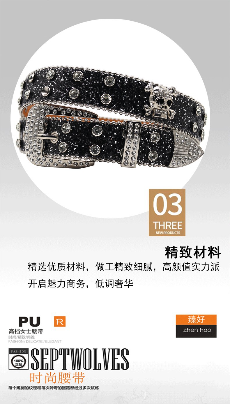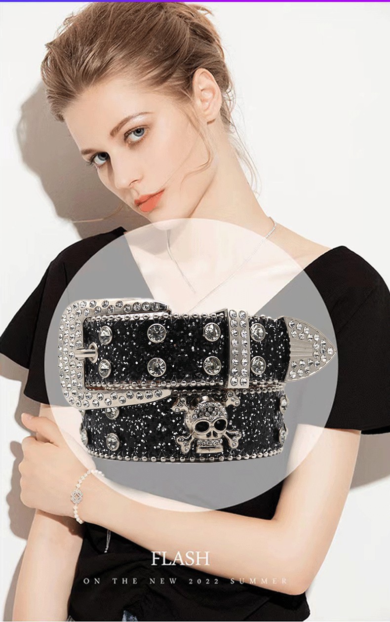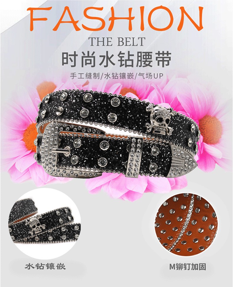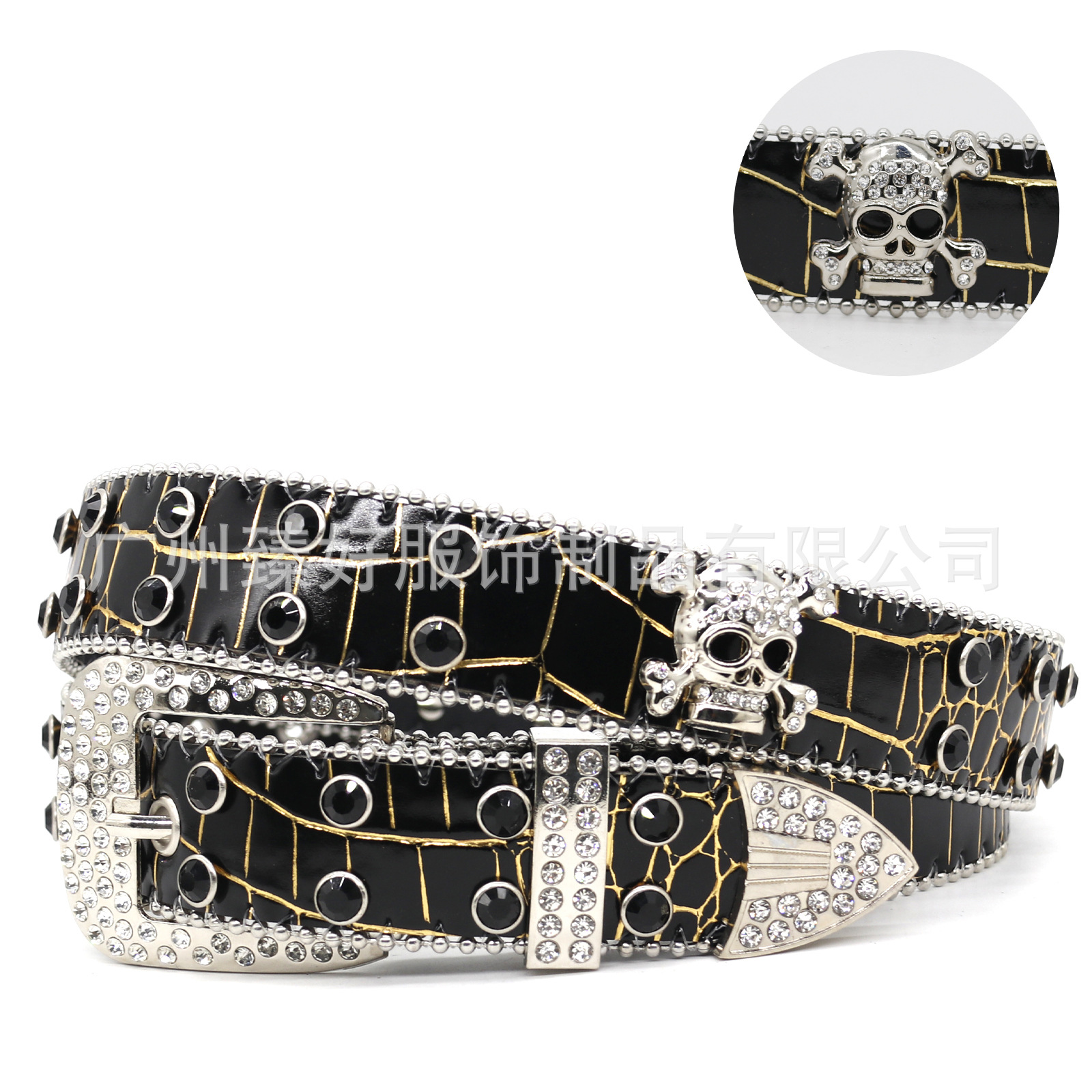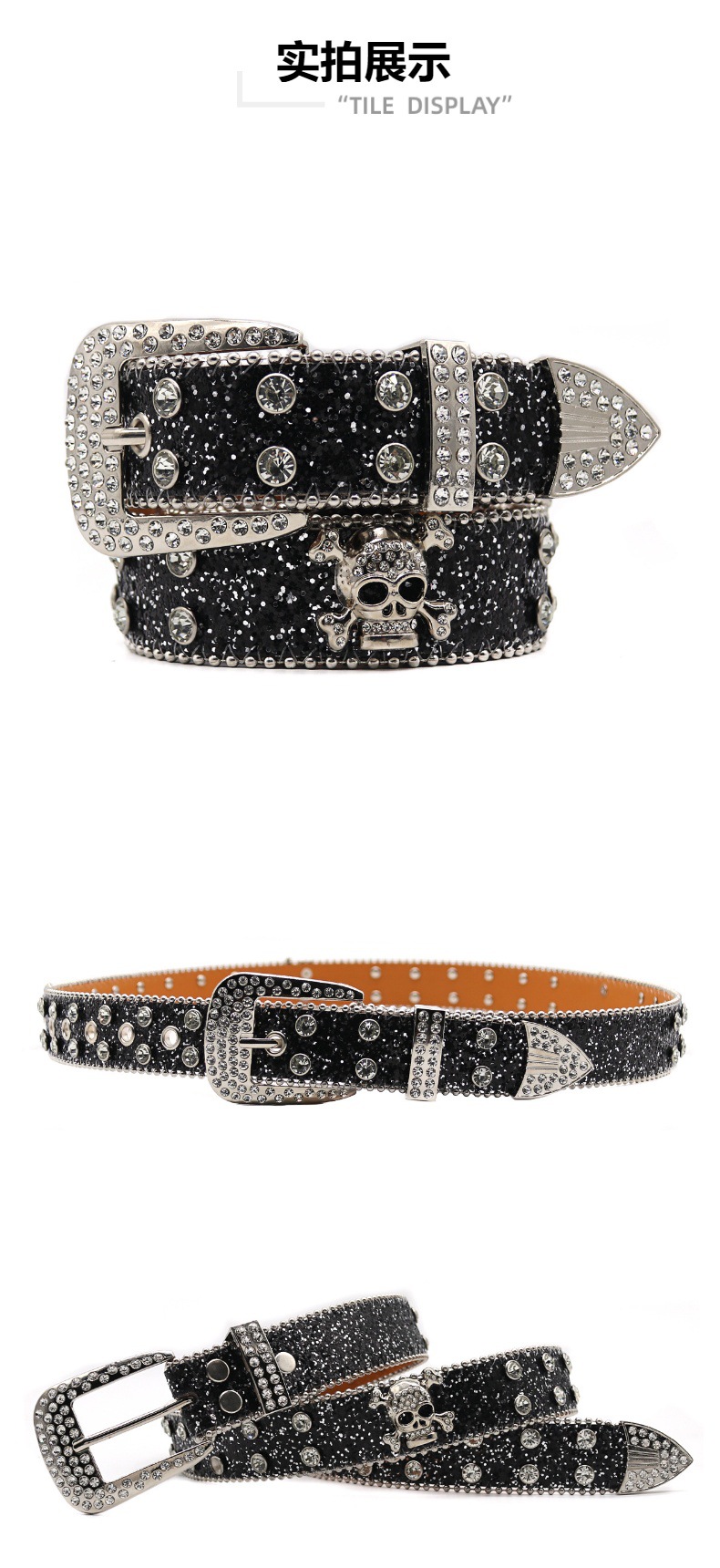 국경 벨트 라인 석 해골 넓은 벨트 상감 플래시 다이아몬드 힙합 펑크 성격 패션 비 주류 도매스토어 가기