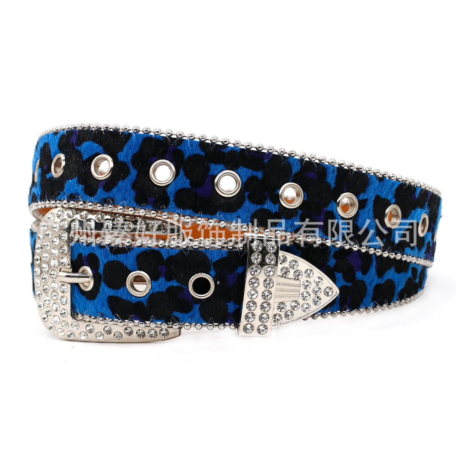 • xksz0114 다크블루 레오파드 프린트 아일렛 벨트
