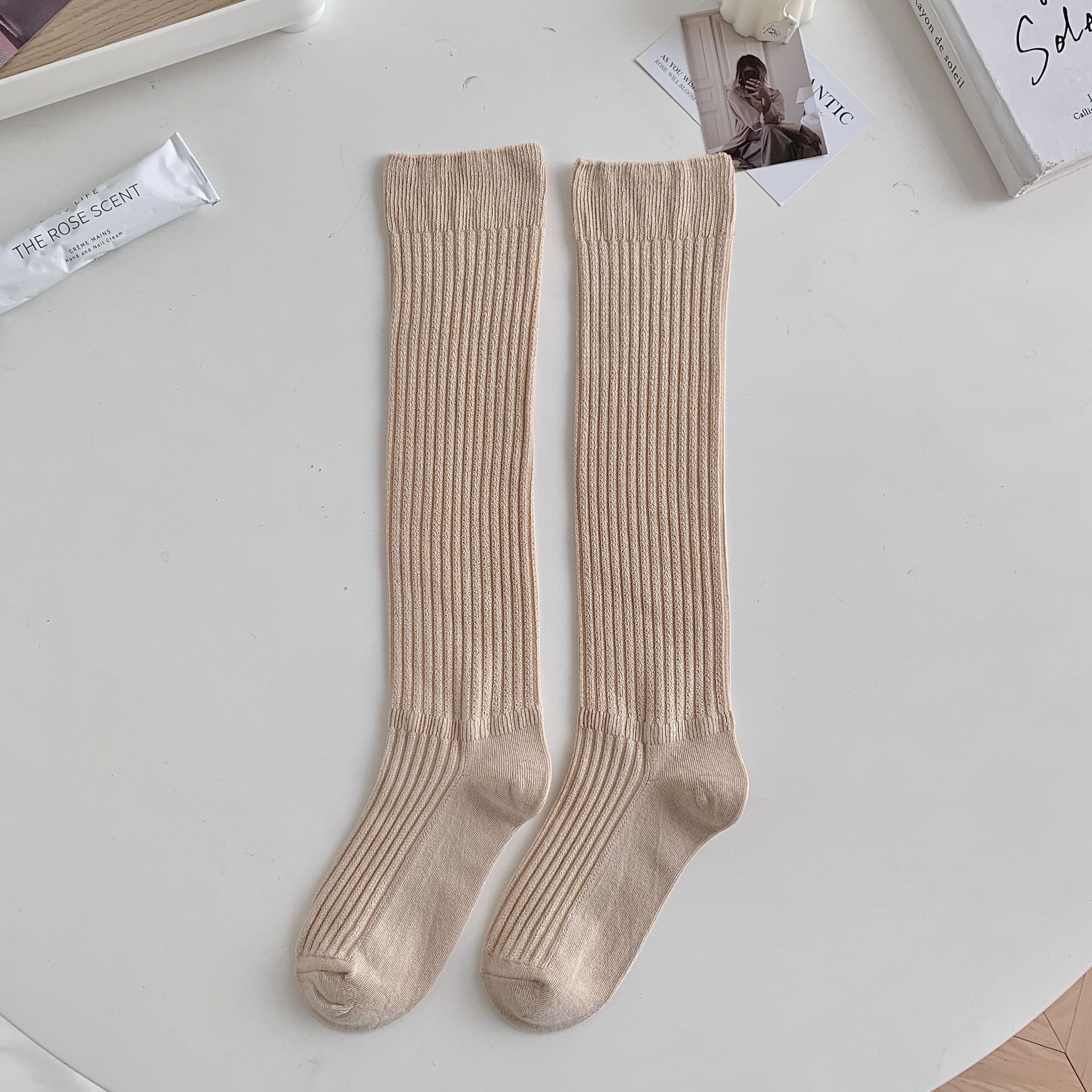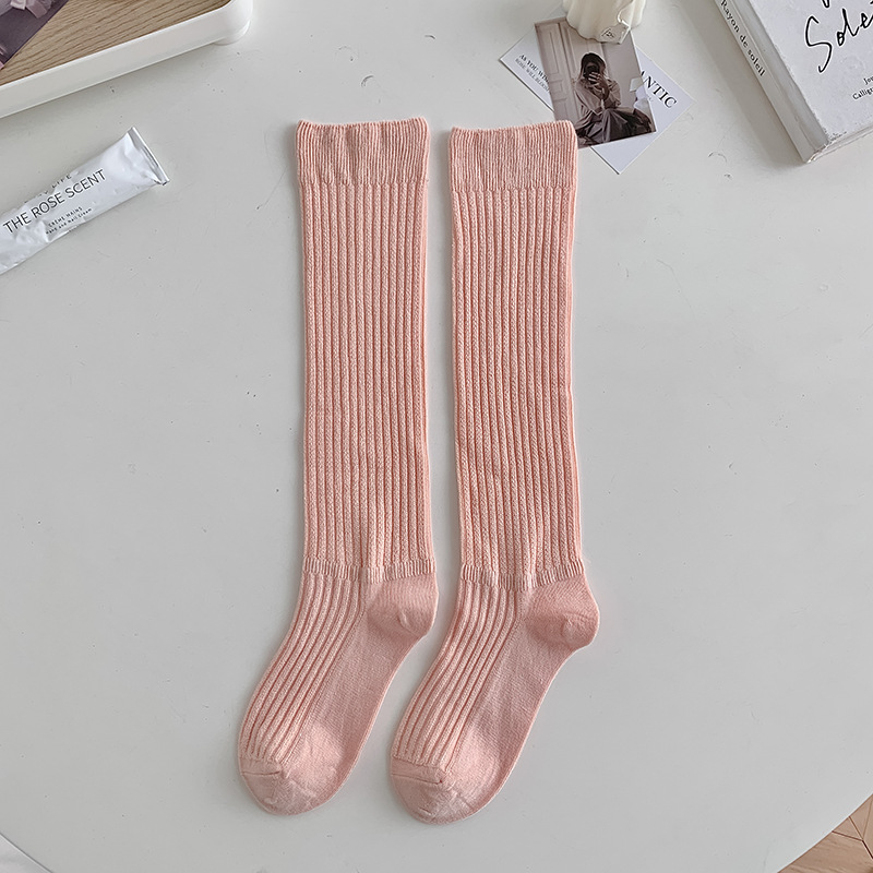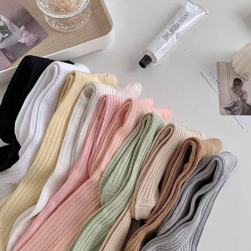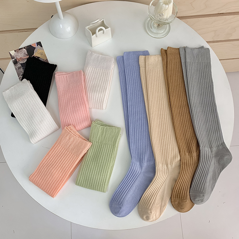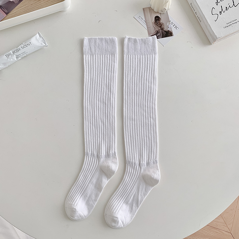 Lyocell 종아리 양말 여성용 세로 스트라이프 쌓인 양말 일본식 중공 무릎 높이 양말 한국 트렌디 한 흰색 양말스토어 가기