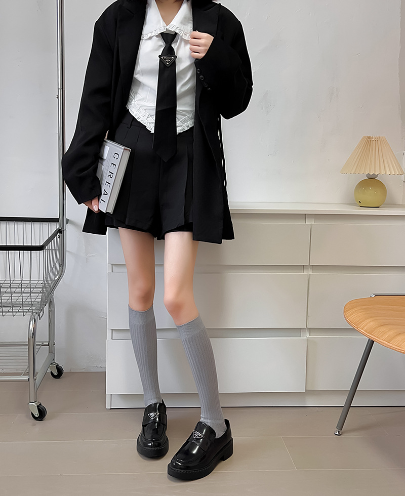 Lyocell 종아리 양말 여성용 세로 스트라이프 쌓인 양말 일본식 중공 무릎 높이 양말 한국 트렌디 한 흰색 양말