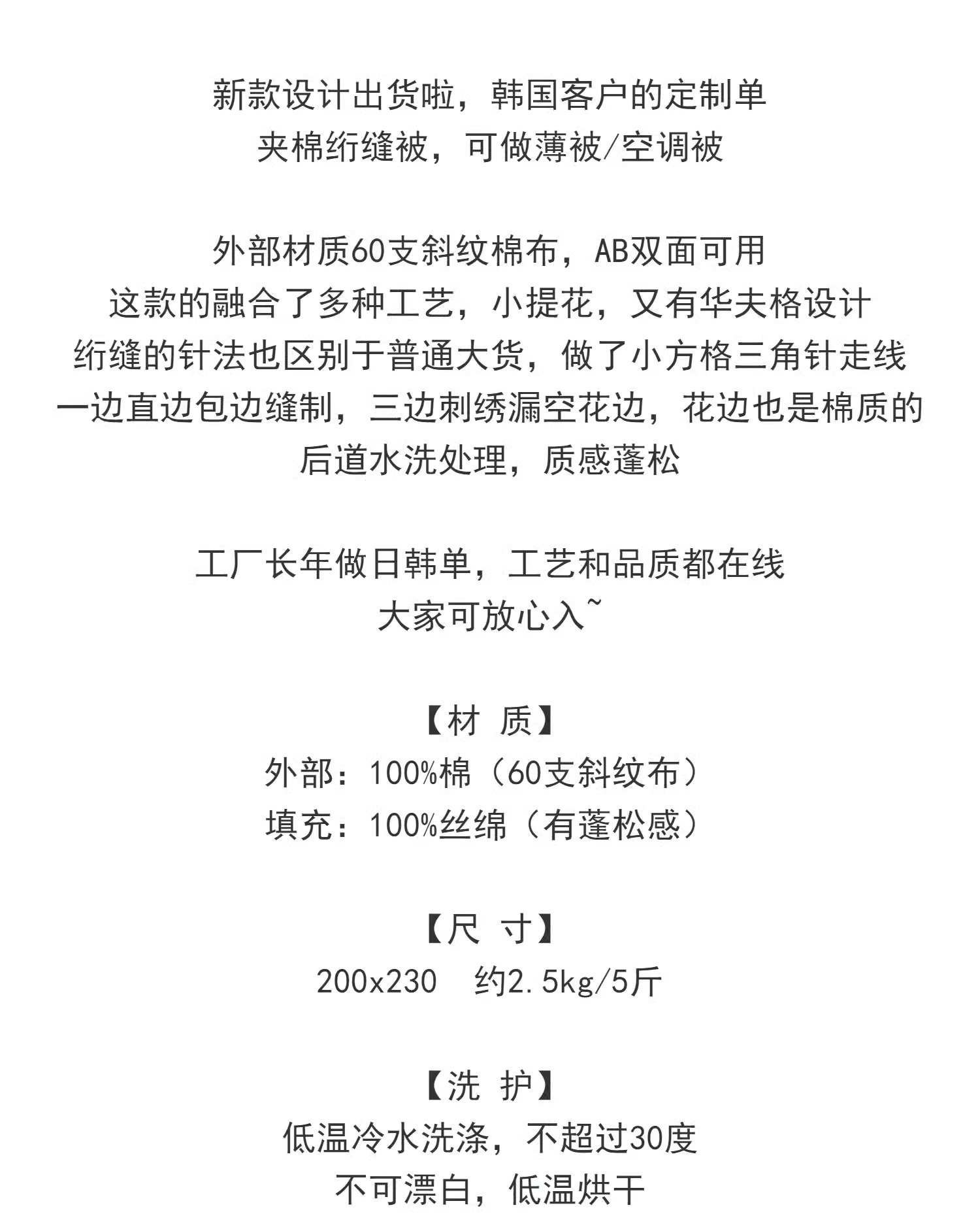 대외 무역 수출 한국 퀼트 얇은 이불 레이스 에어컨 여름 이불 면화 침대 커버 고급 공예 퀼트 제조 업체스토어 가기