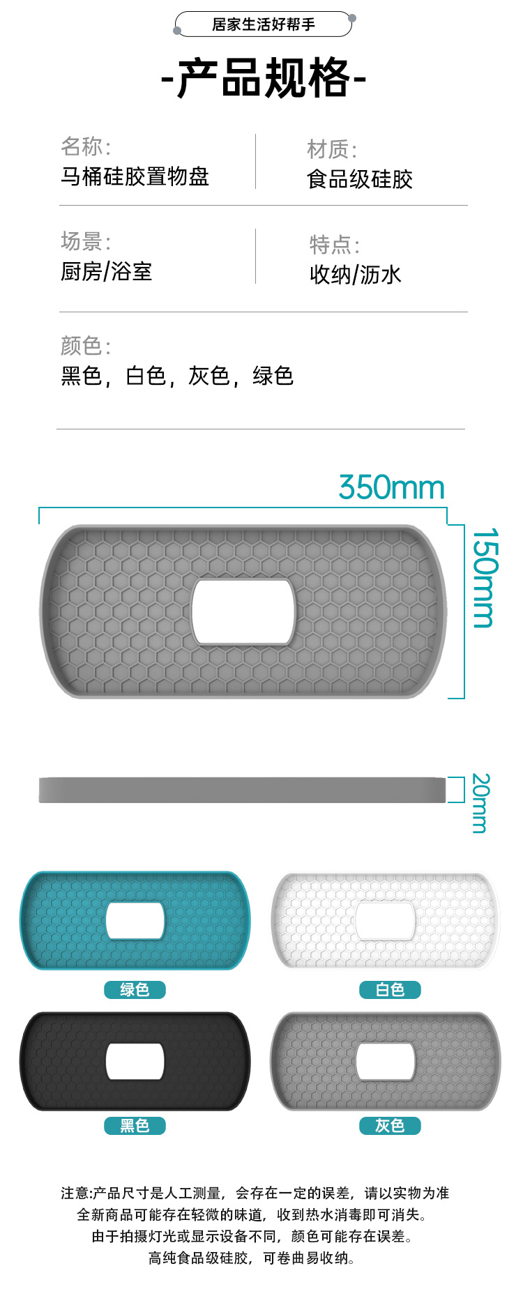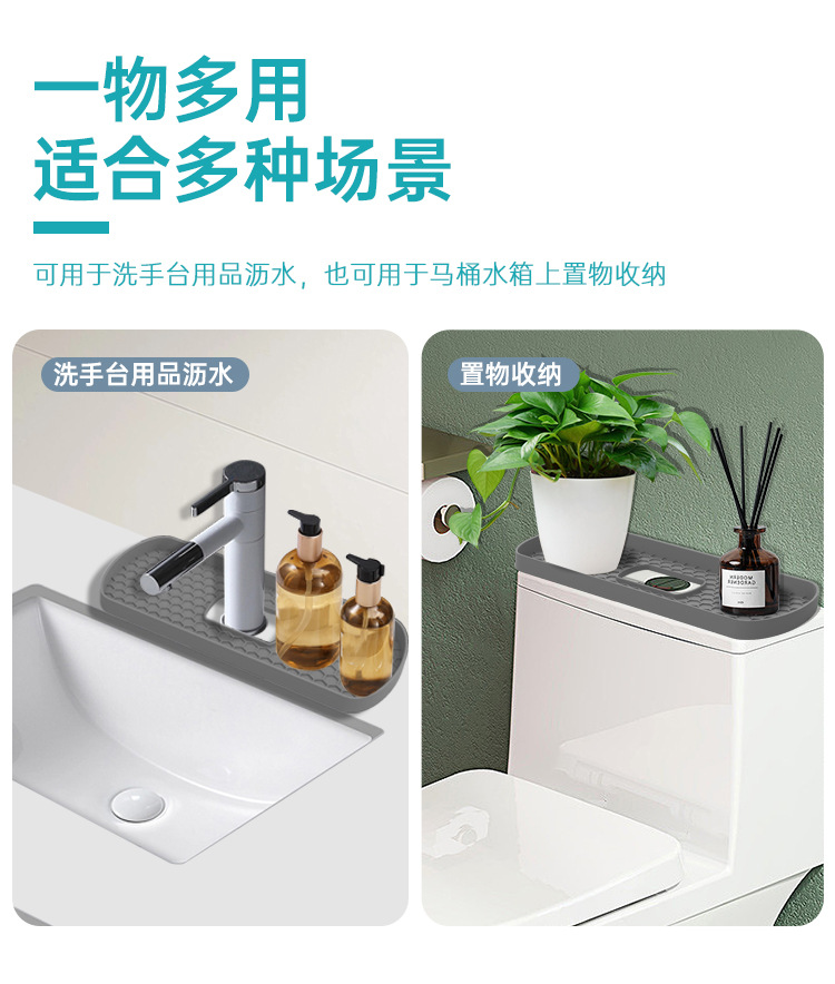 多功能硅胶收纳可用在马桶上置放纸巾,香薰等其他物品,亦可套在水龙上当沥水托盘使用