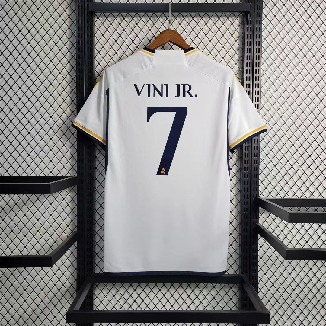 도매 23-24 레알 마드리드 저지 No. 5 벨링엄 No. 7 Vinicus 성인 어린이 축구 유니폼 세트스토어 가기