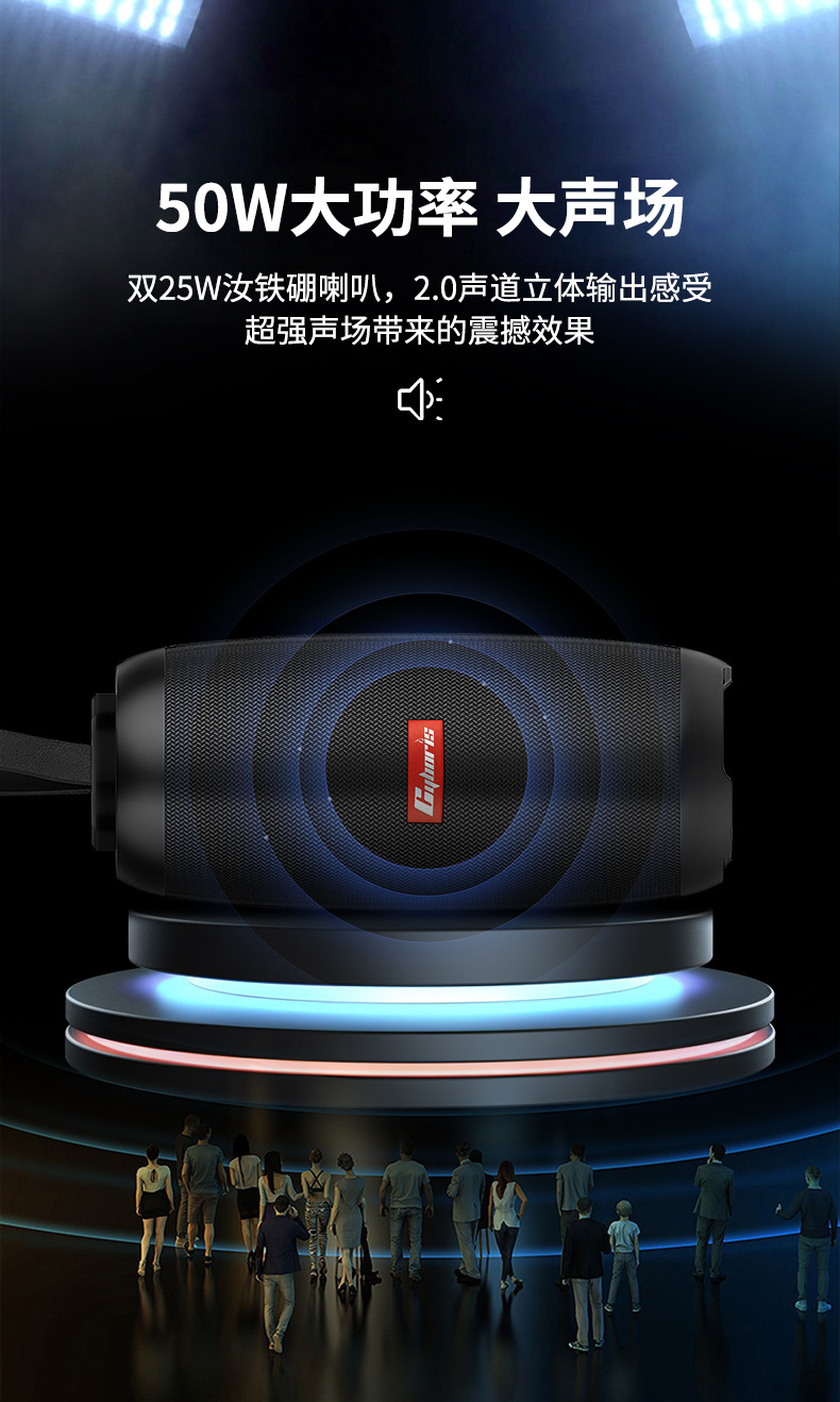 사이보리스 신카드 야외 사이클링 등산 50W 오디오 고출력 무선 서라운드 휴대용 서브우퍼