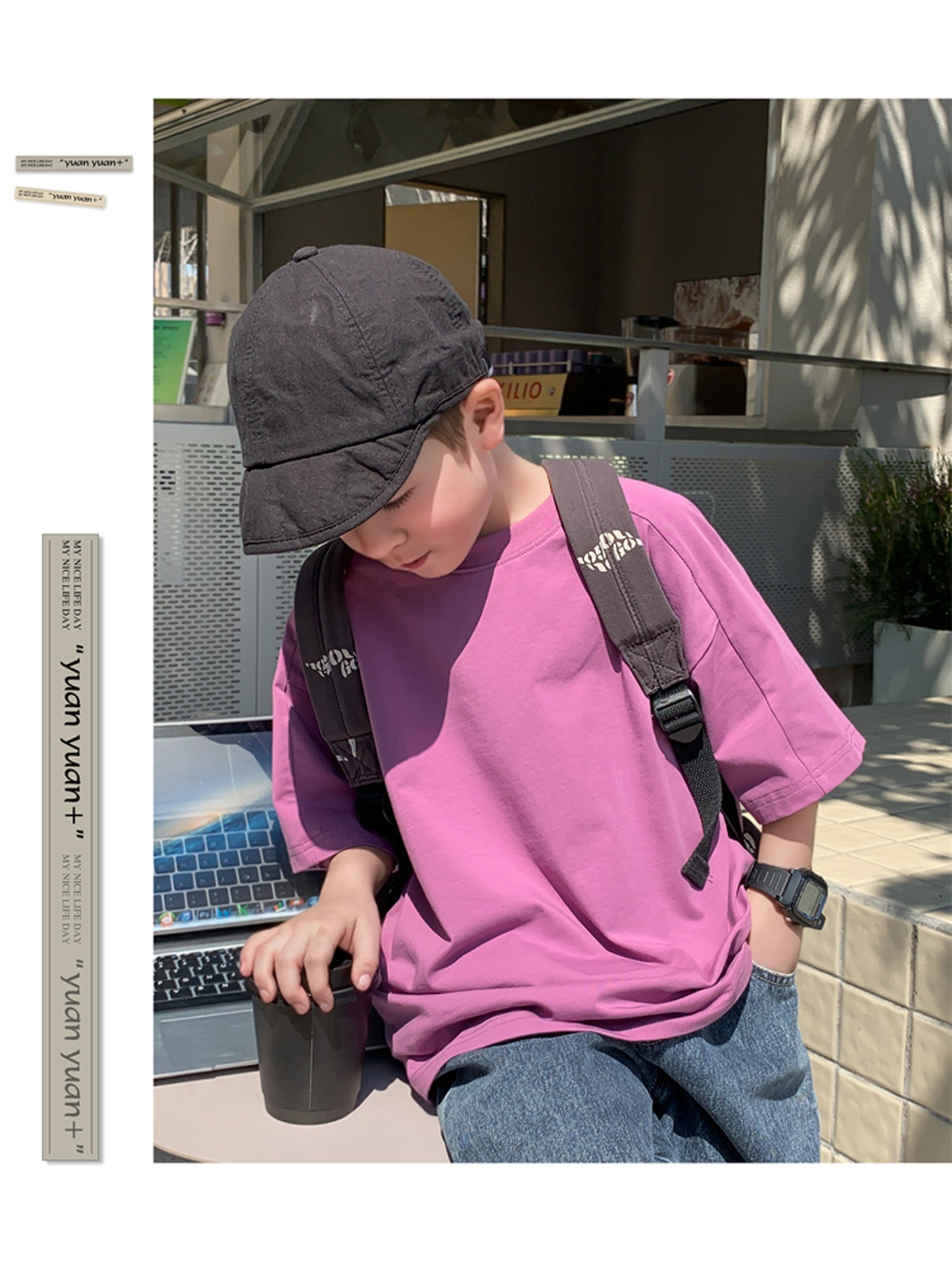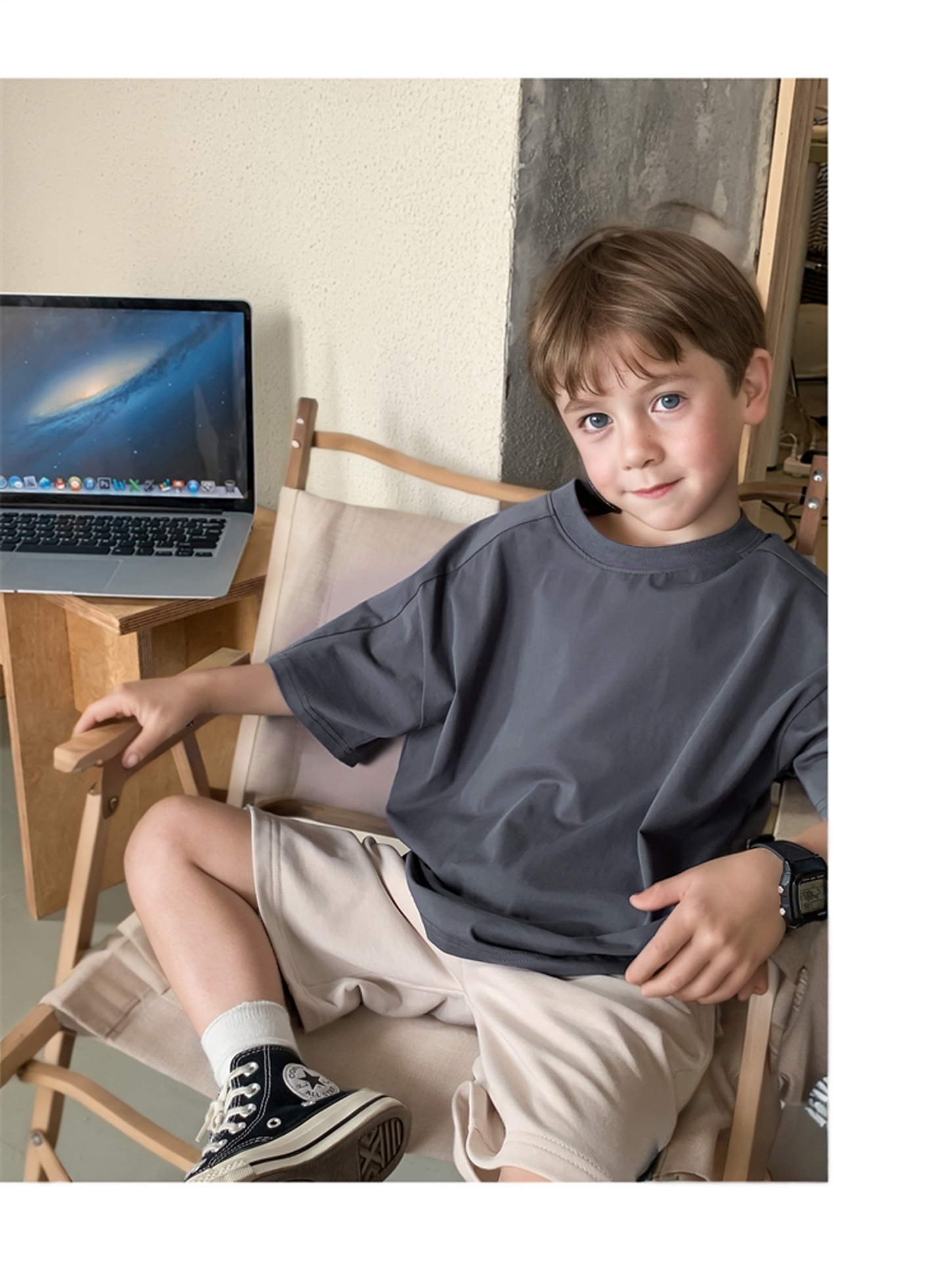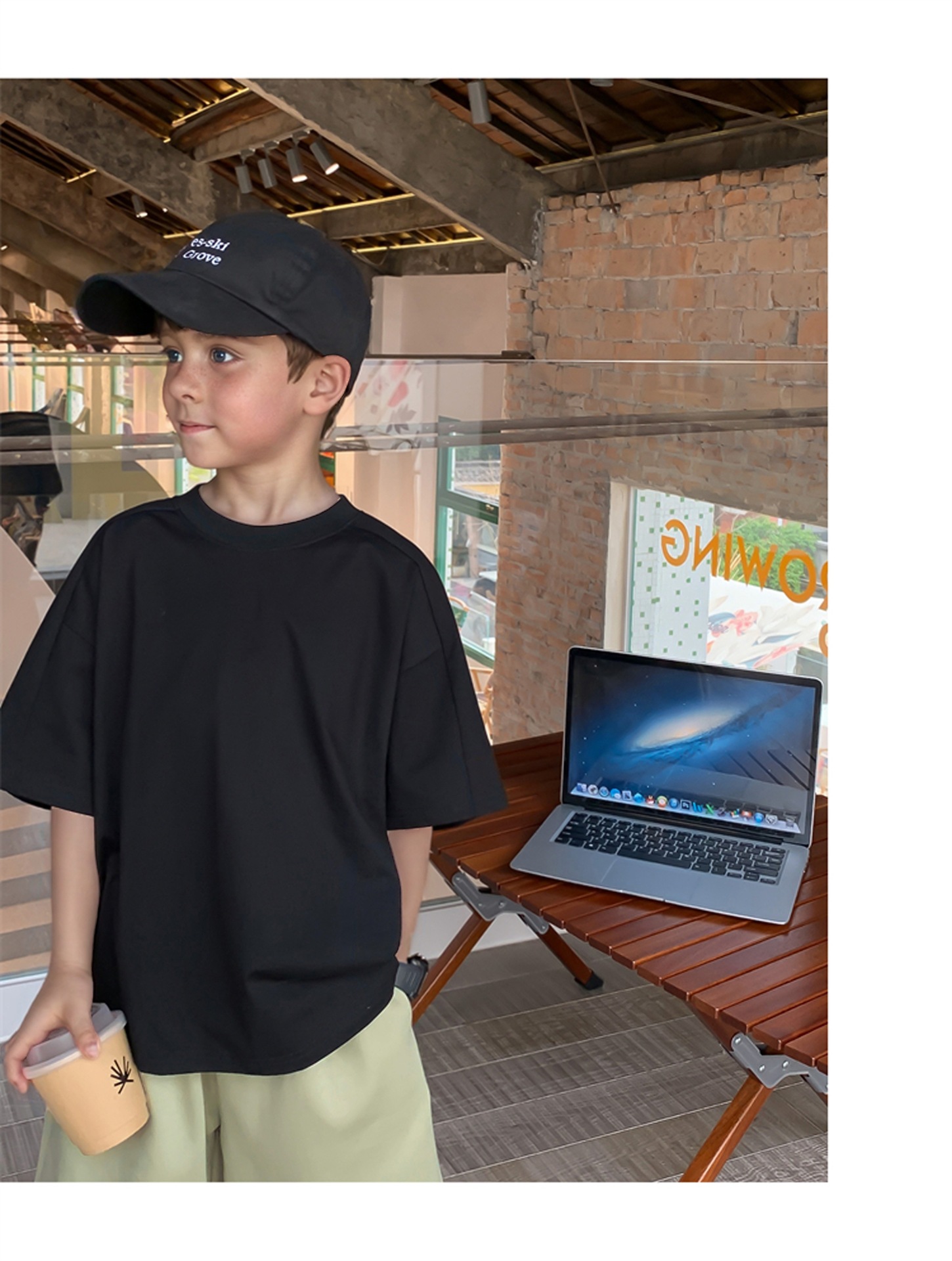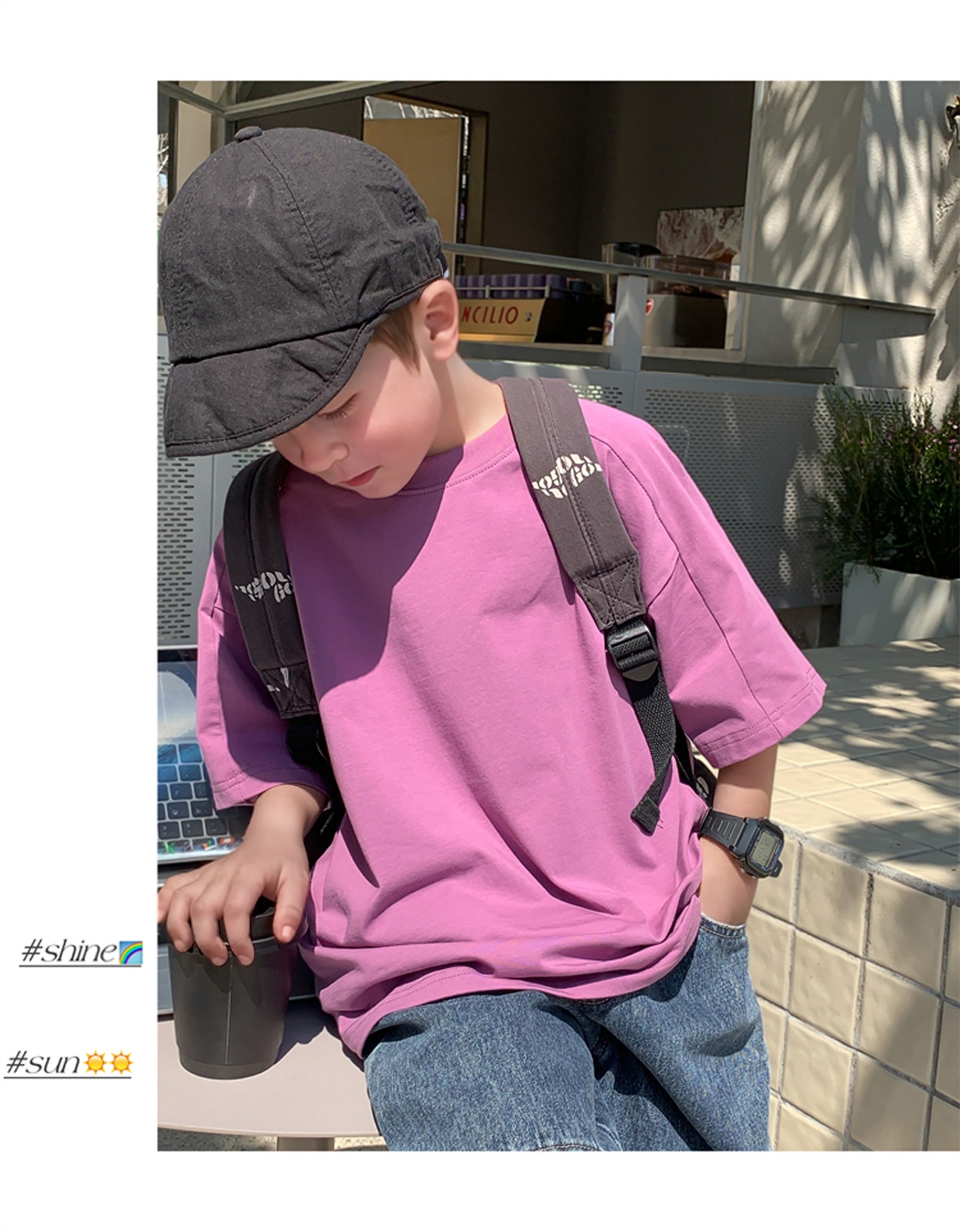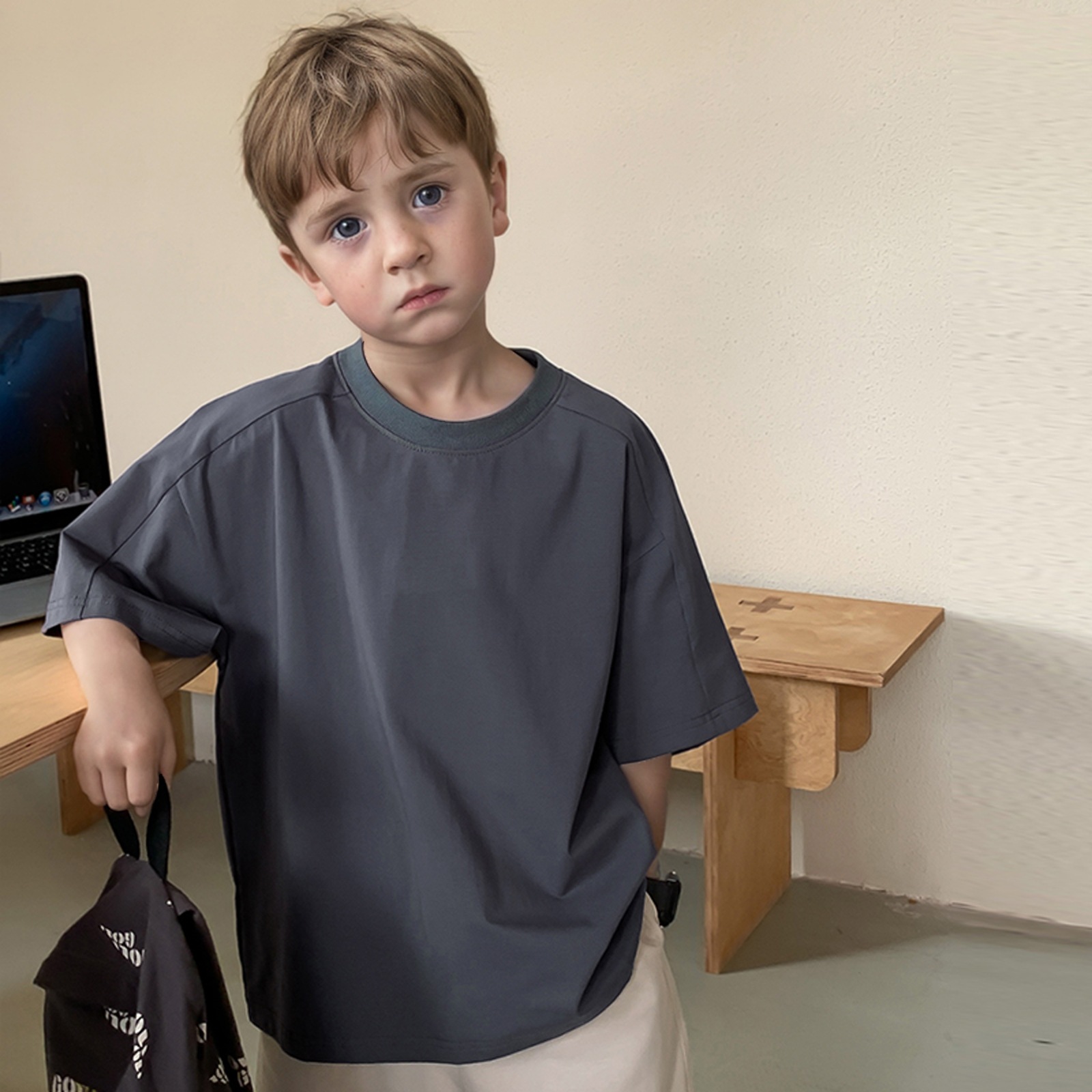 남아 큰 어린이 단색 하이 퀄리티 라운드 넥 반팔 티셔츠 여름 반팔 루즈한 순면 베이직 티셔츠 스포츠 트렌디스토어 가기