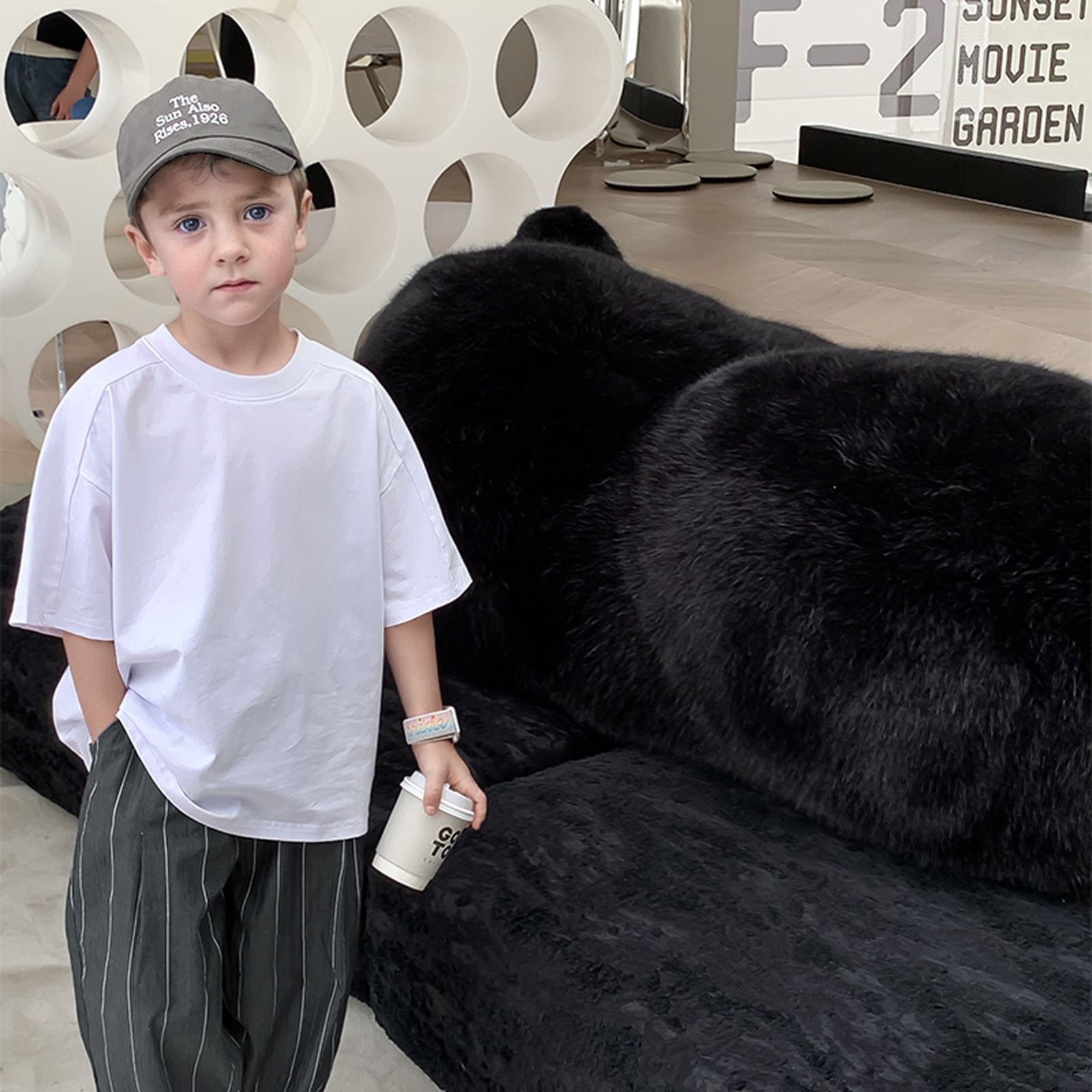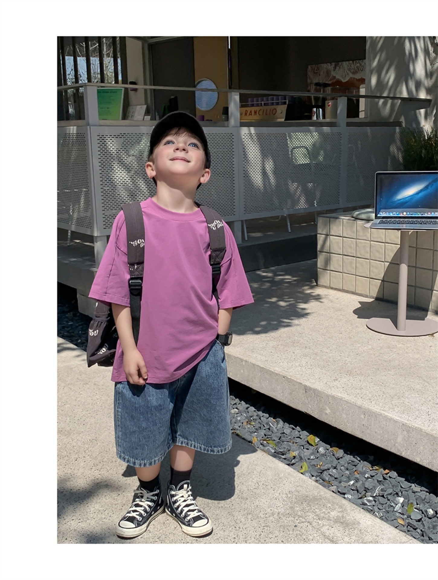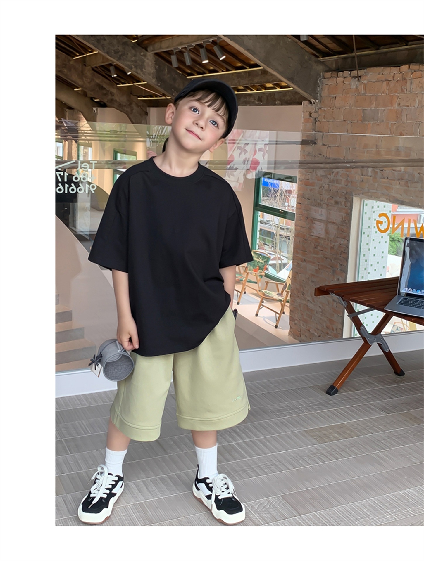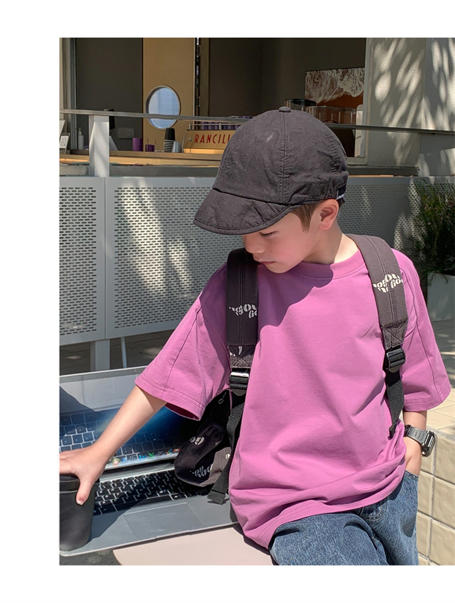 남아 큰 어린이 단색 하이 퀄리티 라운드 넥 반팔 티셔츠 여름 반팔 루즈한 순면 베이직 티셔츠 스포츠 트렌디스토어 가기