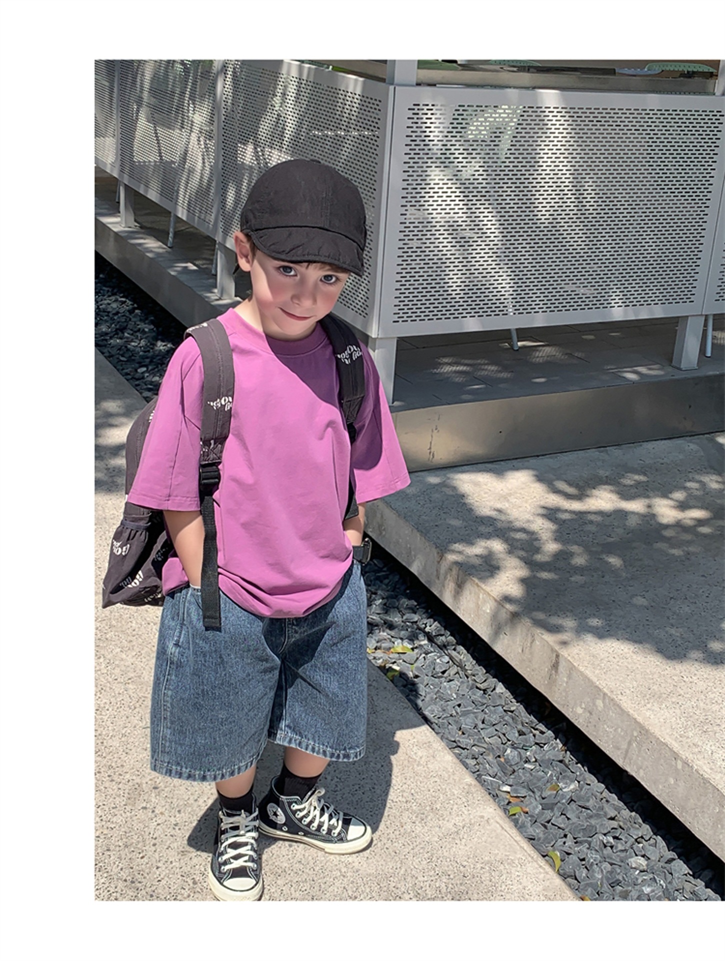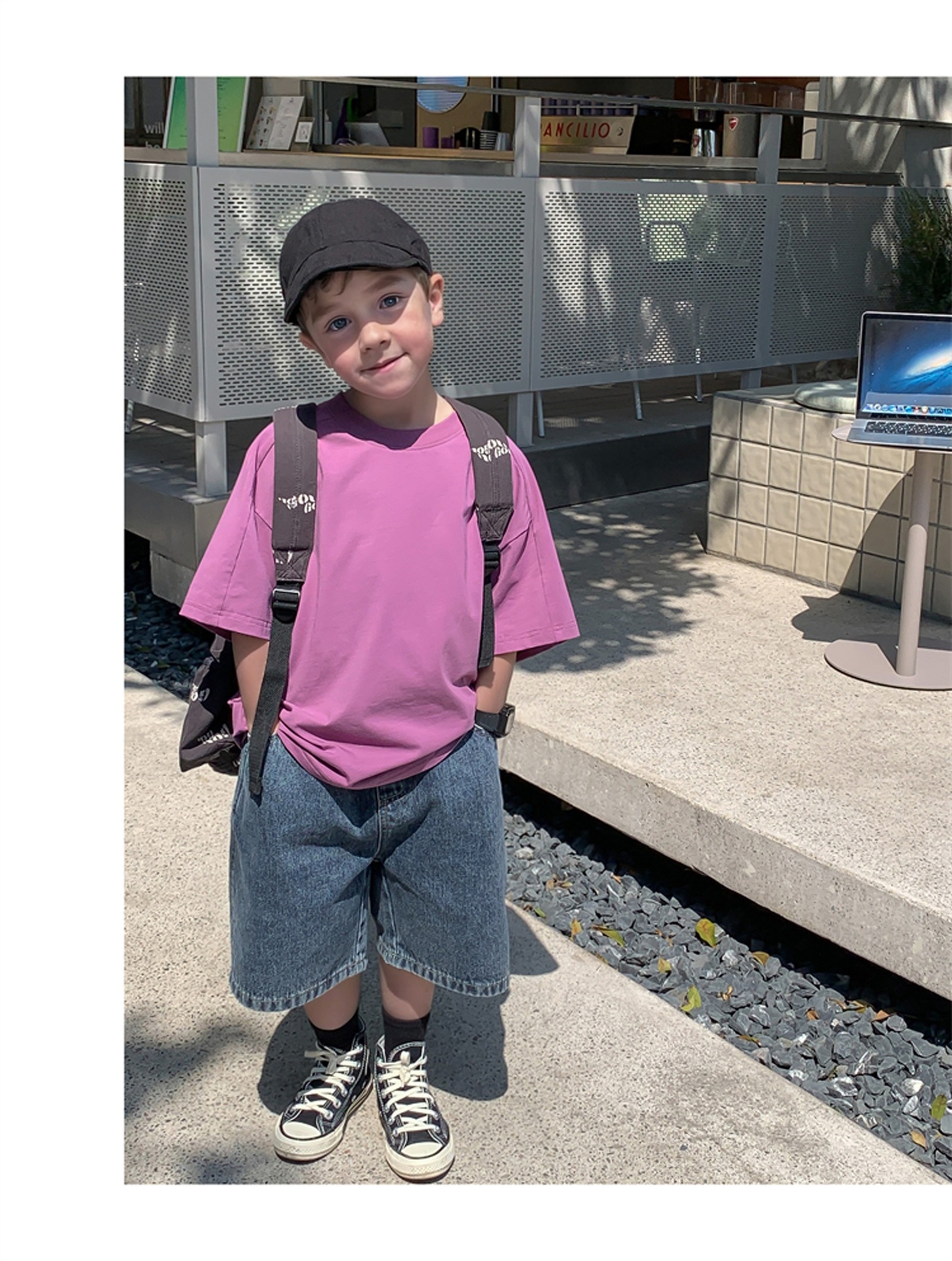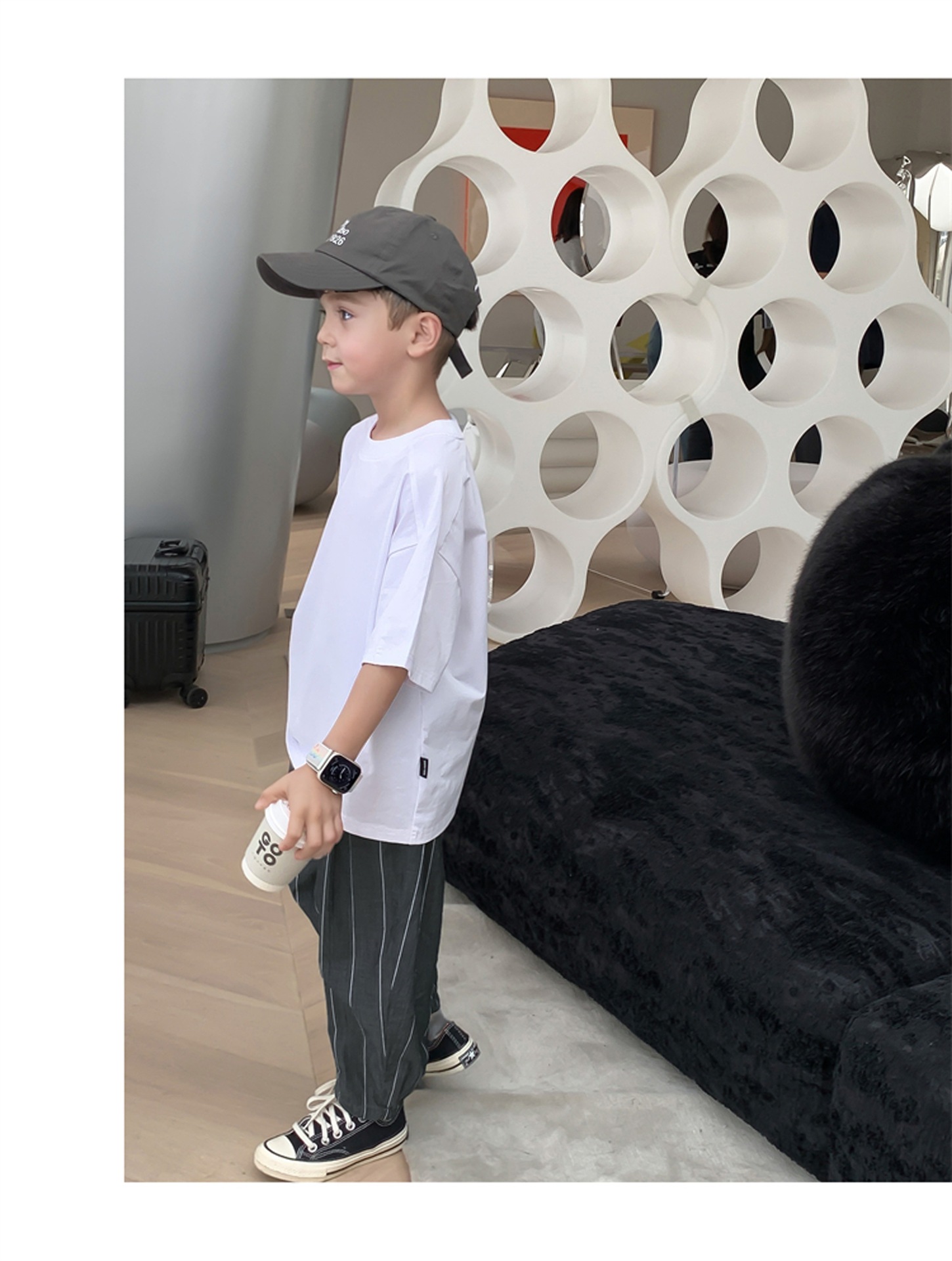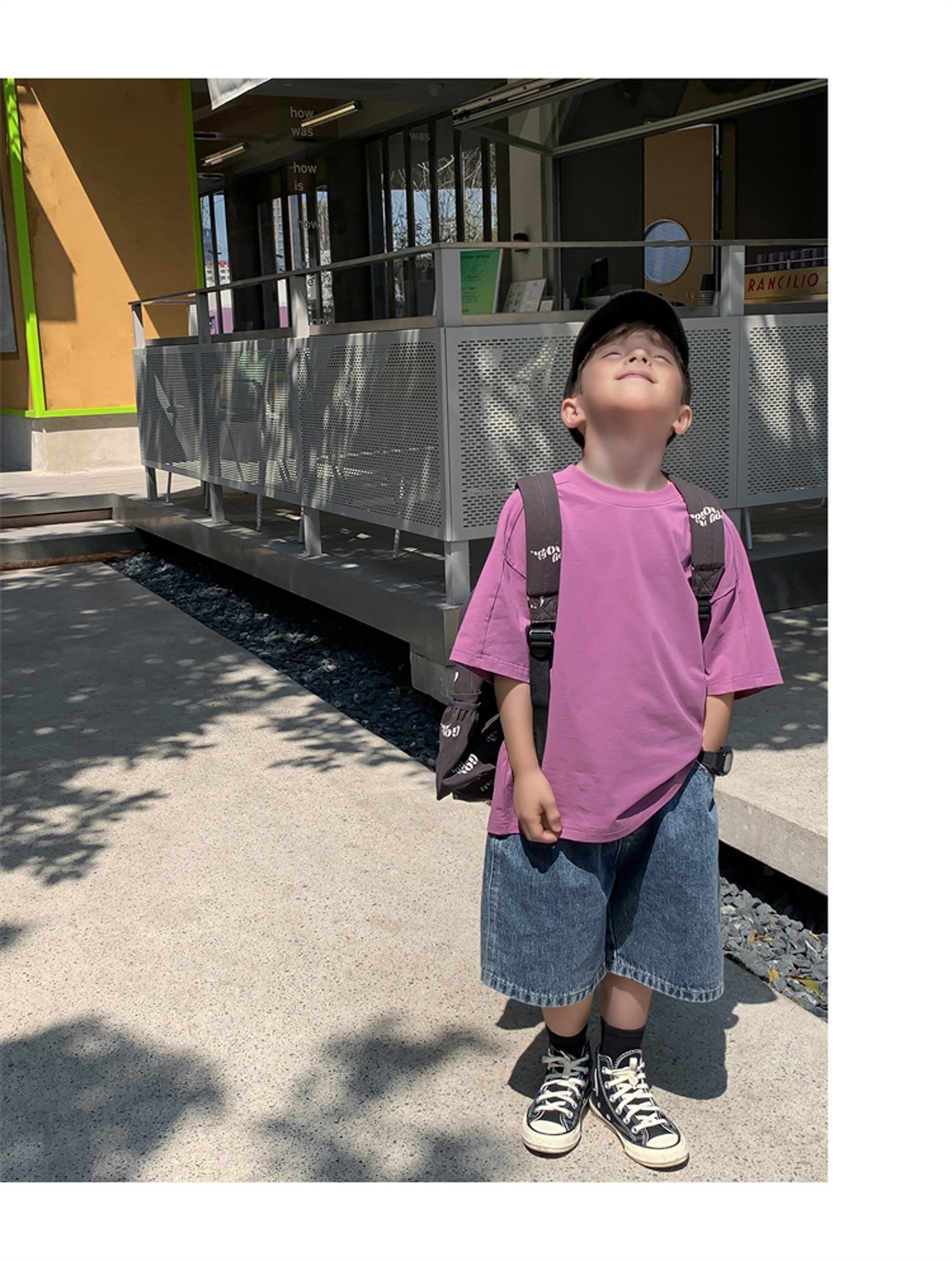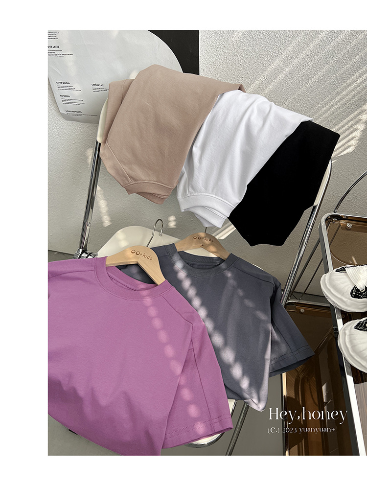 남아 큰 어린이 단색 하이 퀄리티 라운드 넥 반팔 티셔츠 여름 반팔 루즈한 순면 베이직 티셔츠 스포츠 트렌디스토어 가기