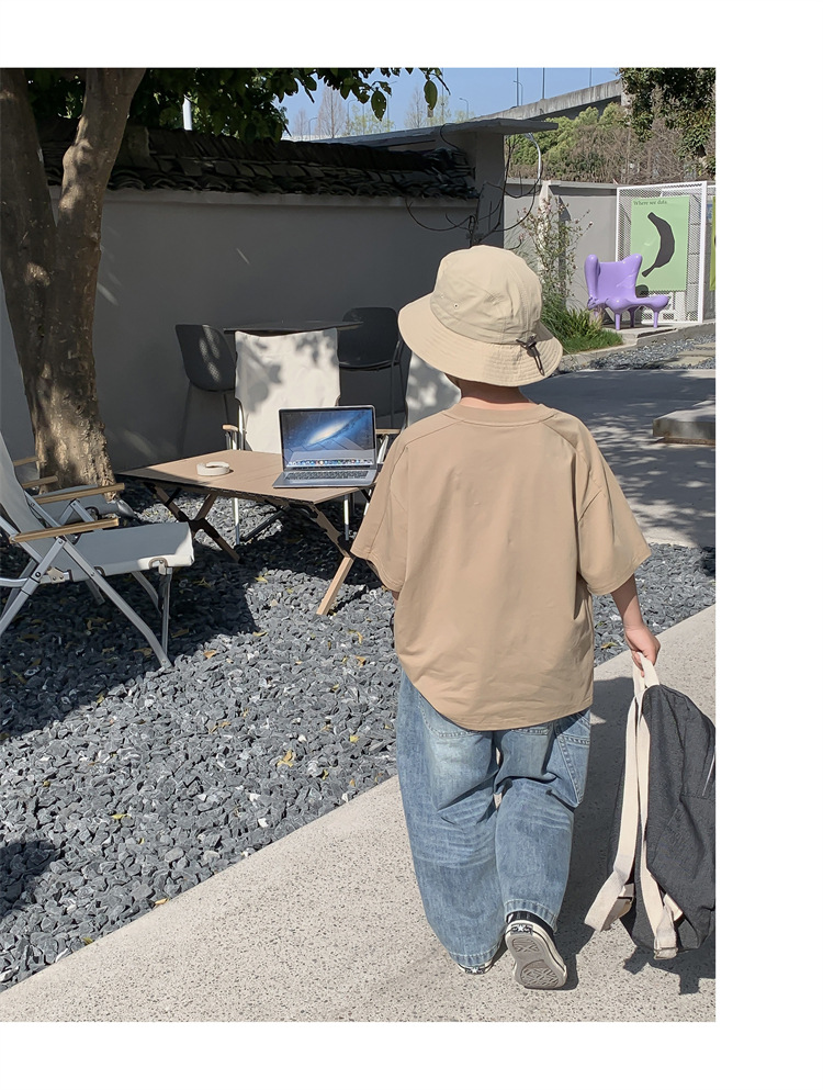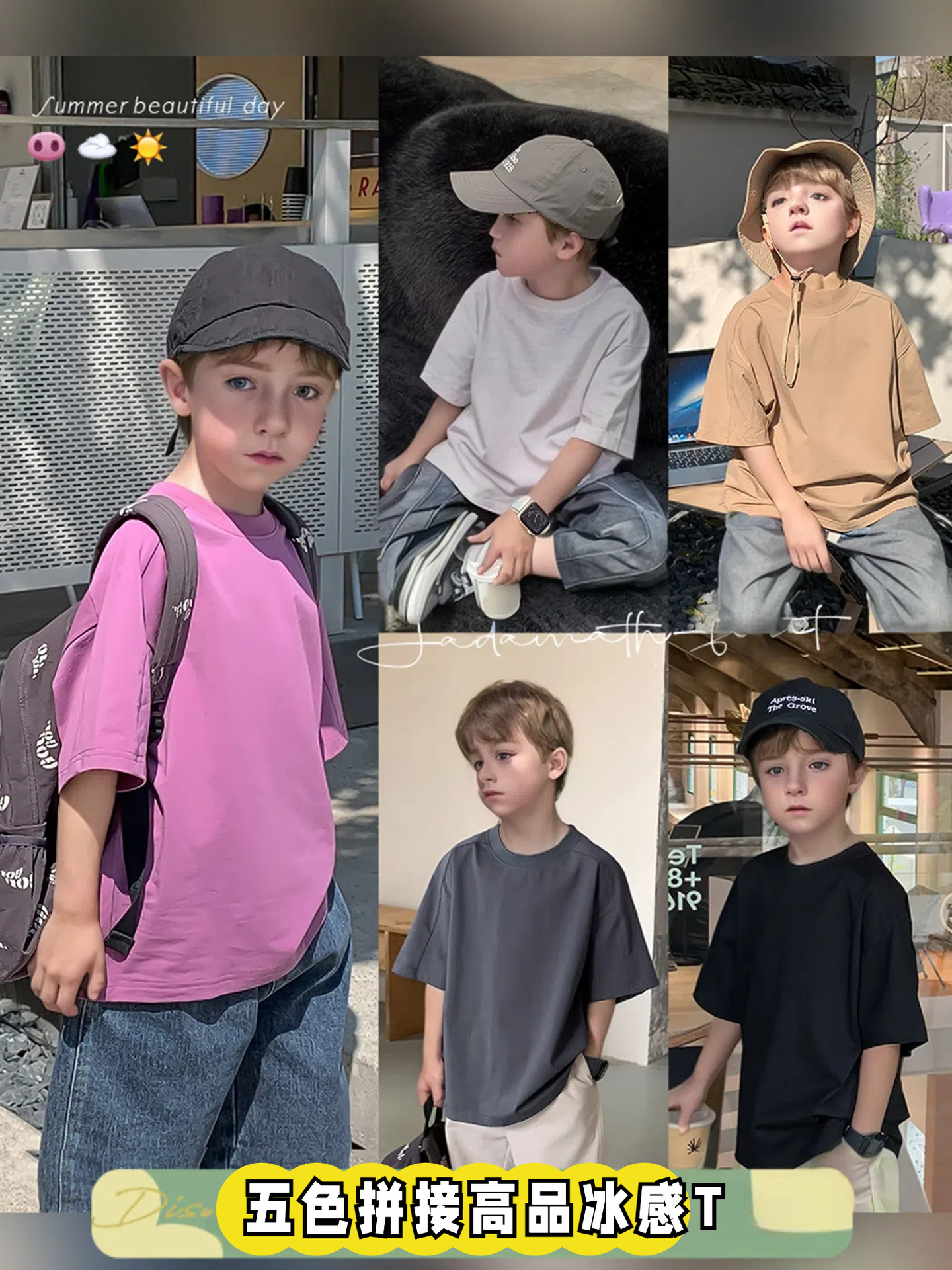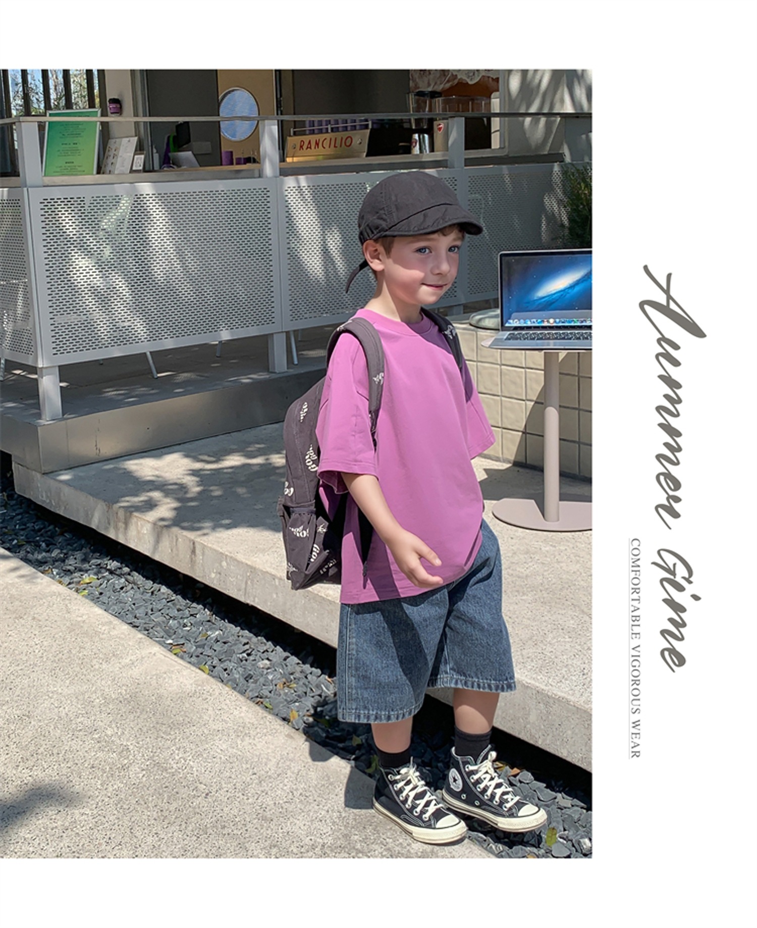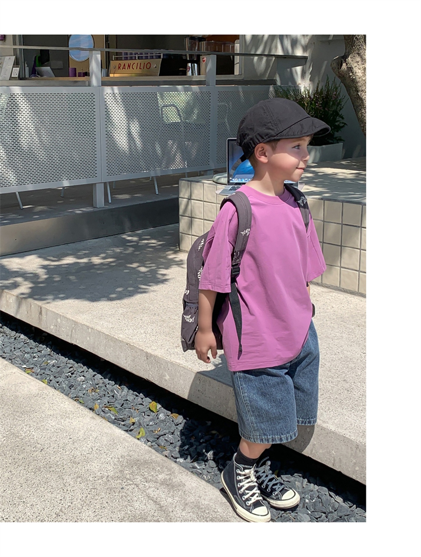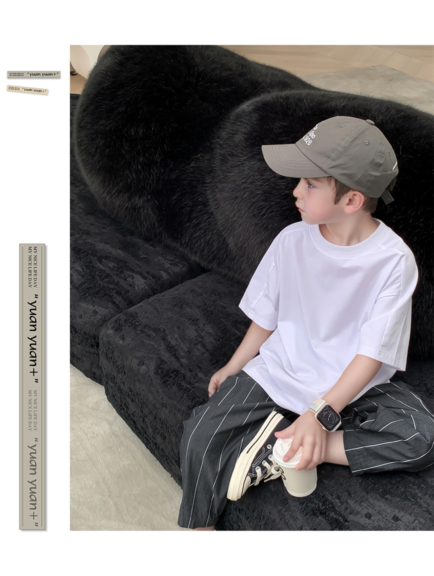 남아 큰 어린이 단색 하이 퀄리티 라운드 넥 반팔 티셔츠 여름 반팔 루즈한 순면 베이직 티셔츠 스포츠 트렌디스토어 가기