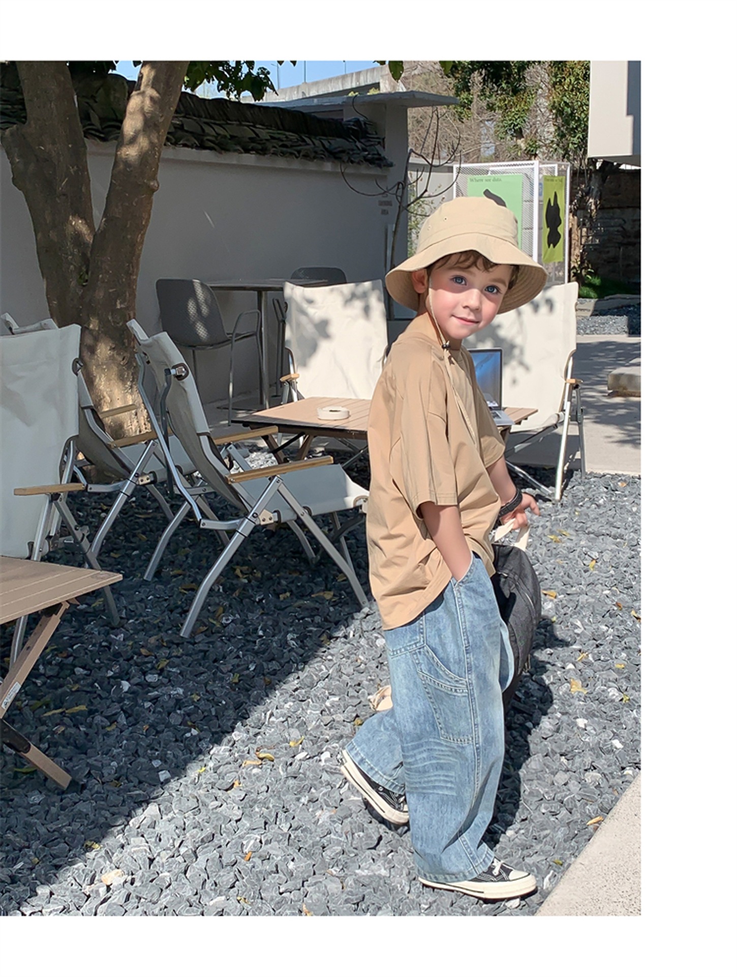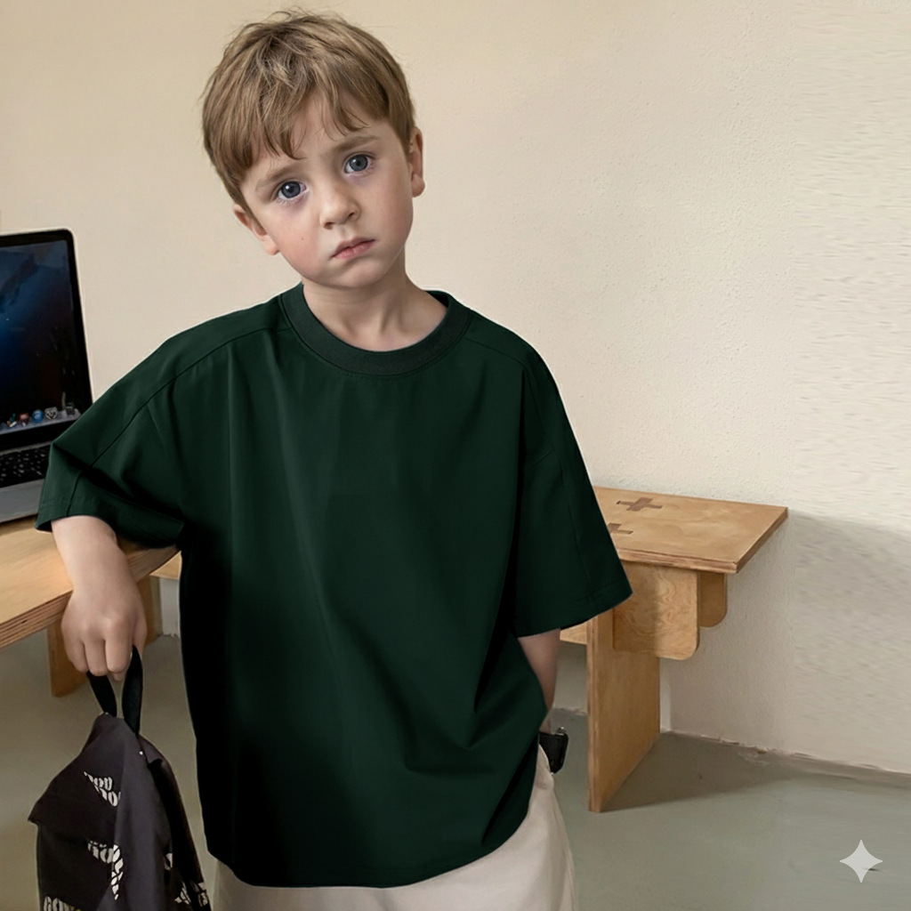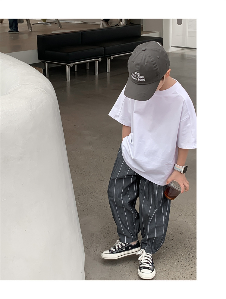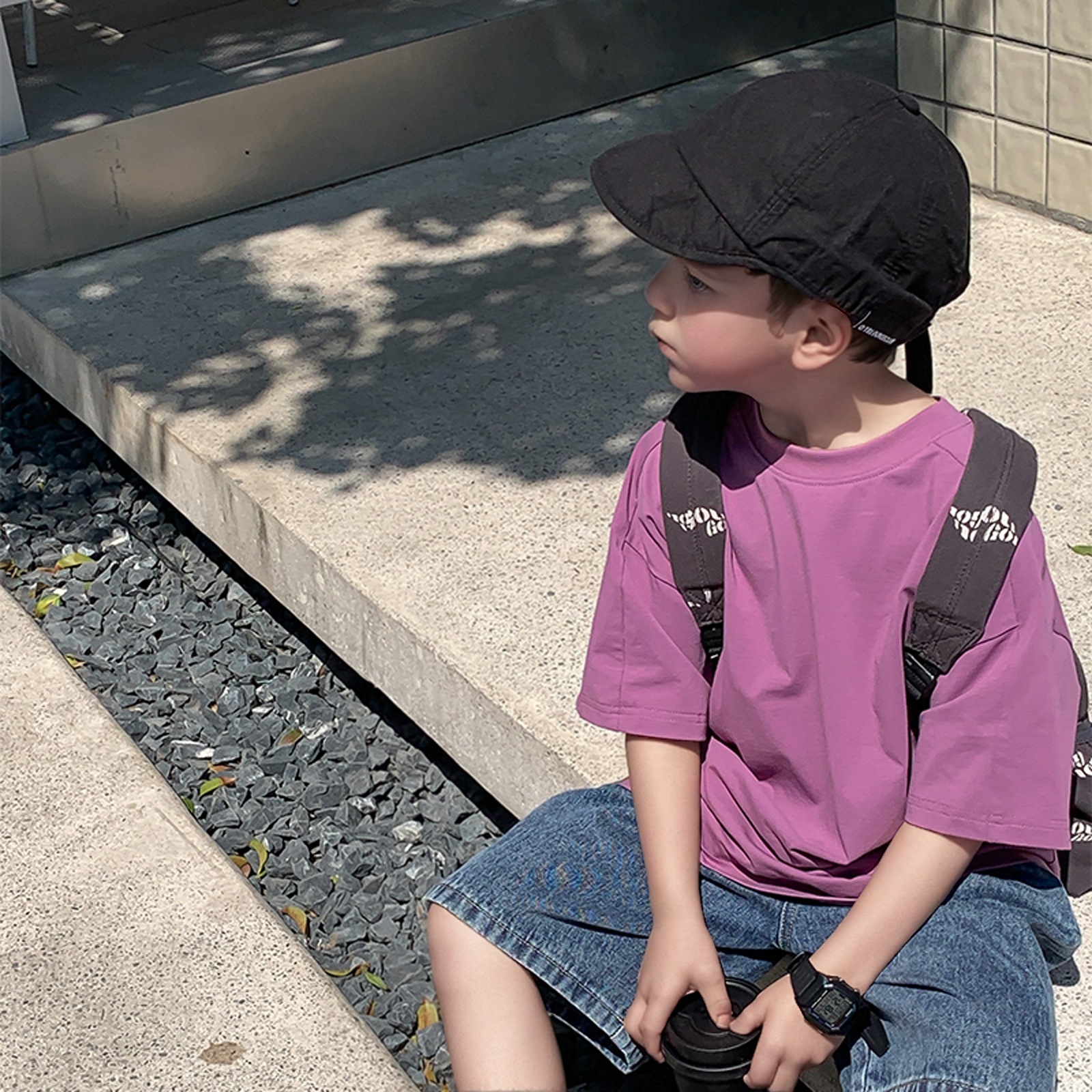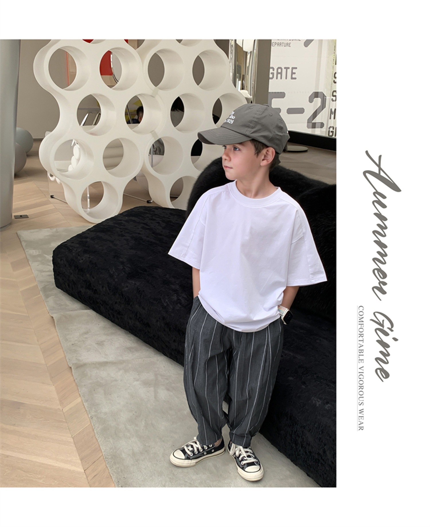 남아 큰 어린이 단색 하이 퀄리티 라운드 넥 반팔 티셔츠 여름 반팔 루즈한 순면 베이직 티셔츠 스포츠 트렌디스토어 가기