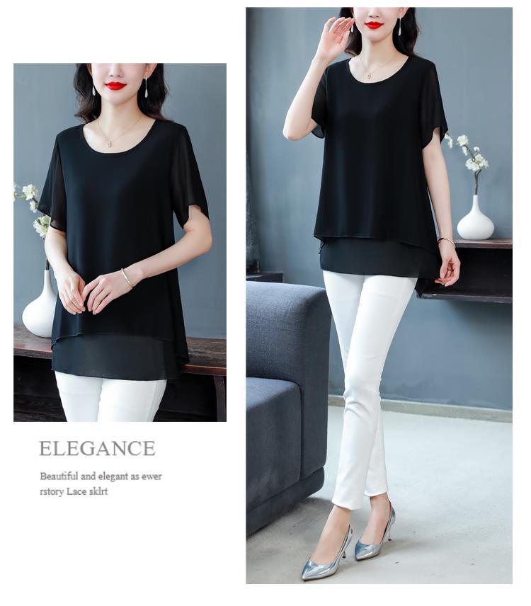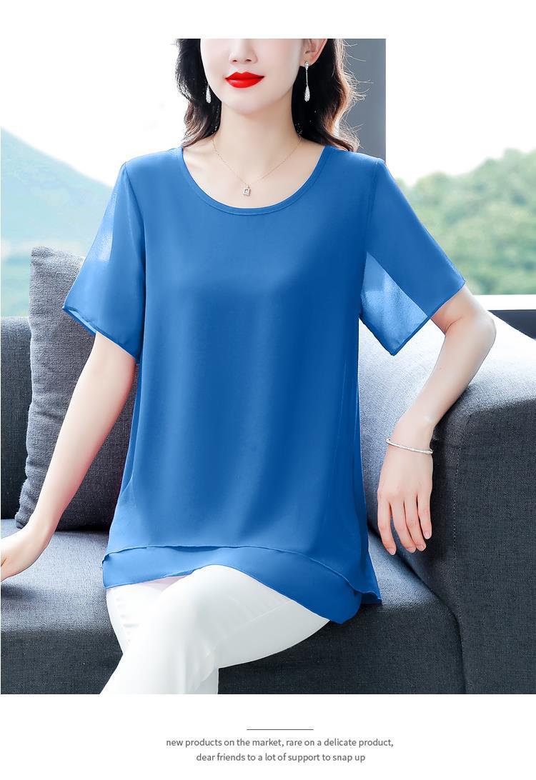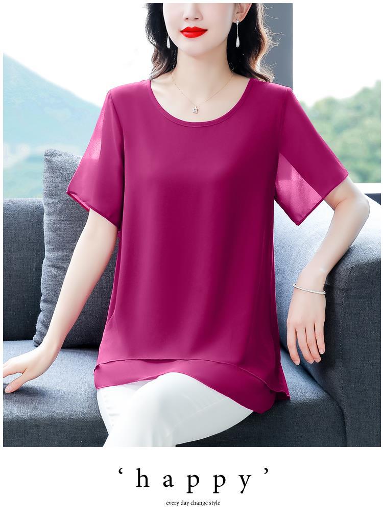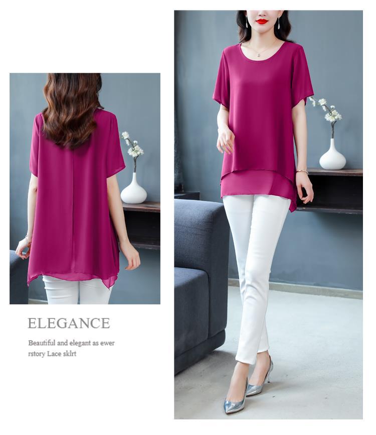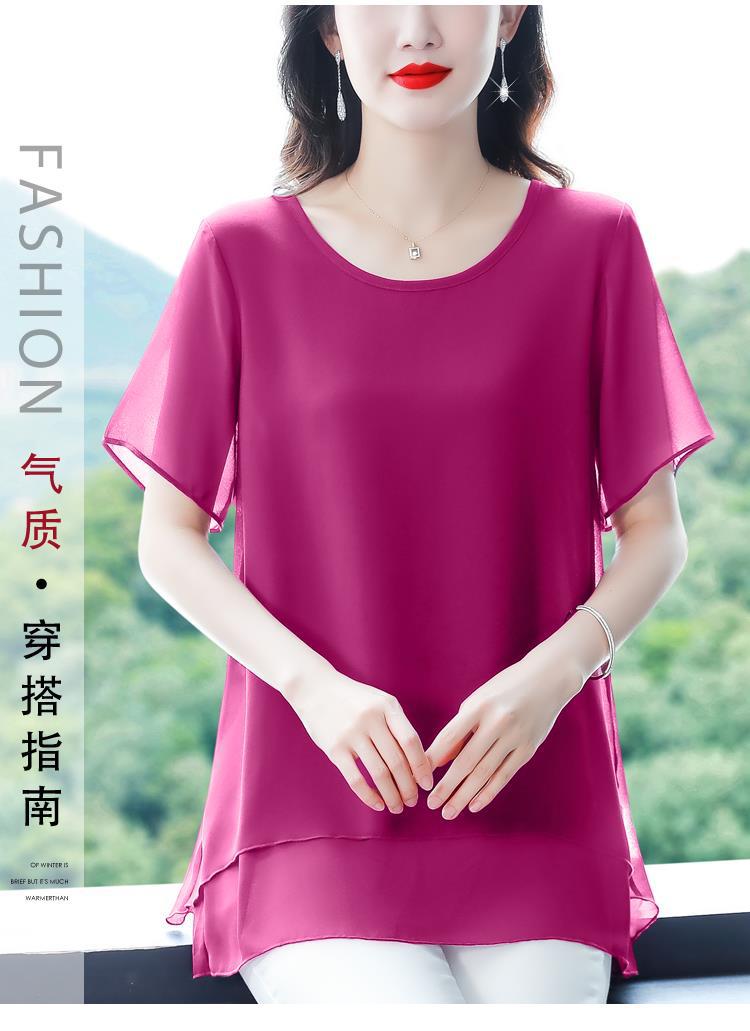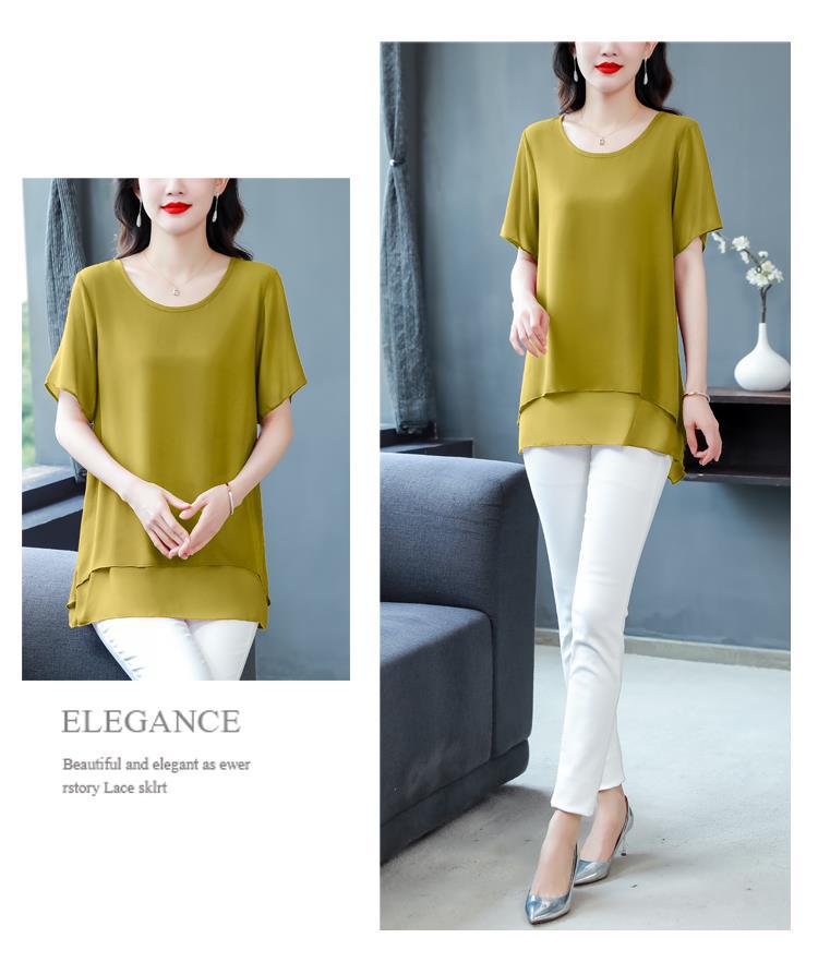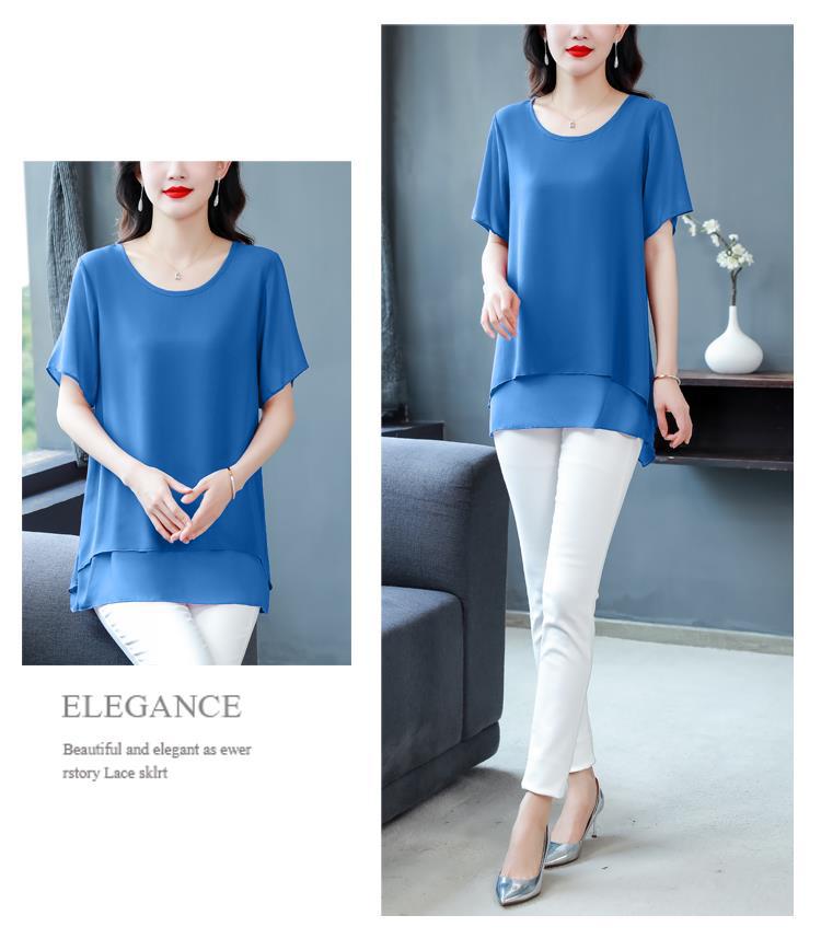 통통녀 배꼽 덮기 쉬폰 셔츠 여성의 중간 길이 여름 플러스 사이즈 서양 스타일 작은 셔츠 중년 어머니 느슨한 슬리밍 탑