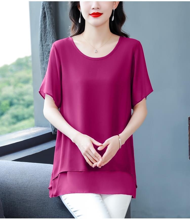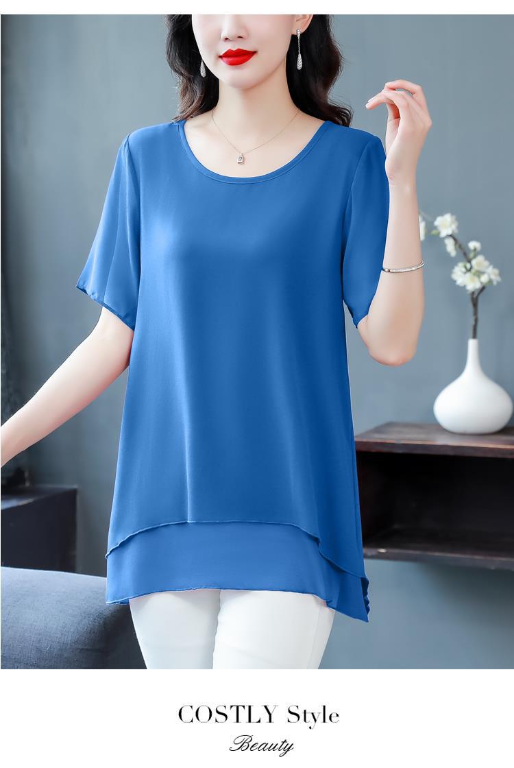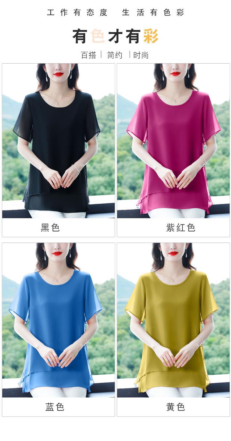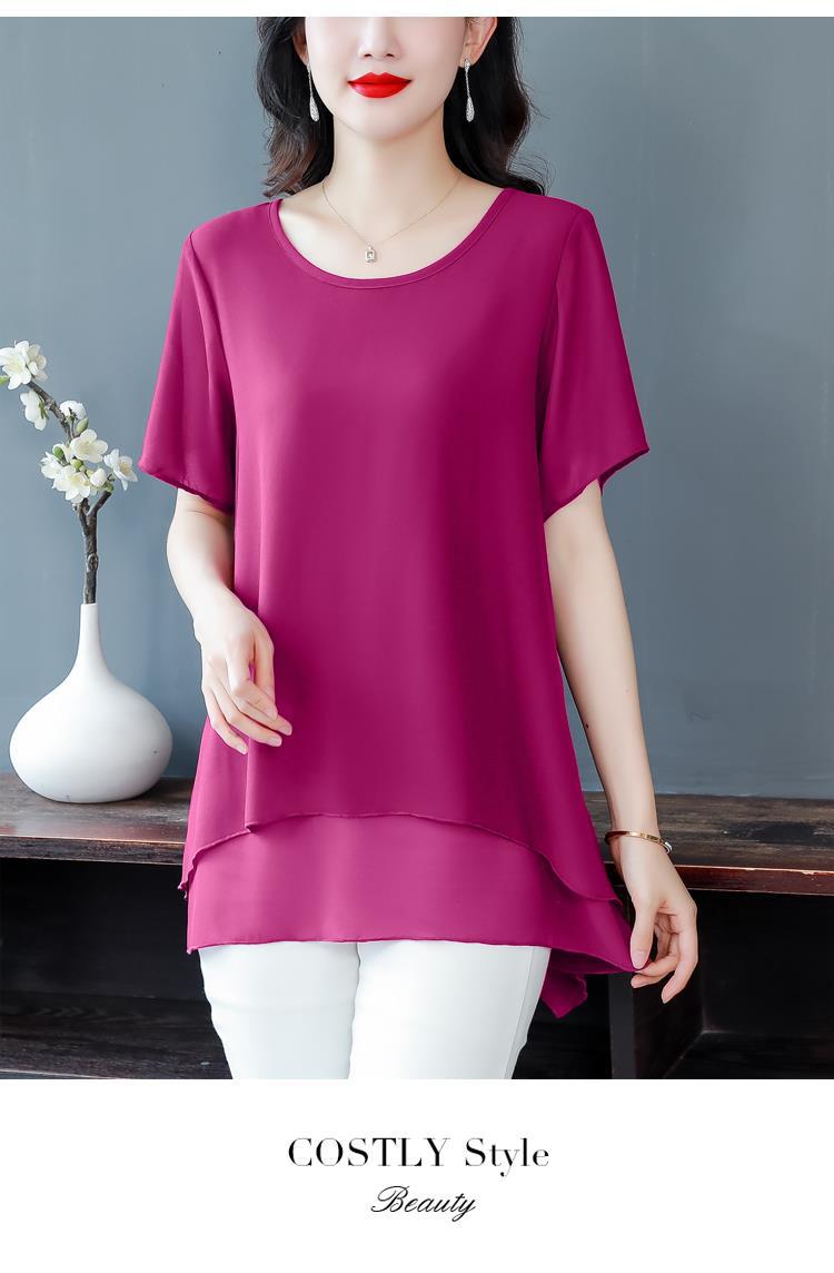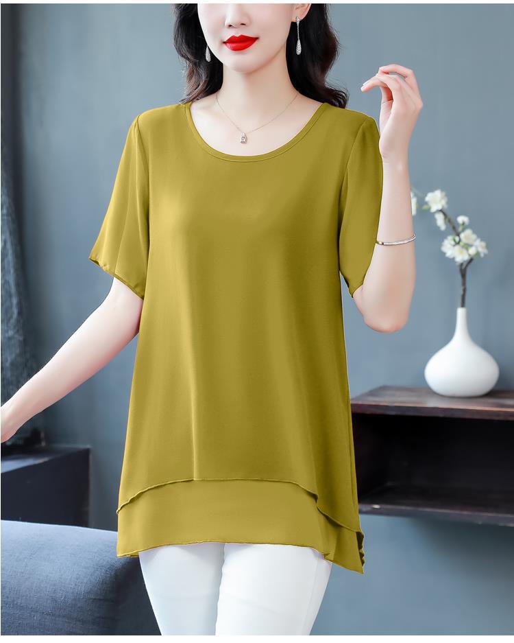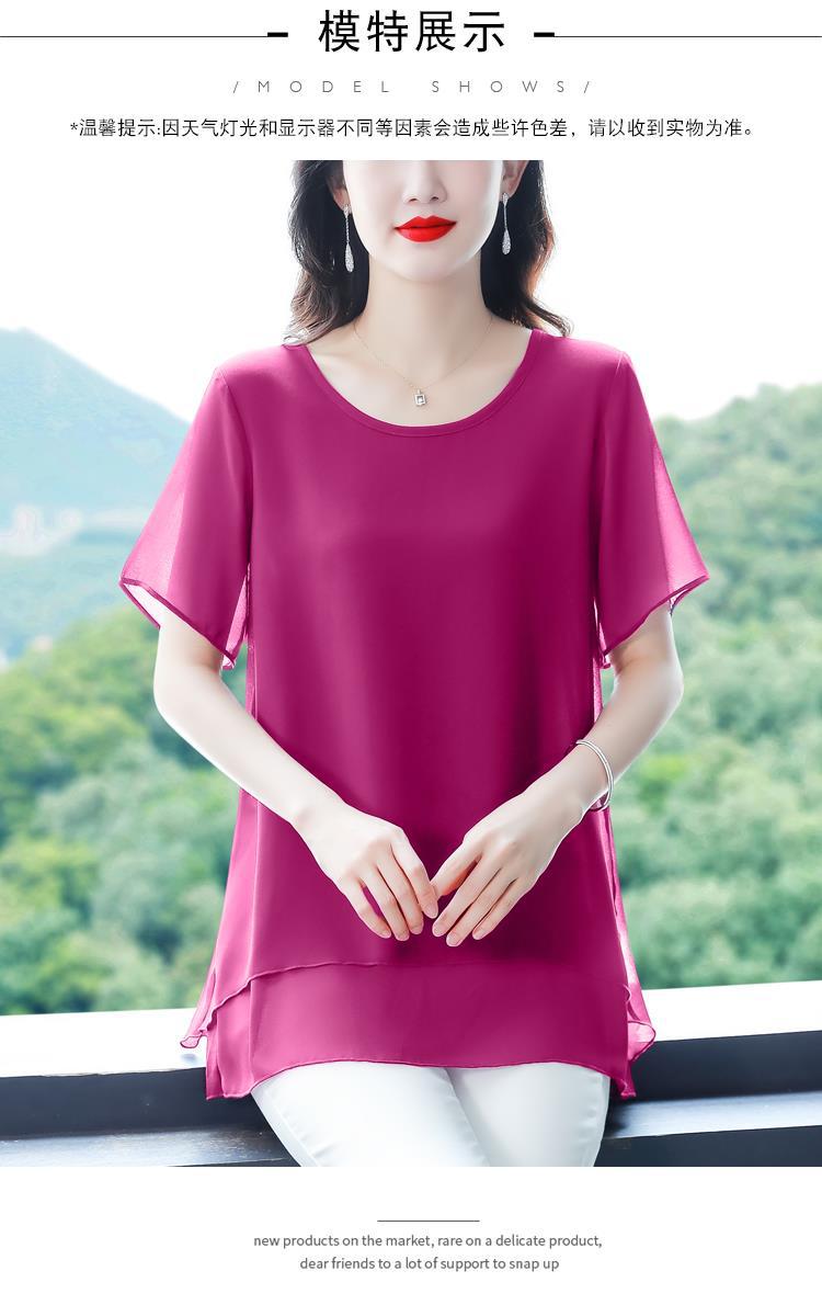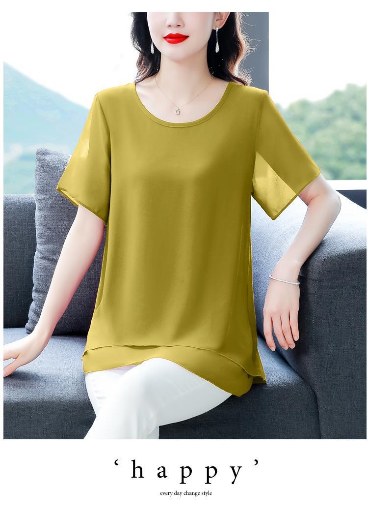 통통녀 배꼽 덮기 쉬폰 셔츠 여성의 중간 길이 여름 플러스 사이즈 서양 스타일 작은 셔츠 중년 어머니 느슨한 슬리밍 탑