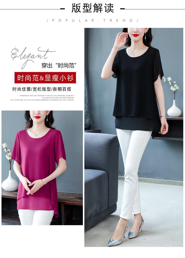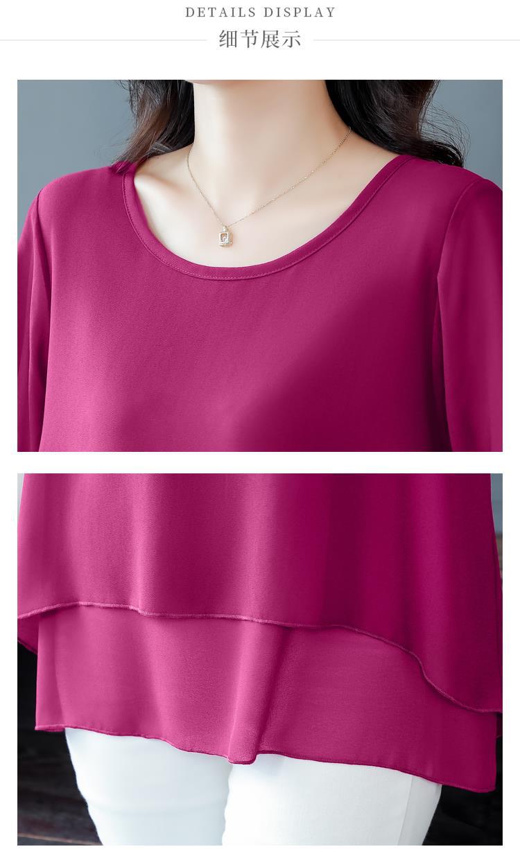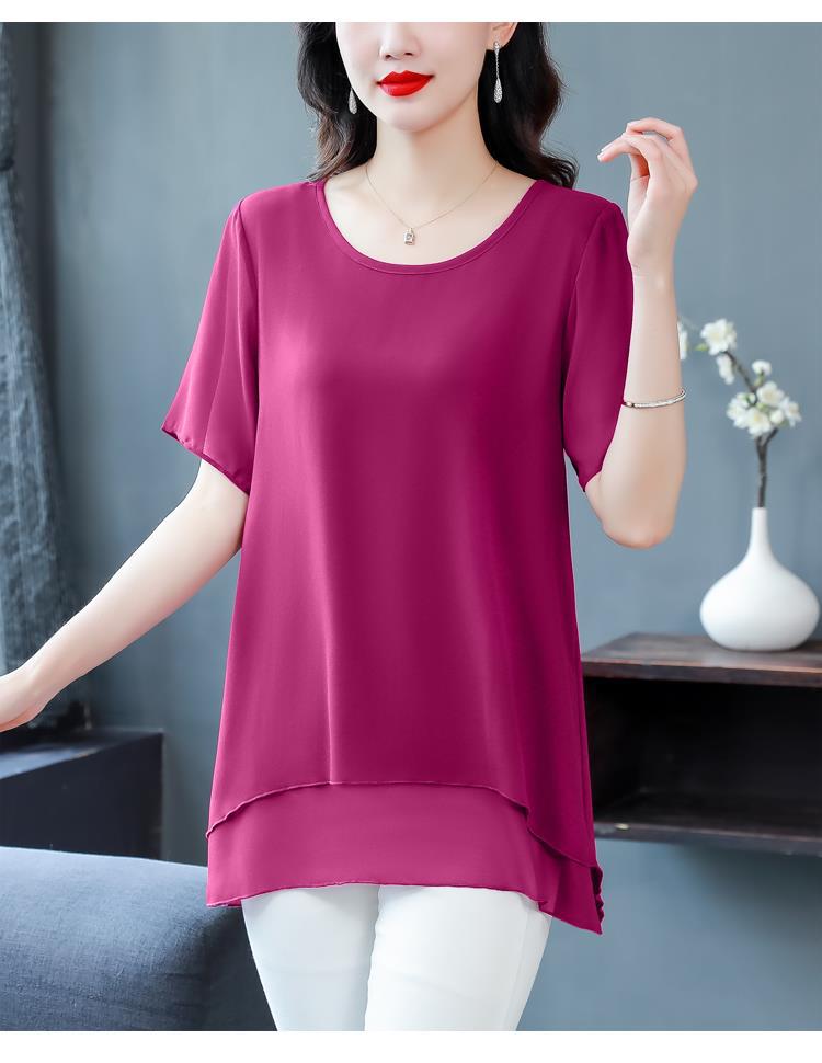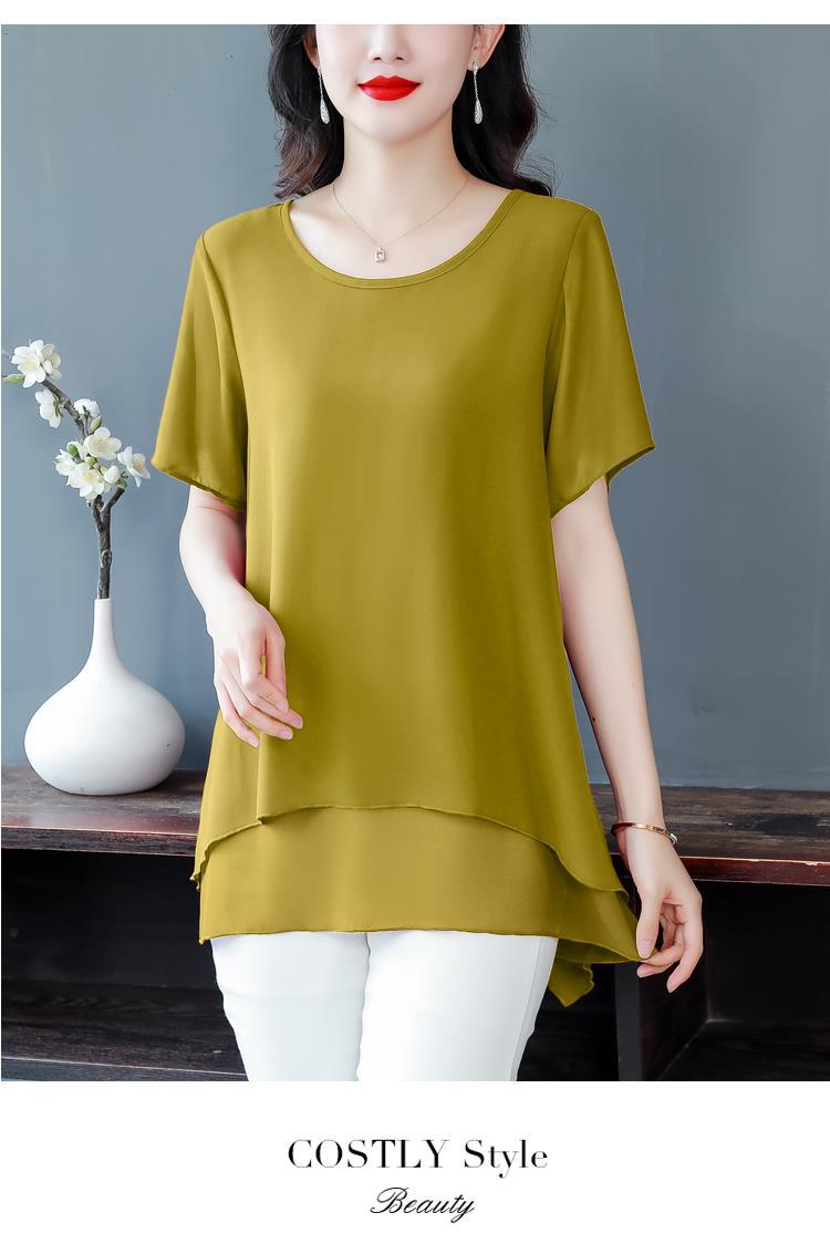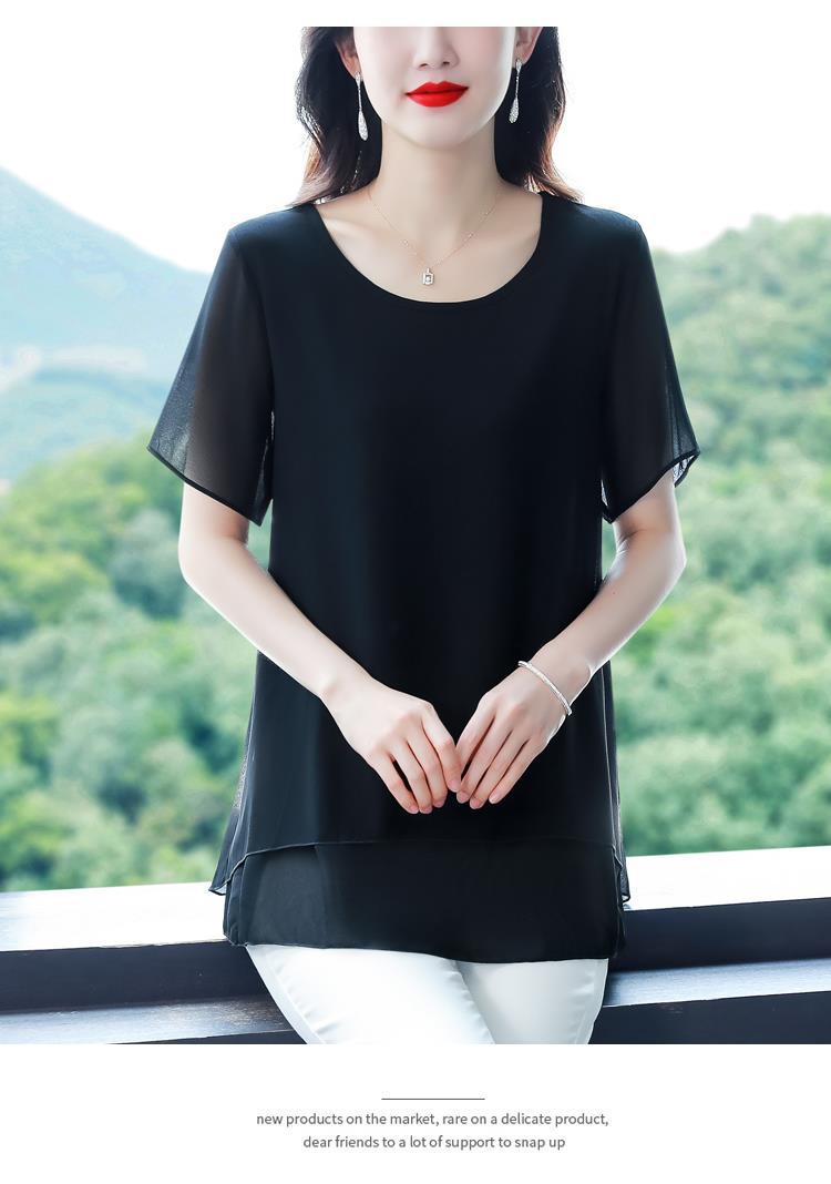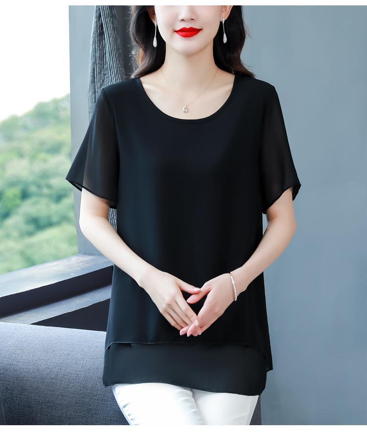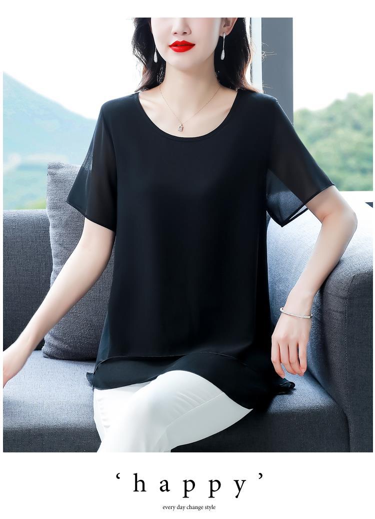통통녀 배꼽 덮기 쉬폰 셔츠 여성의 중간 길이 여름 플러스 사이즈 서양 스타일 작은 셔츠 중년 어머니 느슨한 슬리밍 탑