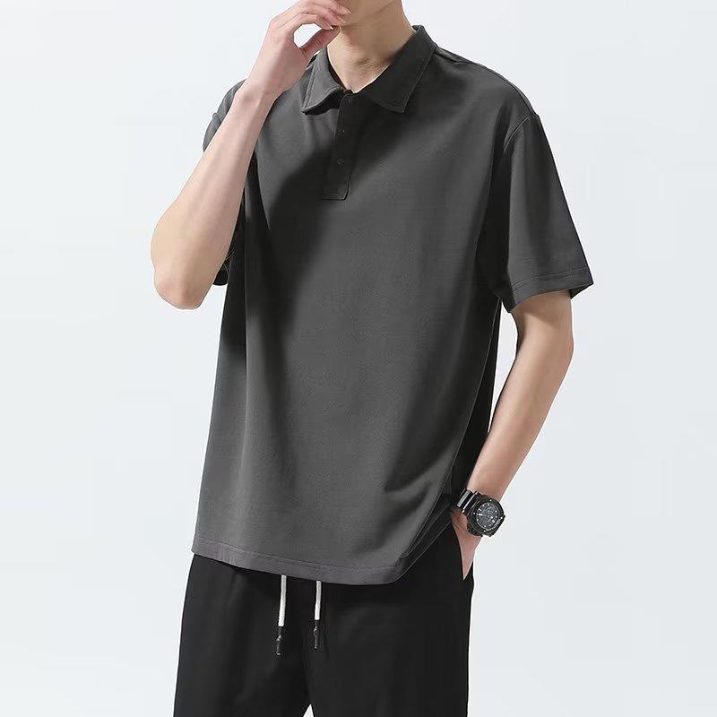 폴로 셔츠 남성용 여름 반팔 티셔츠 헤비 트렌디 브랜드 라펠 아메리칸 스타일 루즈한 셔츠 칼라 남성 탑 올매치스토어 가기