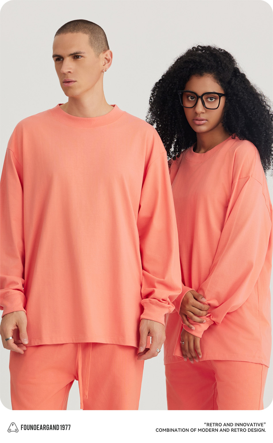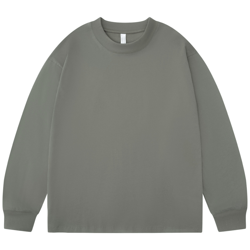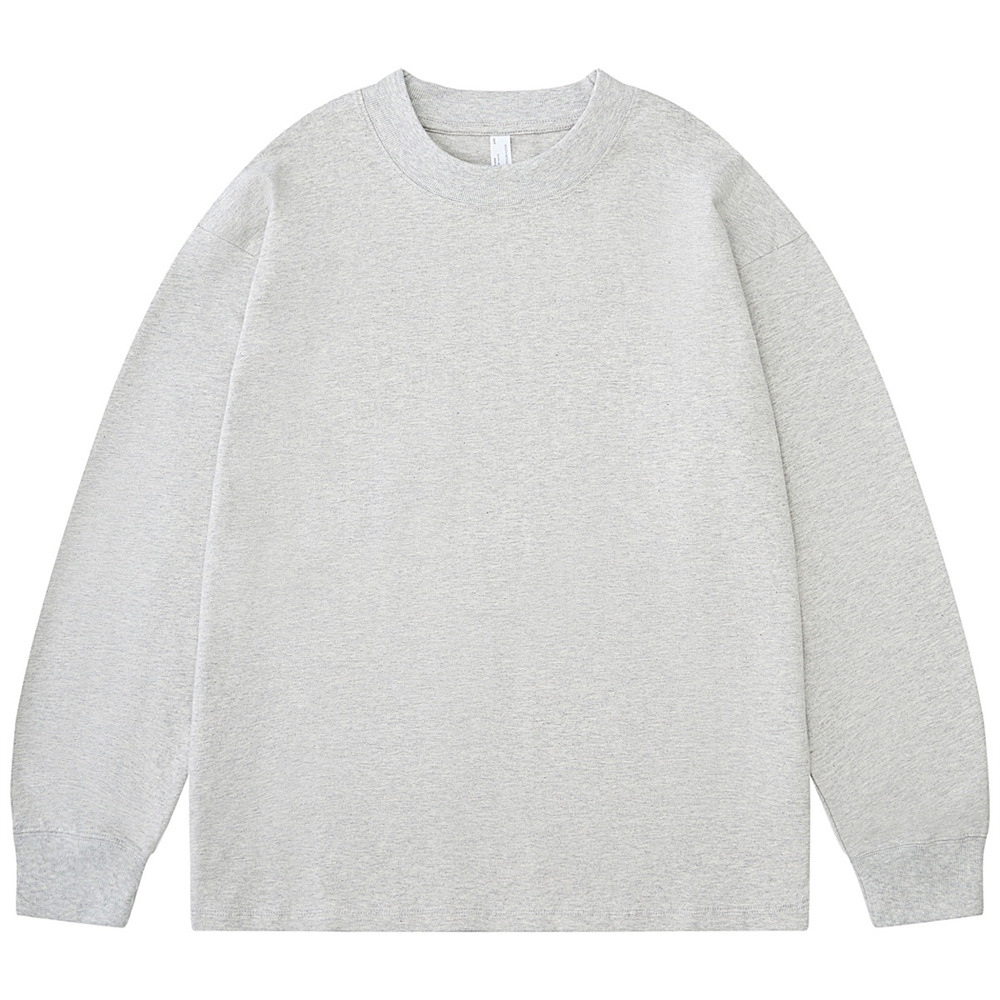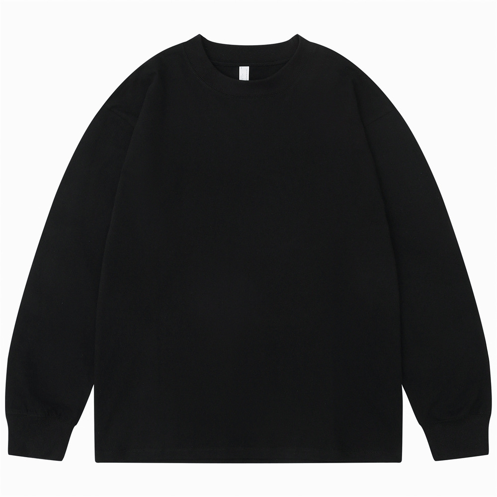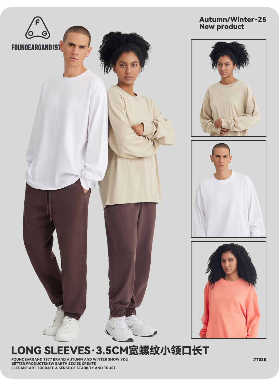 FOG 남성용 봄 가을 와이드 스레드 작은 칼라 긴팔 티셔츠 남성용 루즈핏 프린트 고중량 순면 라운드넥스토어 가기