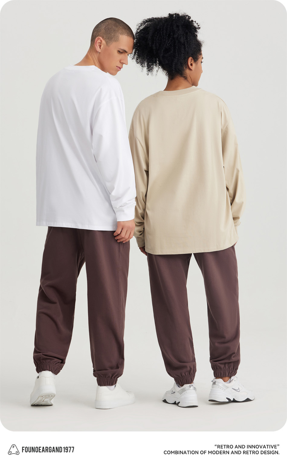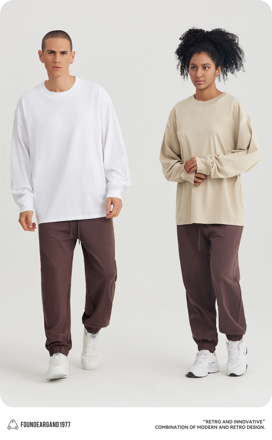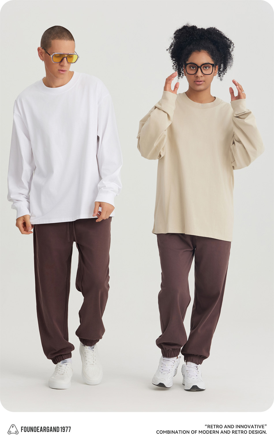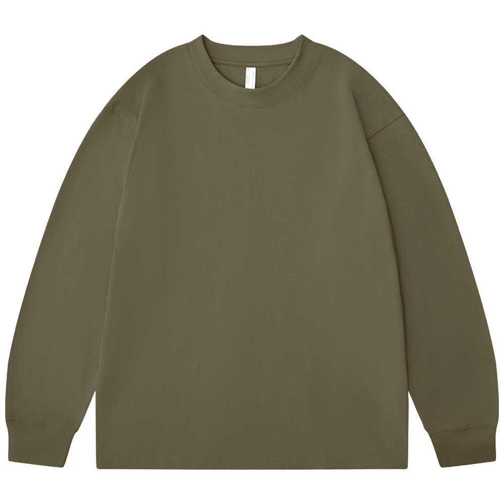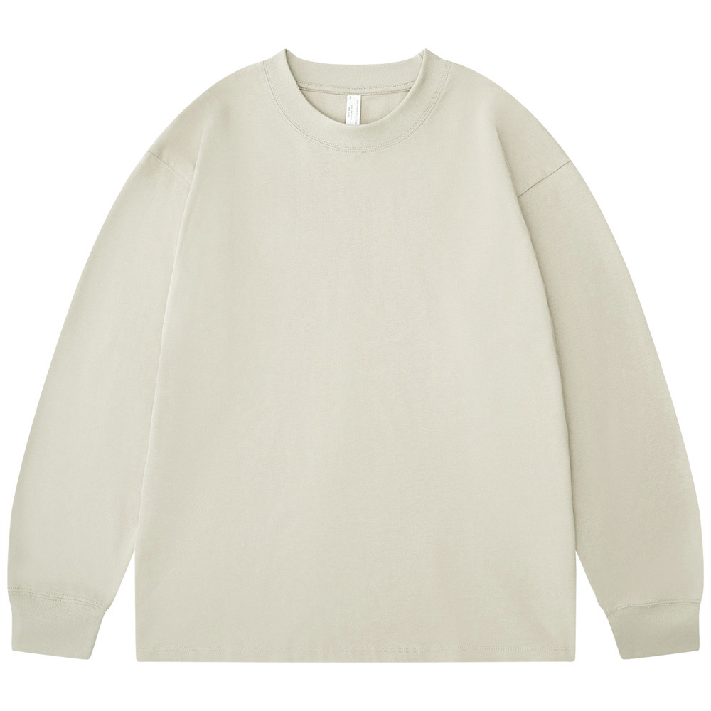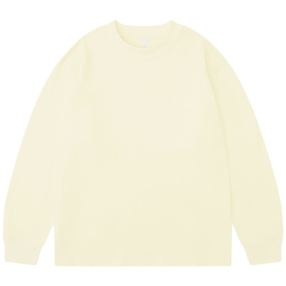 FOG 남성용 봄 가을 와이드 스레드 작은 칼라 긴팔 티셔츠 남성용 루즈핏 프린트 고중량 순면 라운드넥스토어 가기