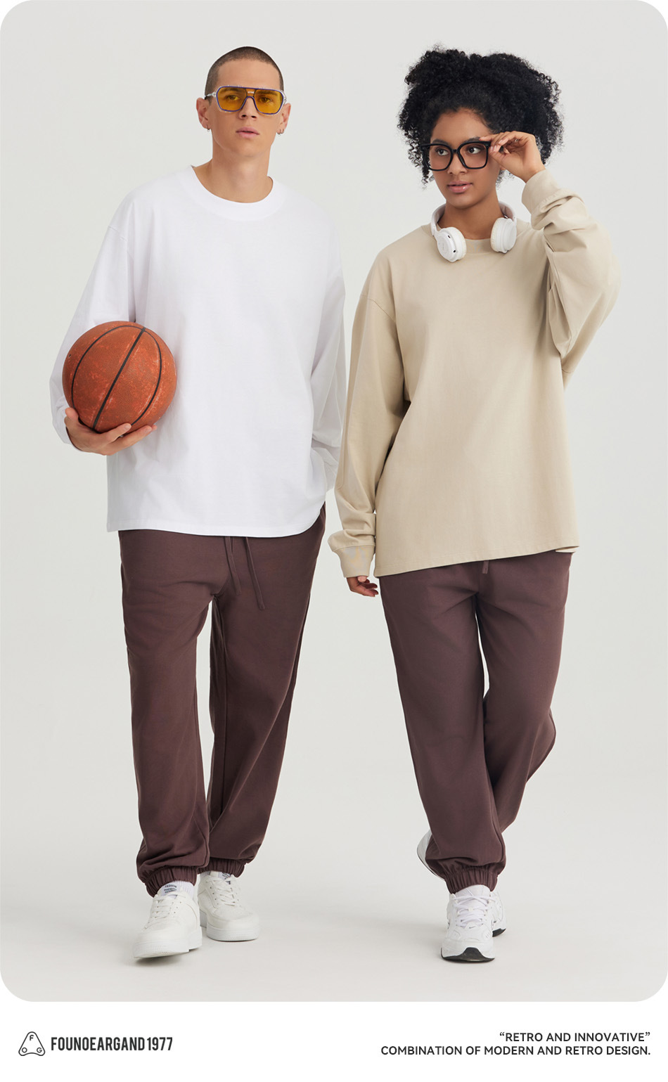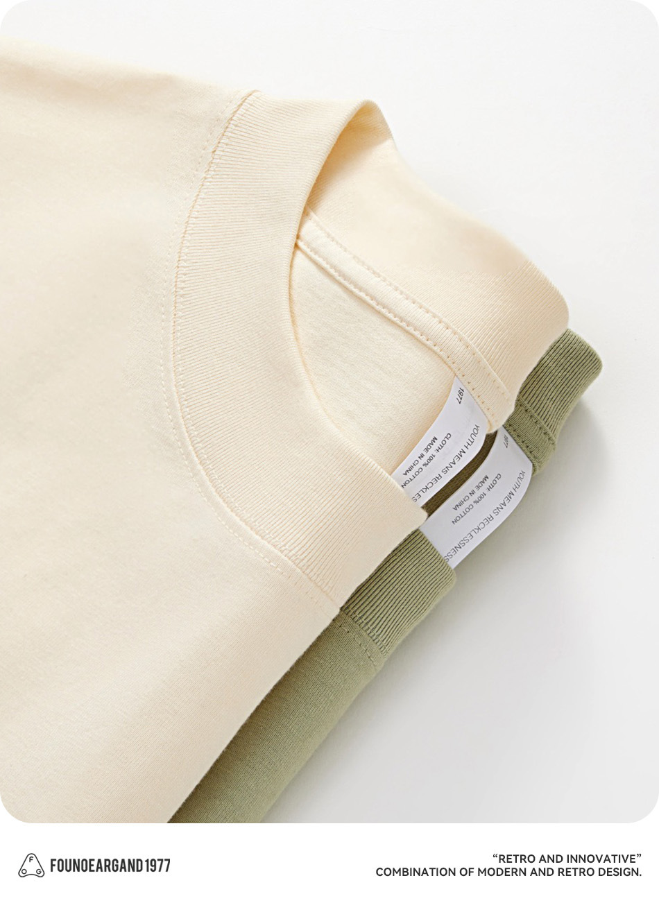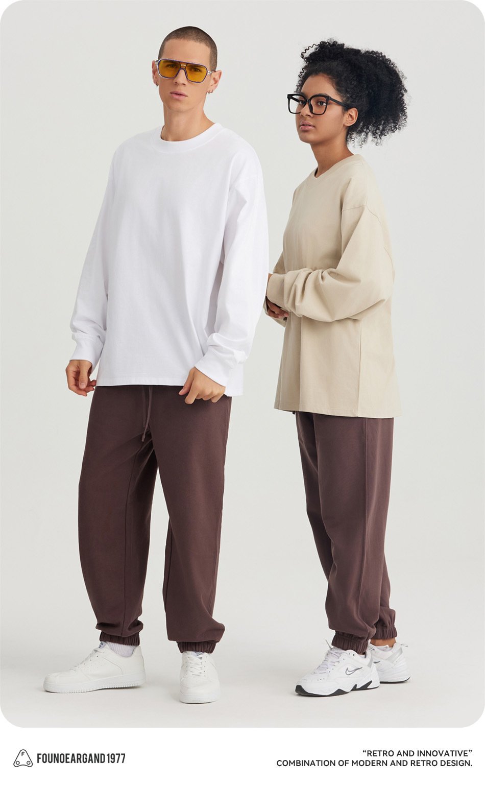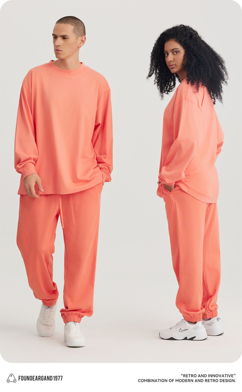 FOG 남성용 봄 가을 와이드 스레드 작은 칼라 긴팔 티셔츠 남성용 루즈핏 프린트 고중량 순면 라운드넥스토어 가기