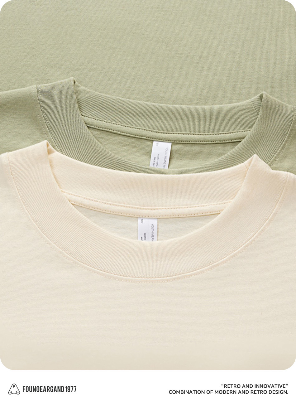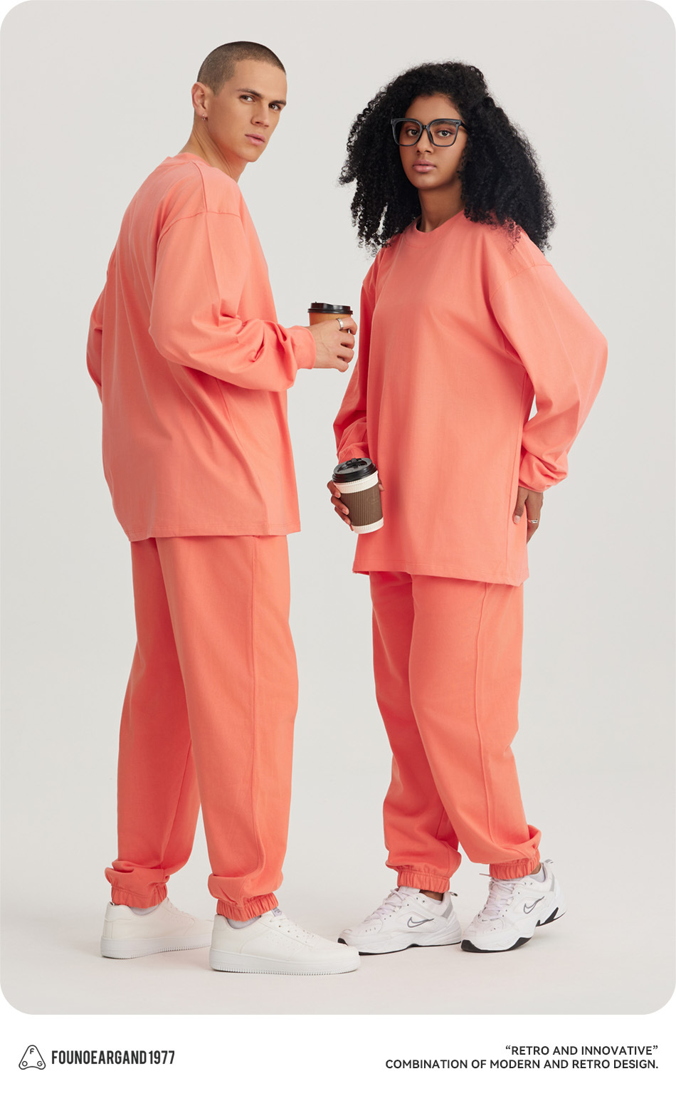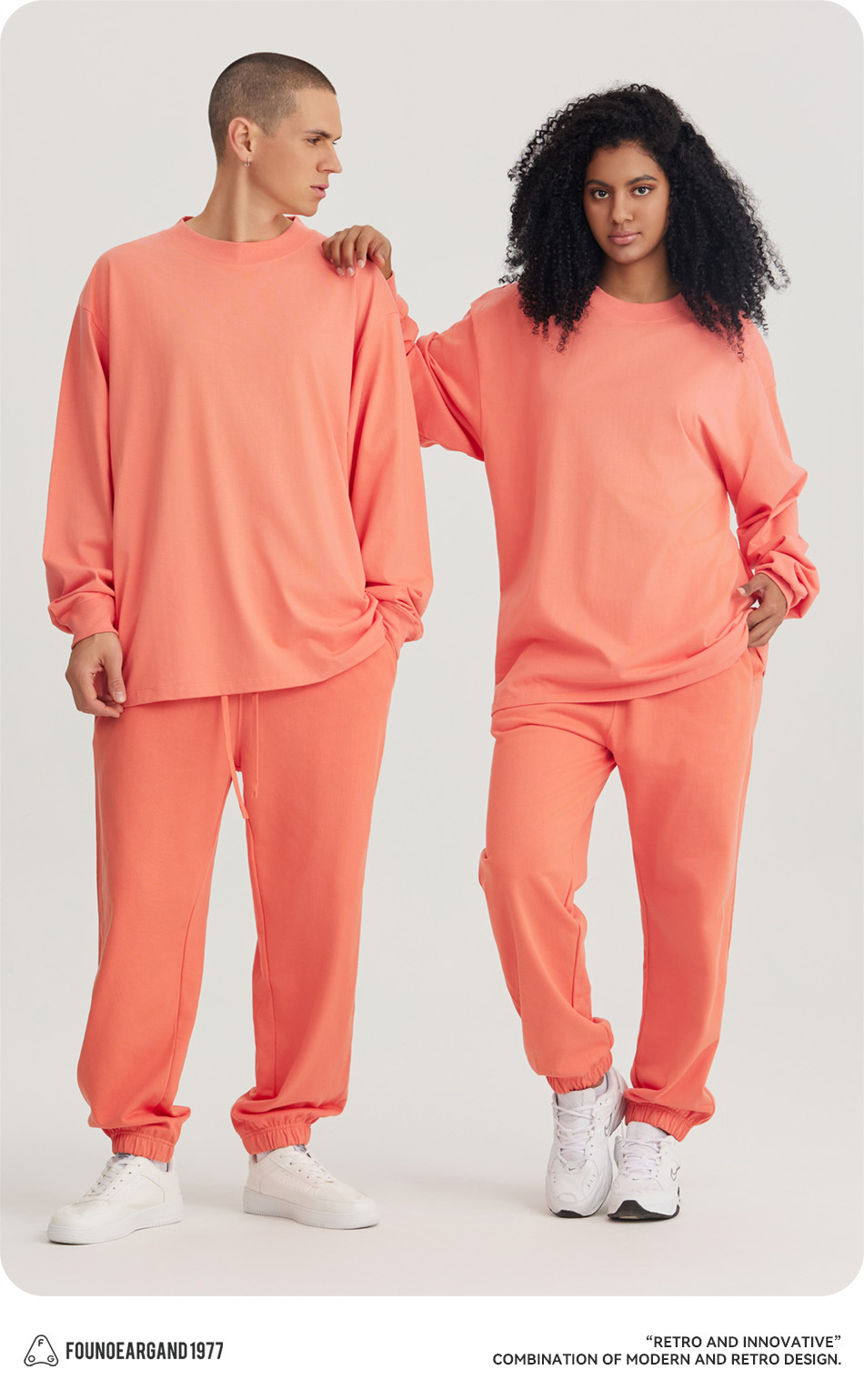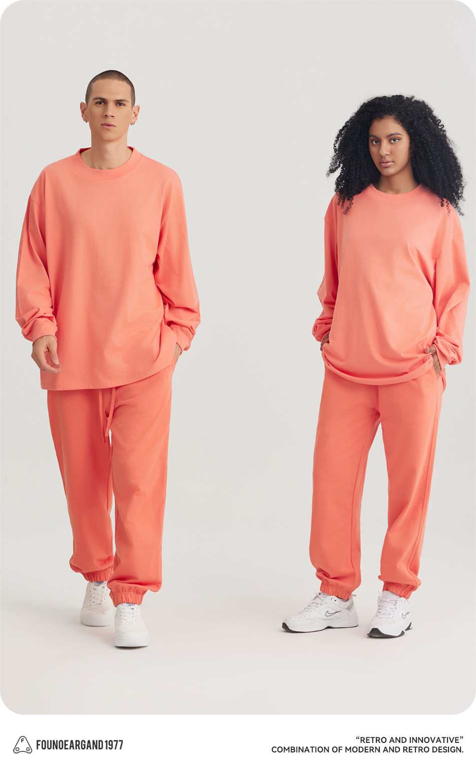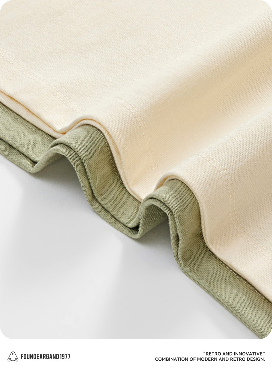FOG 남성용 봄 가을 와이드 스레드 작은 칼라 긴팔 티셔츠 남성용 루즈핏 프린트 고중량 순면 라운드넥스토어 가기