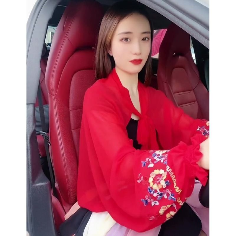 여름 새로운 부티크 자수 자외선 차단제 의류 진주 쉬폰 자외선 차단제 숄 야외 차양 운전 사이클링 슬리브 여성