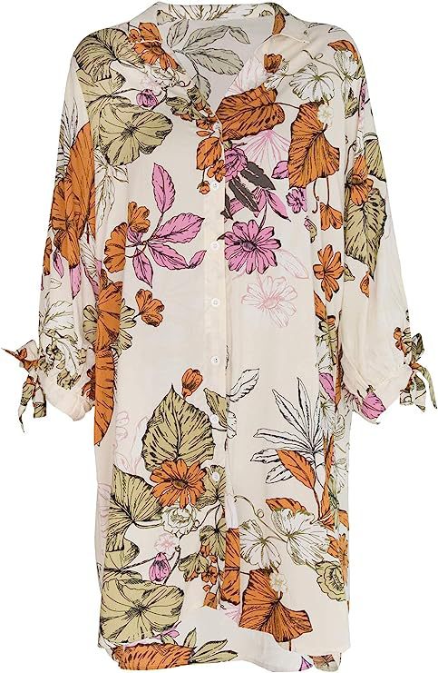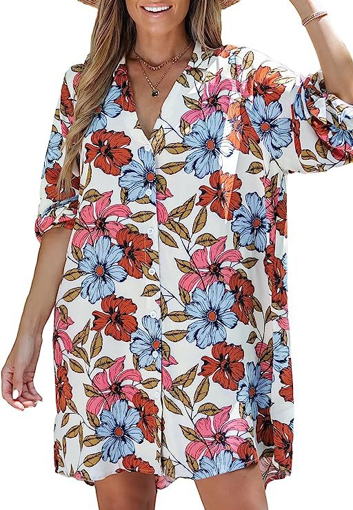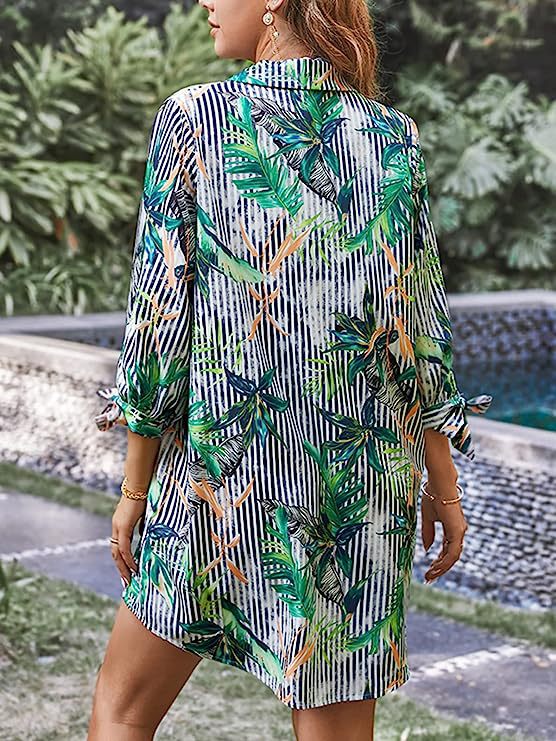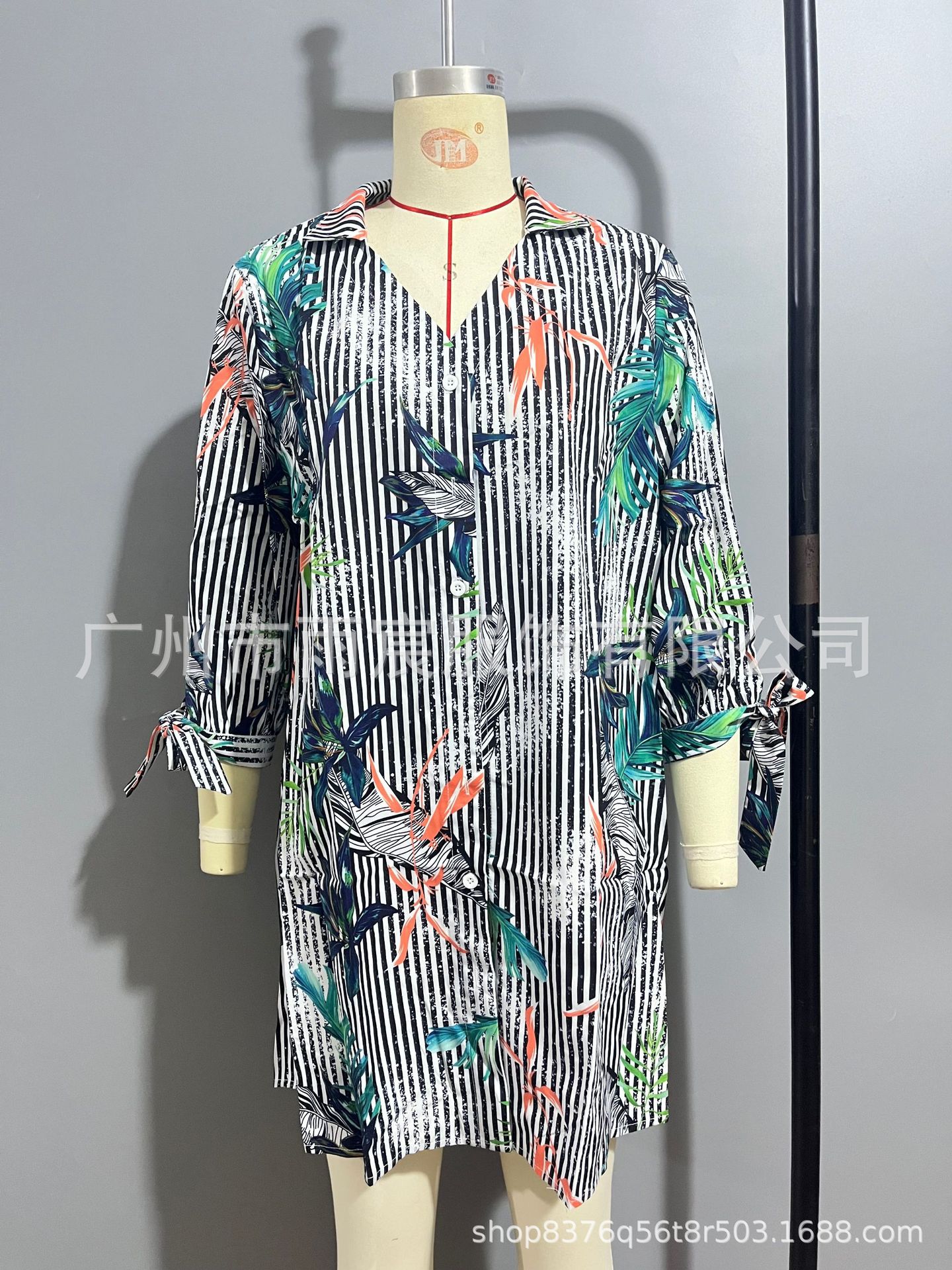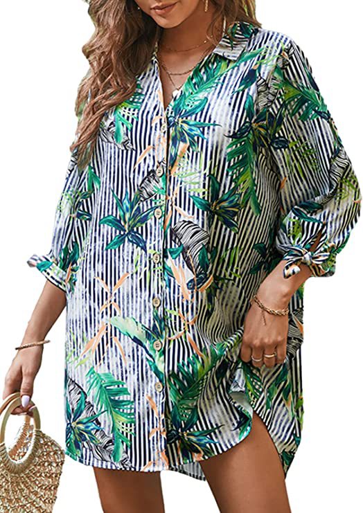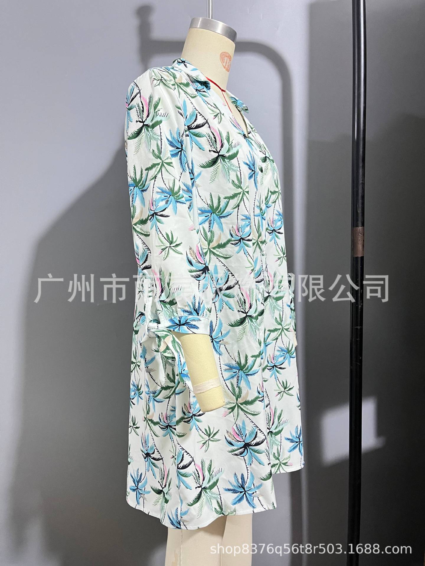 크로스 보더 2023 여름 새로운 유럽 및 미국 인쇄 7 소매 가디건 셔츠 아마존 비키니 비치 블라우스 여성